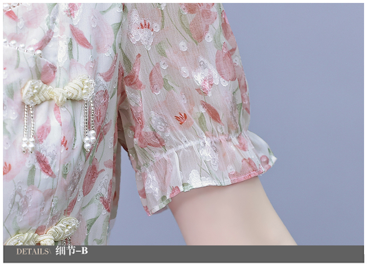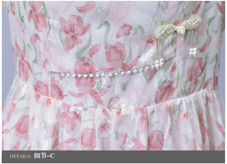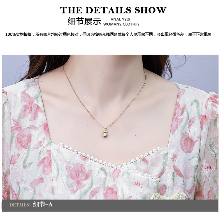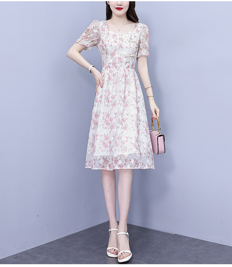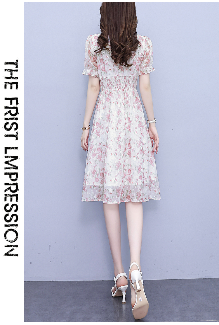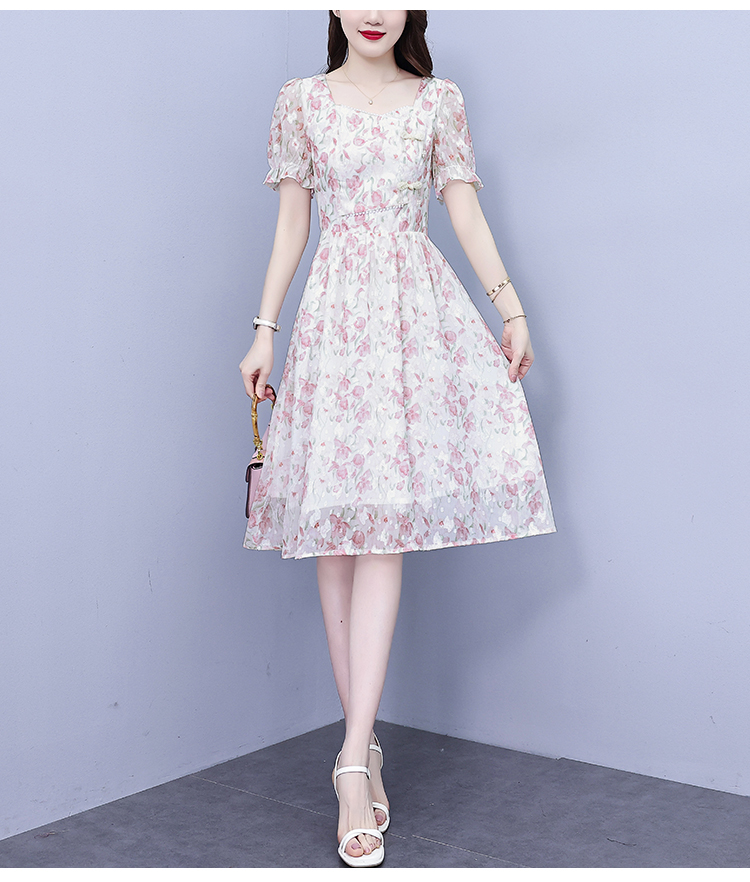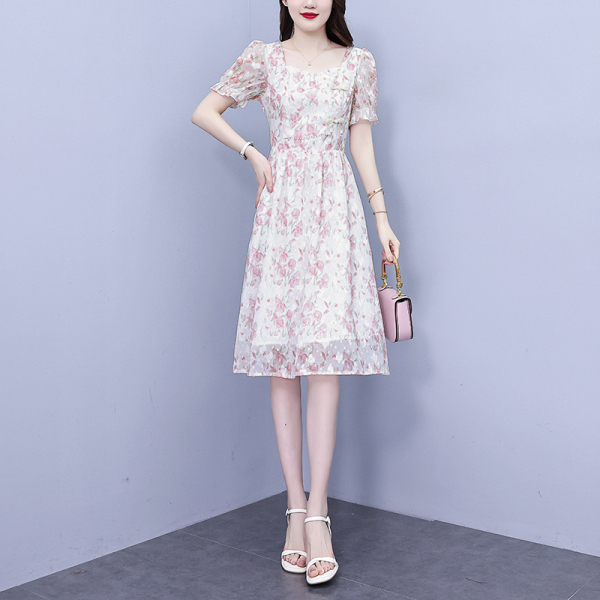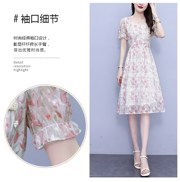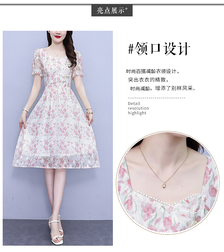 RM18220#大码女装2023年夏季新款新中式碎花雪纺显瘦度假风方领连衣裙