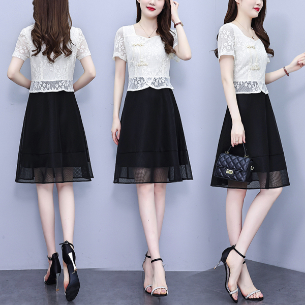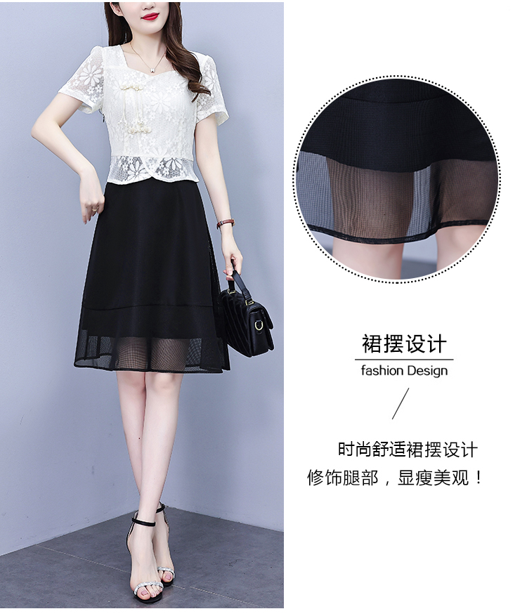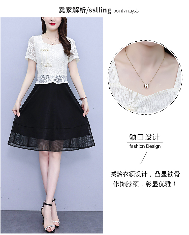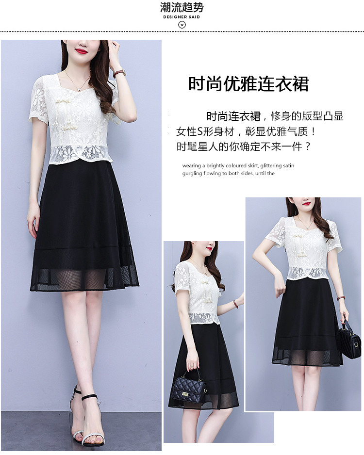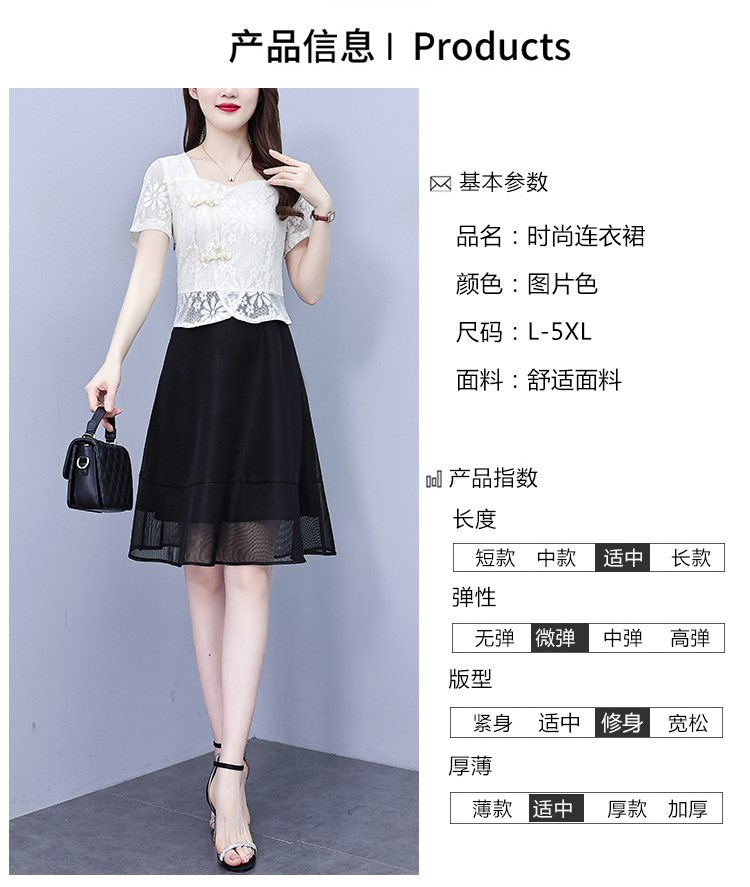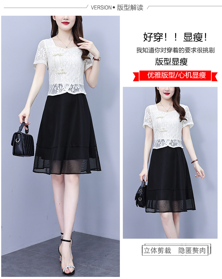 RM18221#大码女装2023年夏季新中式收腰显瘦遮肉减龄假两件拼接连衣裙