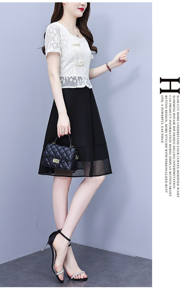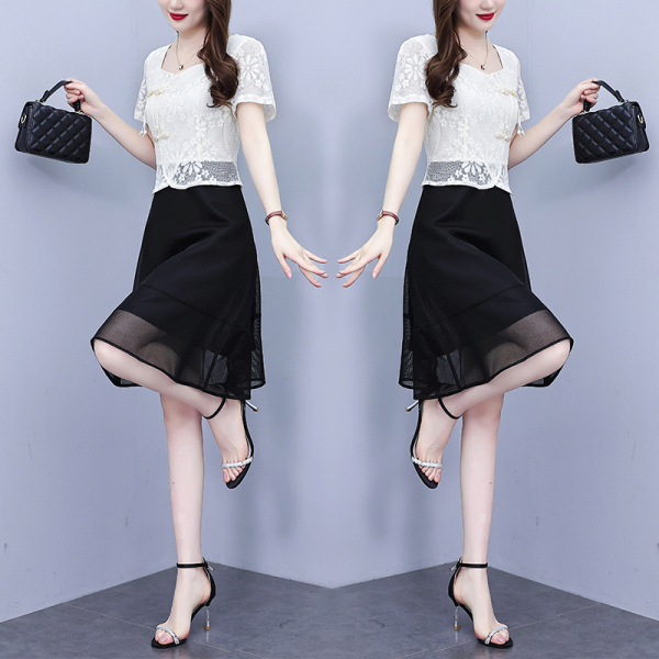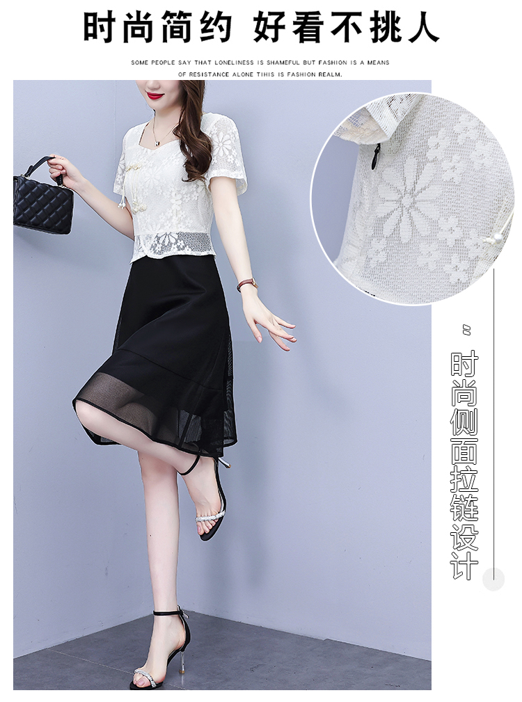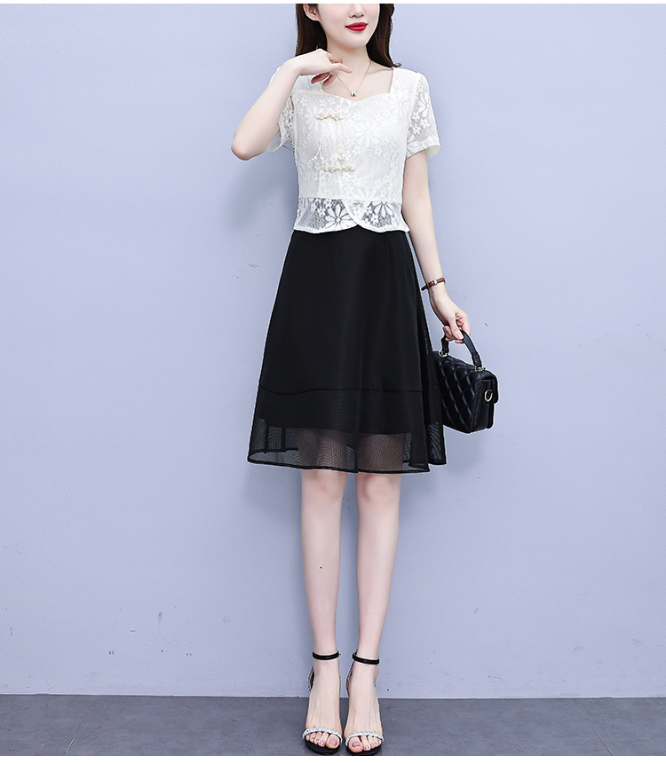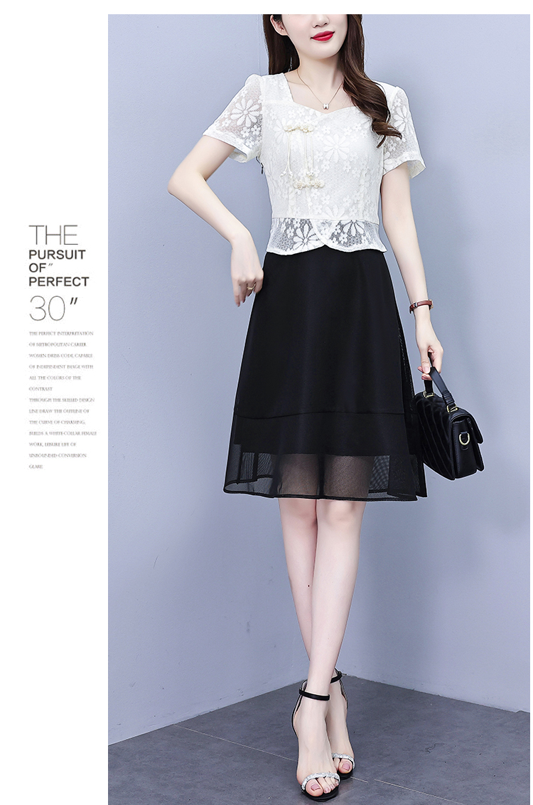 RM18221#大码女装2023年夏季新中式收腰显瘦遮肉减龄假两件拼接连衣裙