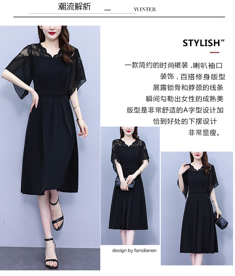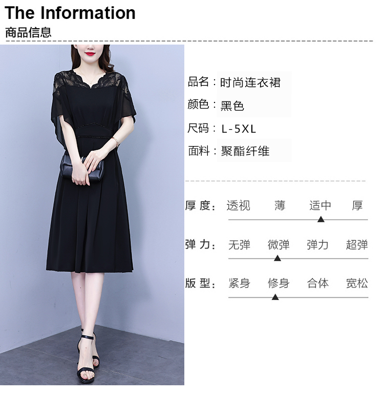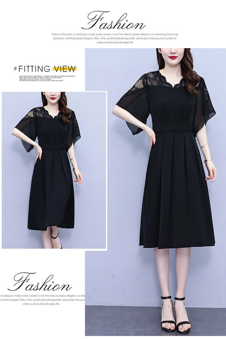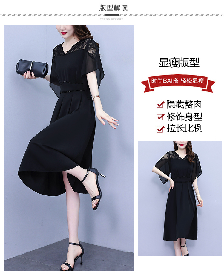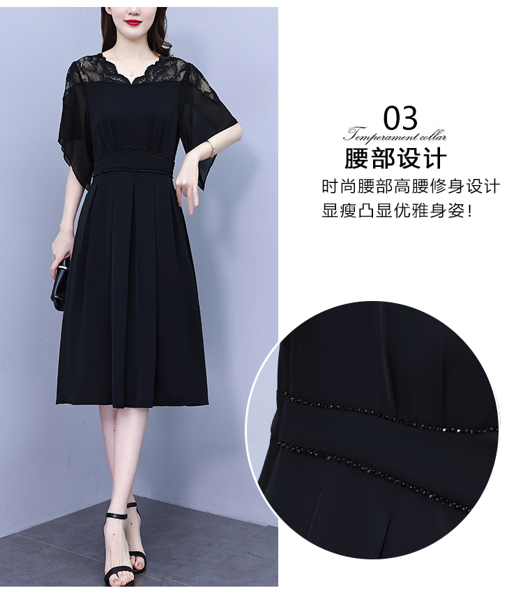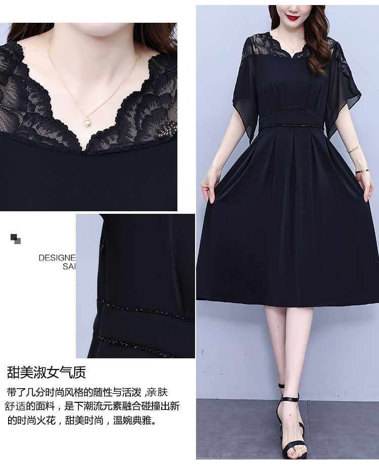 RM18222#大码女装2023年夏季新款气质时尚遮肚显瘦蕾丝钉珠V领连衣裙