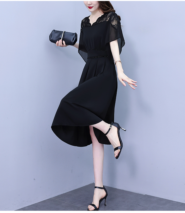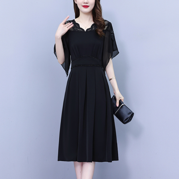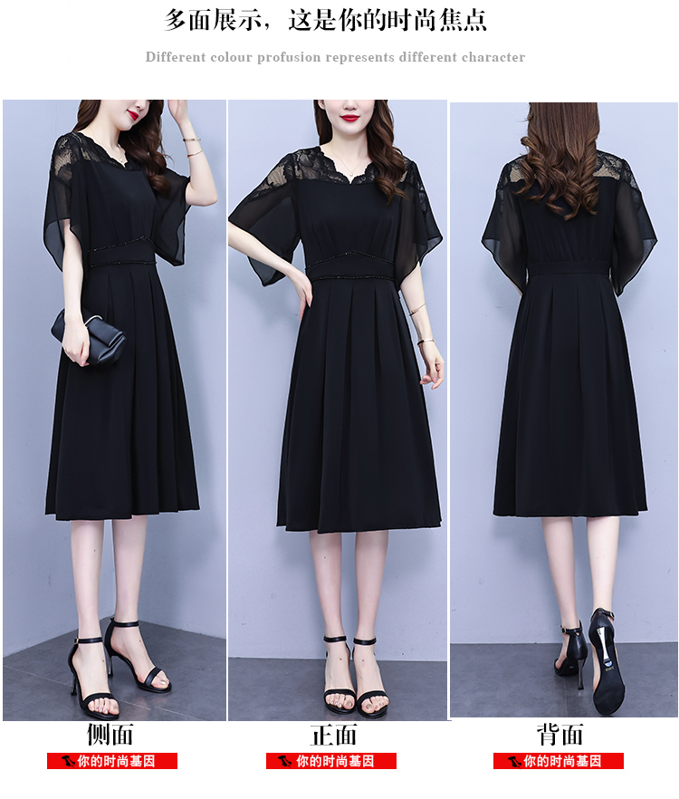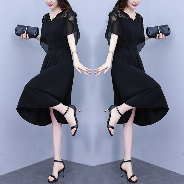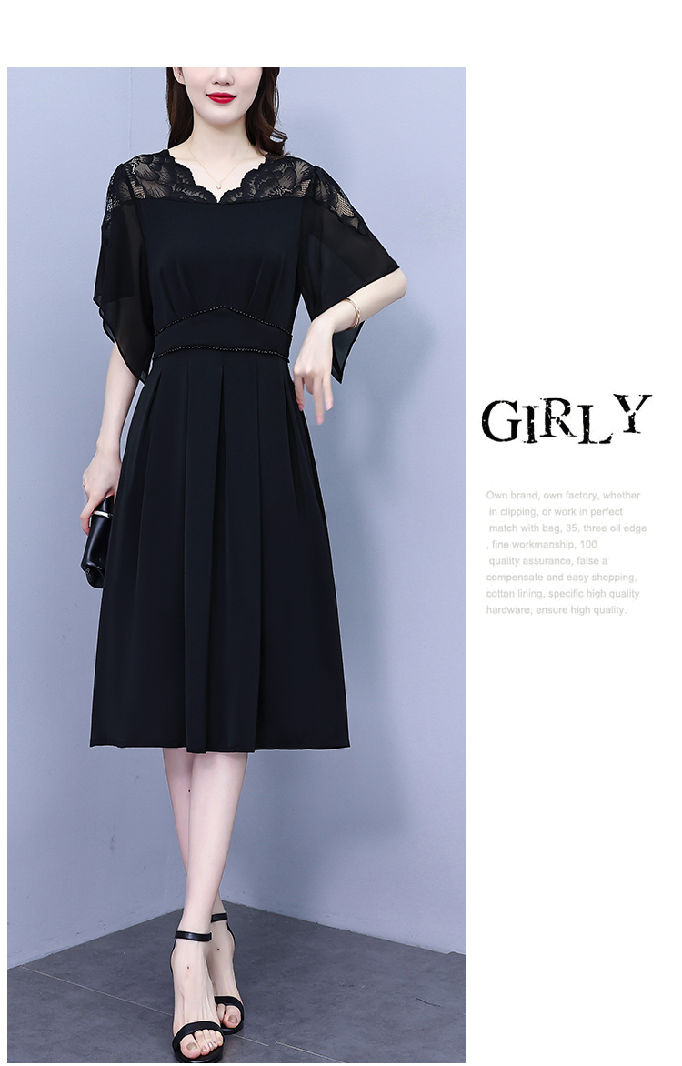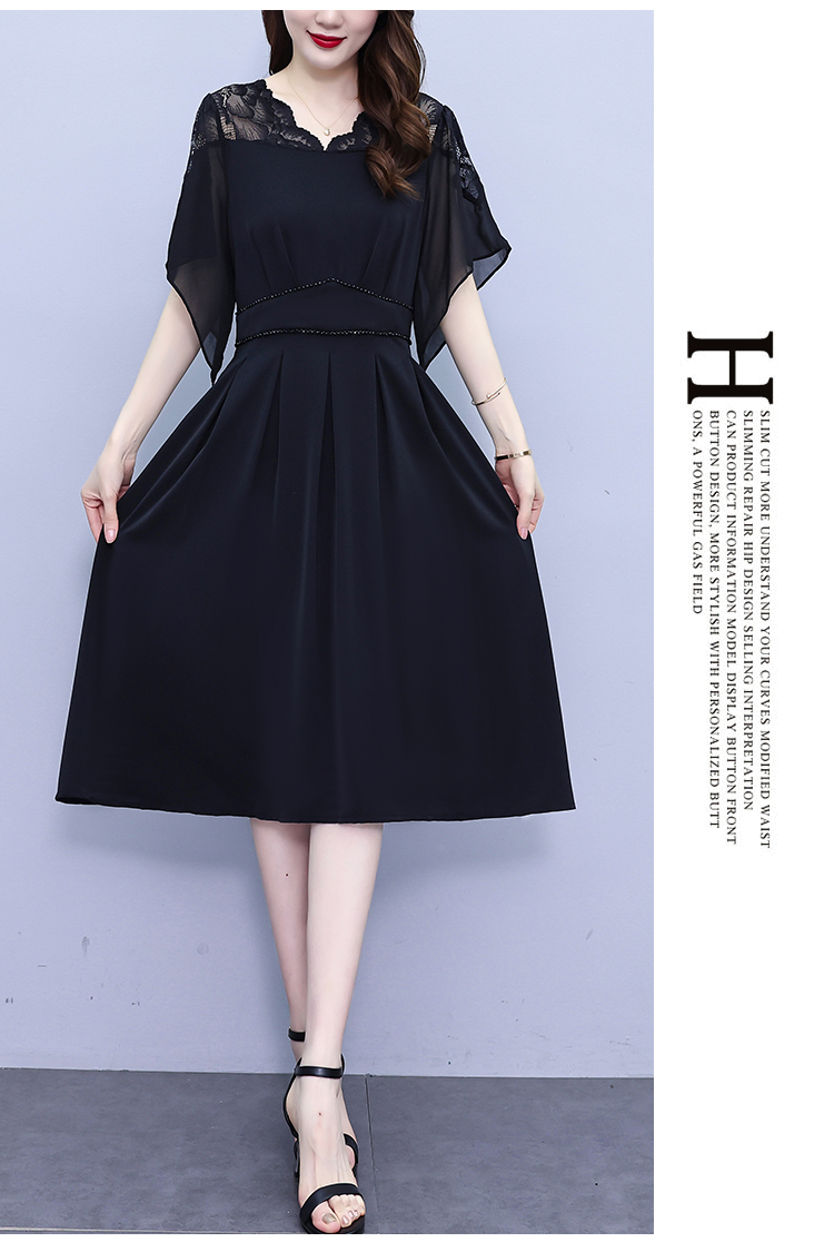 RM18222#大码女装2023年夏季新款气质时尚遮肚显瘦蕾丝钉珠V领连衣裙