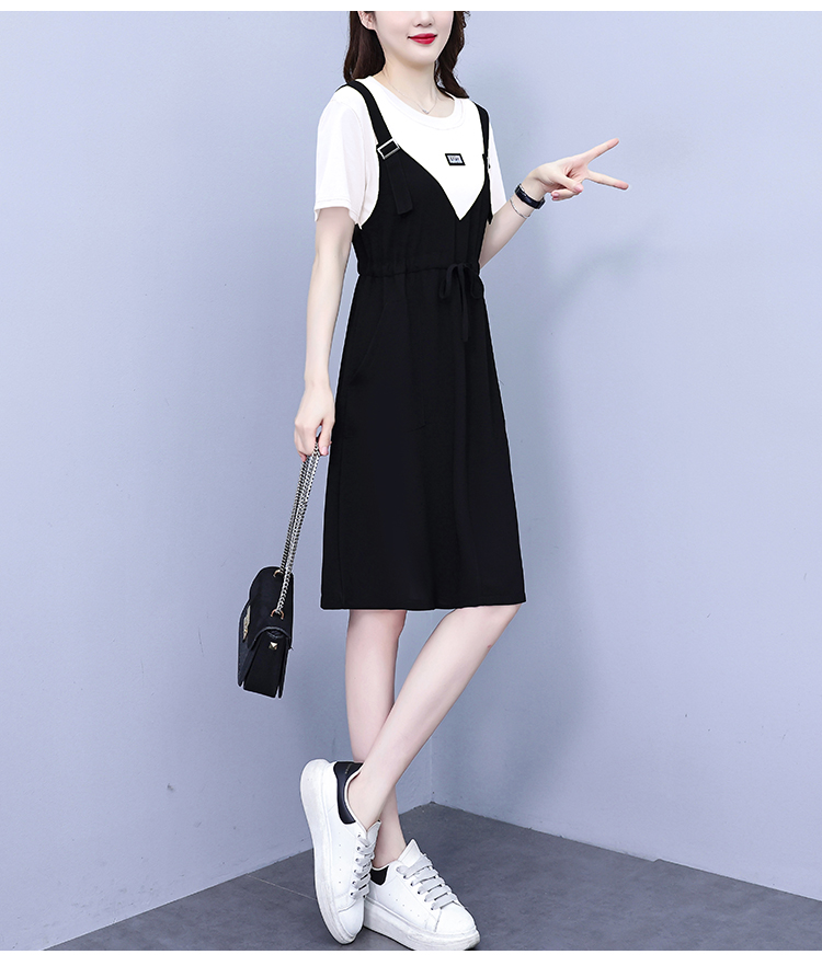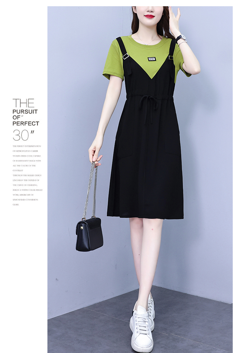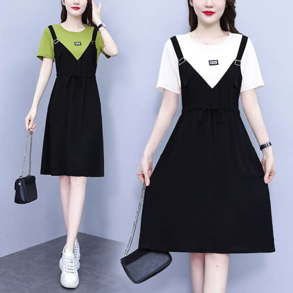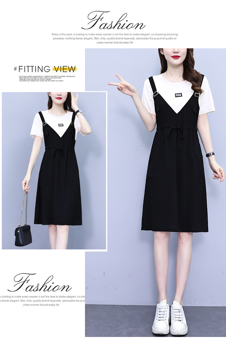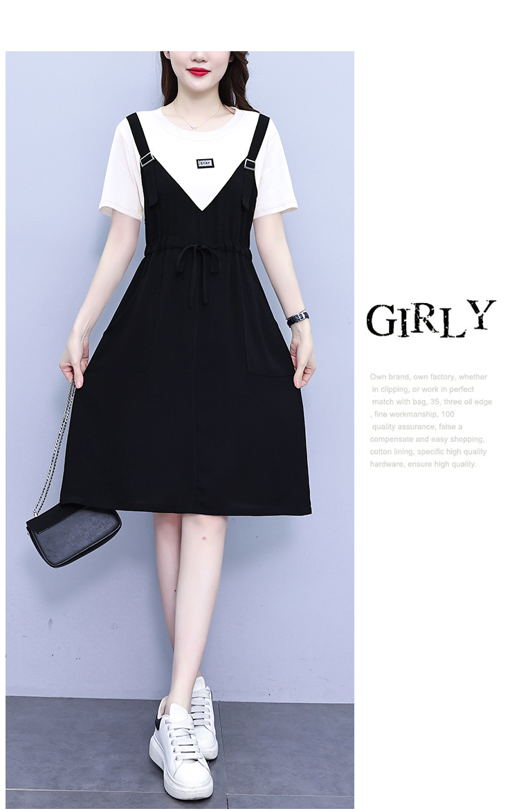 RM18223#大码女装2023年夏季新款韩版减龄拼接假两件口袋连衣裙女