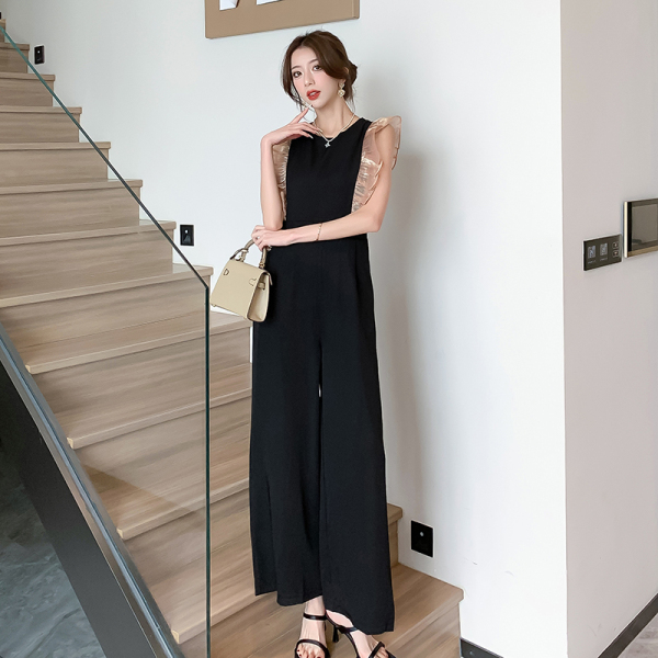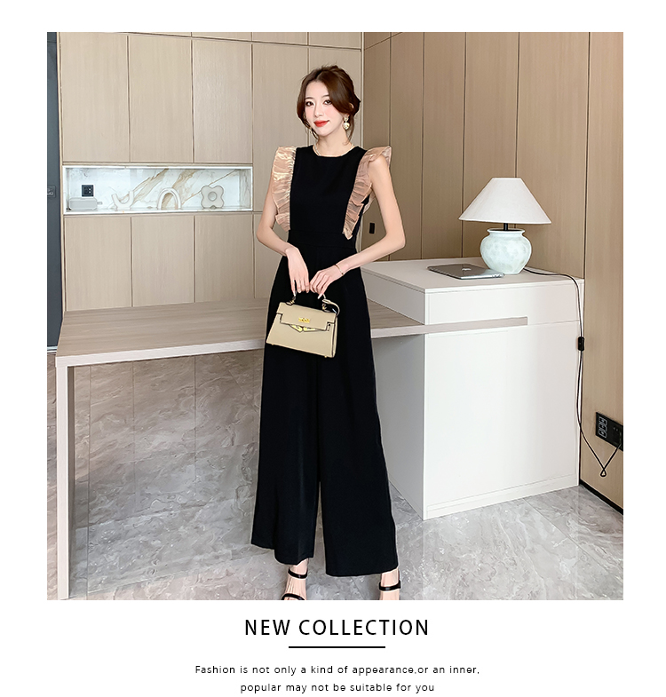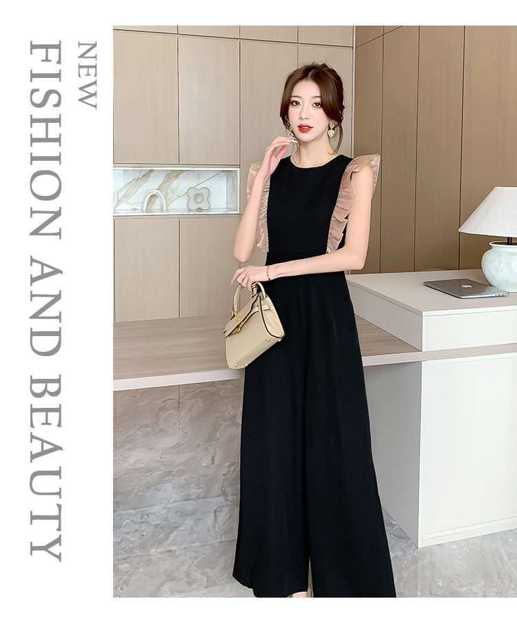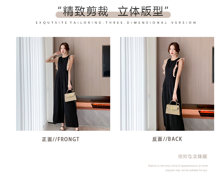 RM18230#夏季新款撞色荷叶边阔腿收腰显瘦连体裤长裤