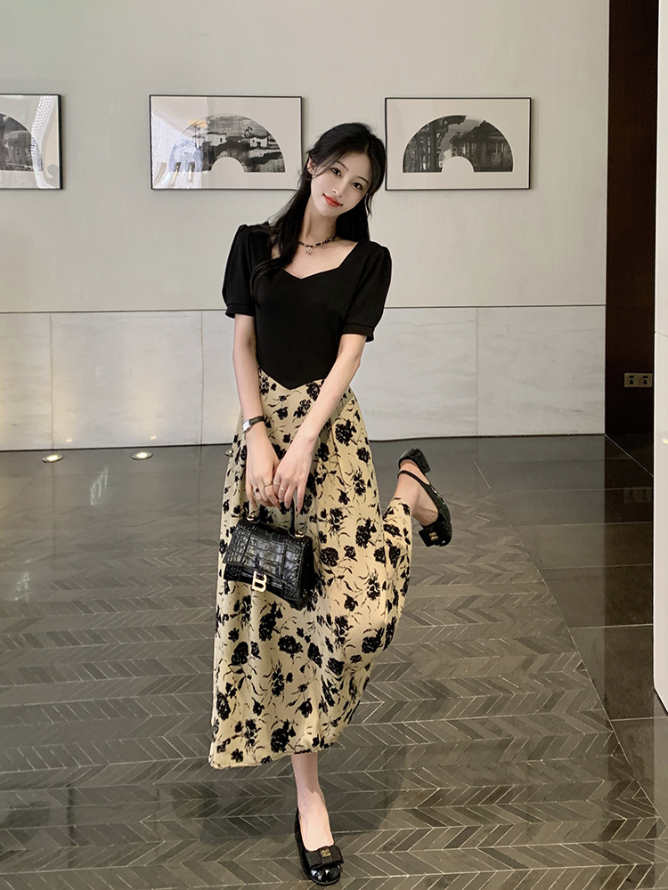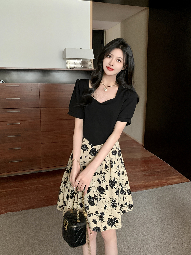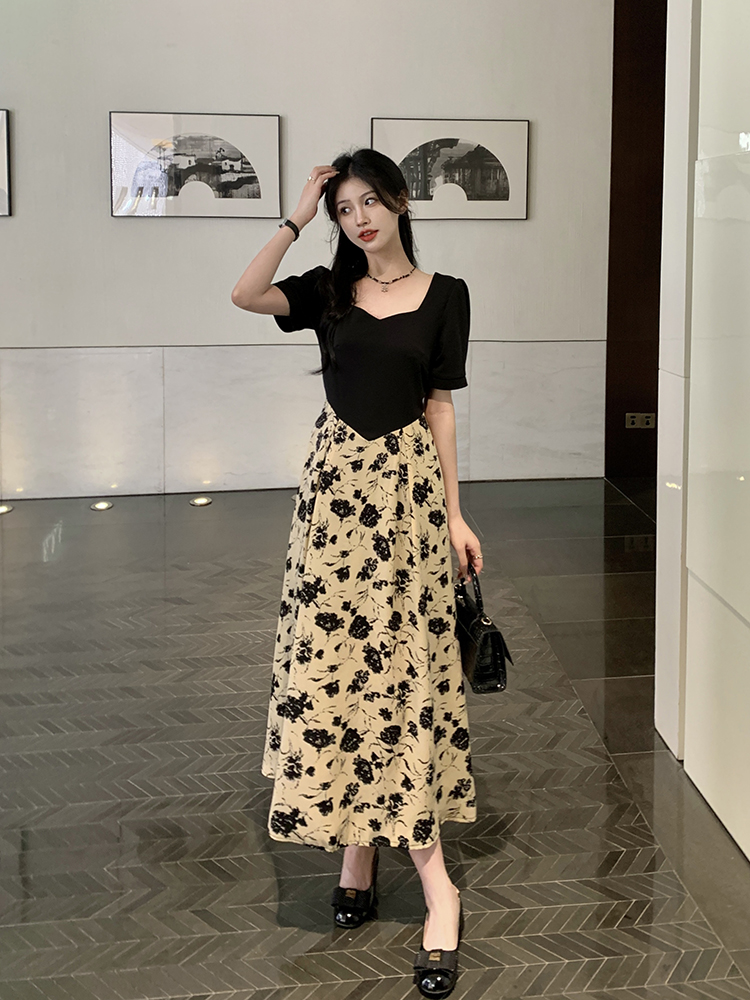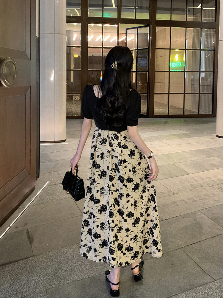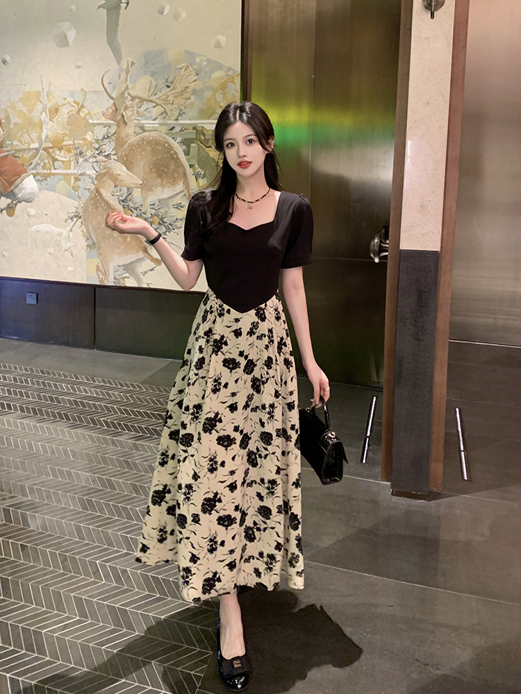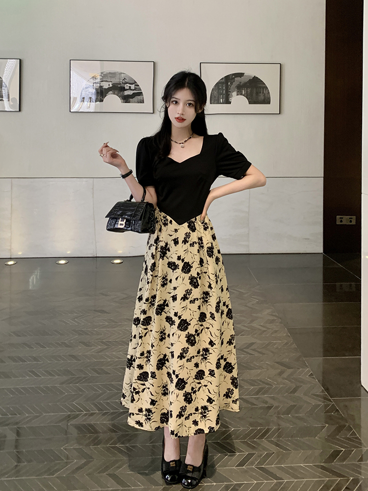 RM18236#大码女装落日夜玫 气质拼接碎花度假风连衣裙胖MM藏肉显瘦