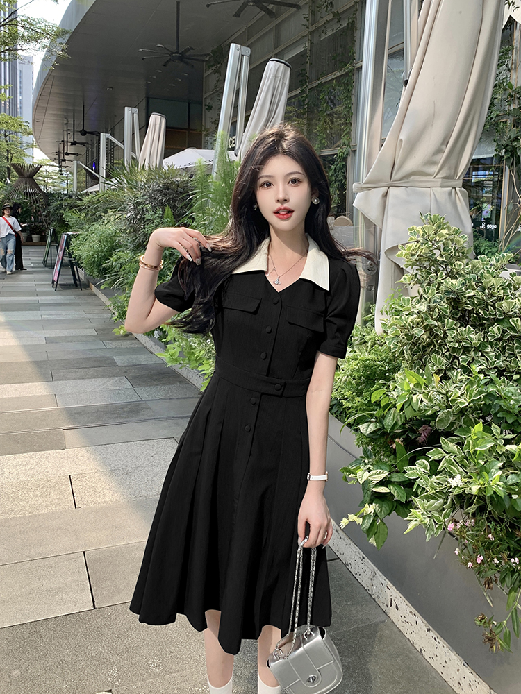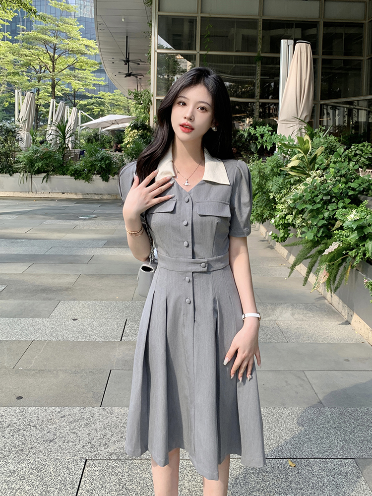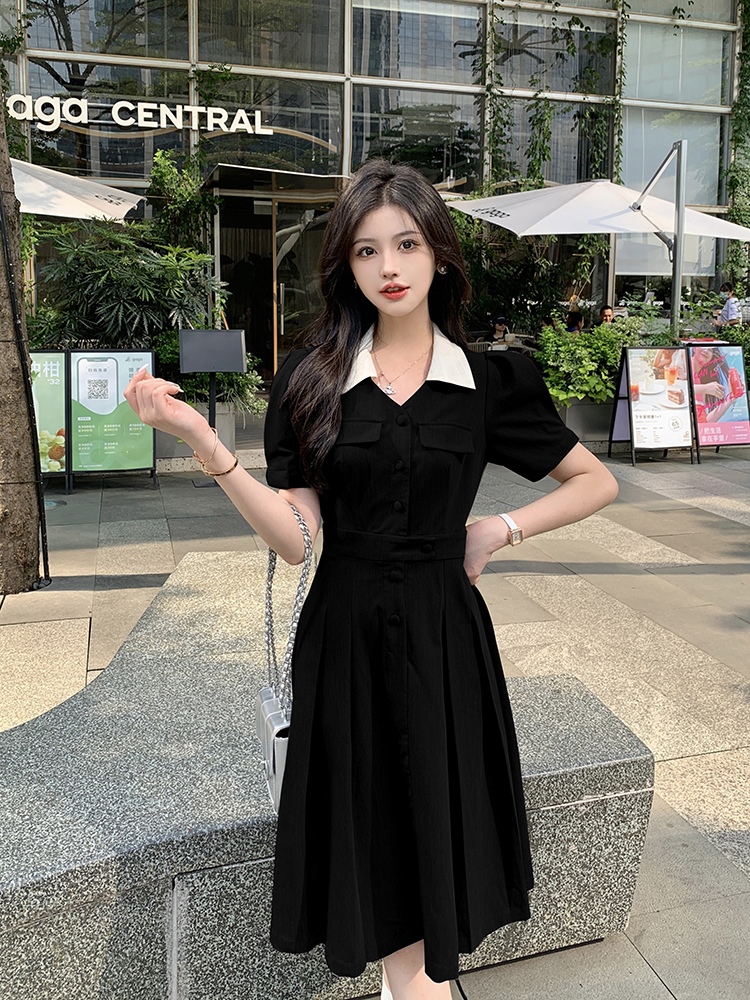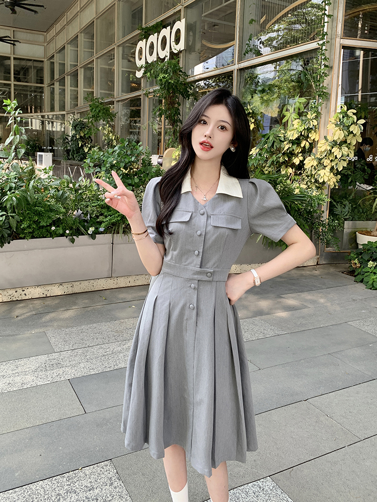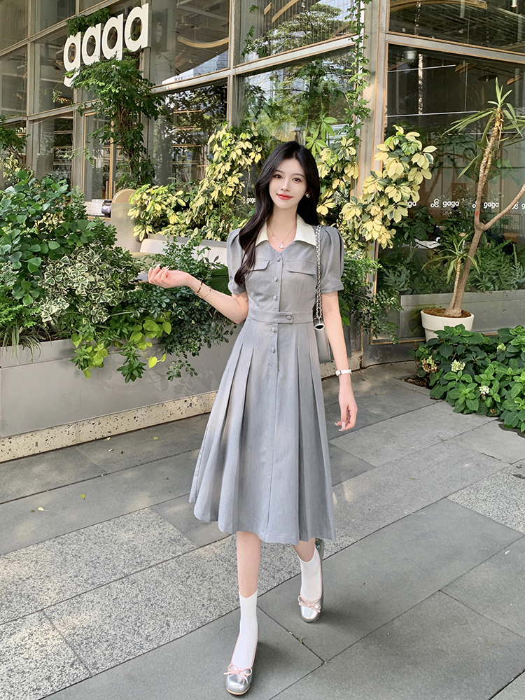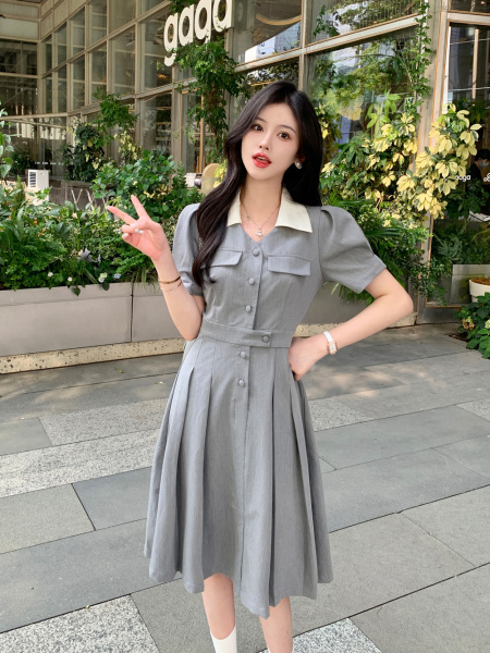 RM11085#韩版高级感连衣裙女2023年夏季新款百搭洋气收腰抽褶裙子
