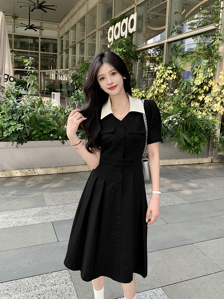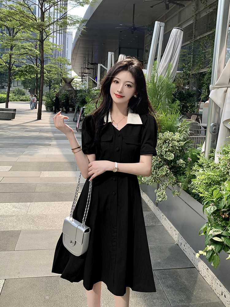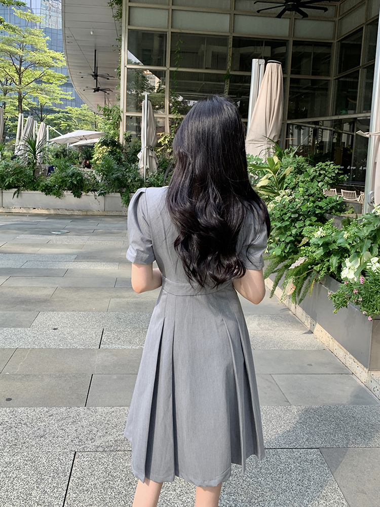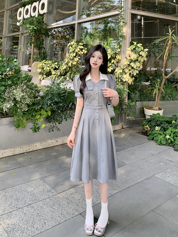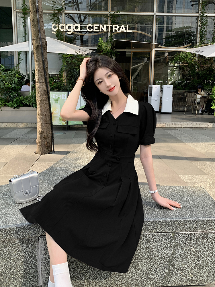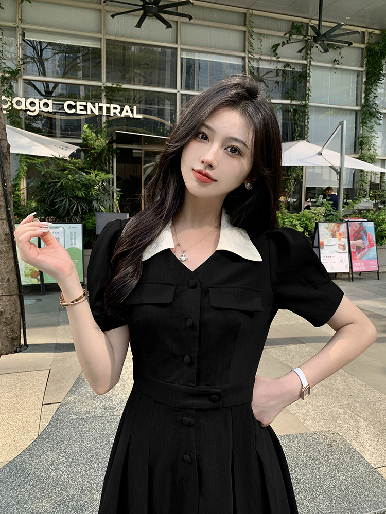 RM11085#韩版高级感连衣裙女2023年夏季新款百搭洋气收腰抽褶裙子