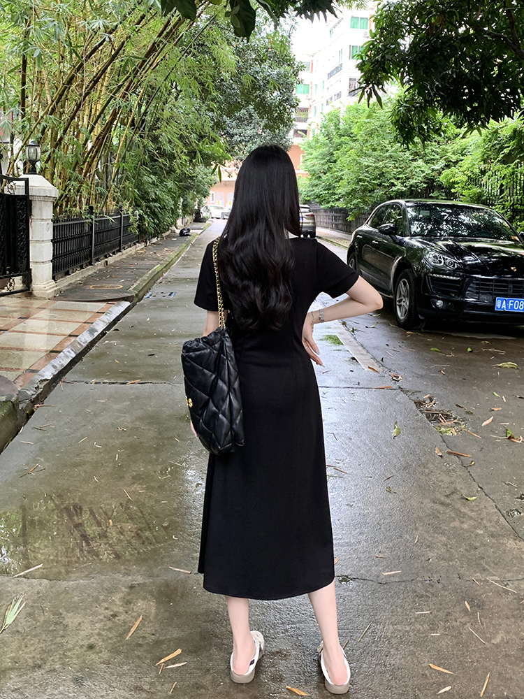 RM12614#气质波点连衣裙2023夏季新款通勤优雅V领收腰显瘦裙子