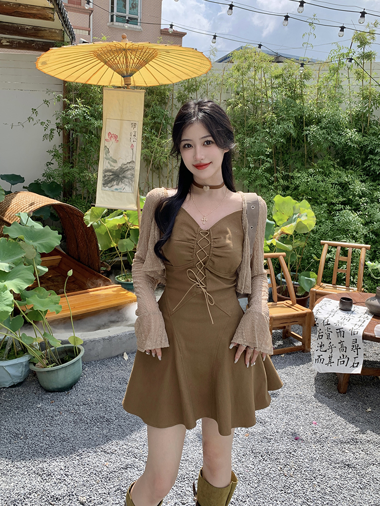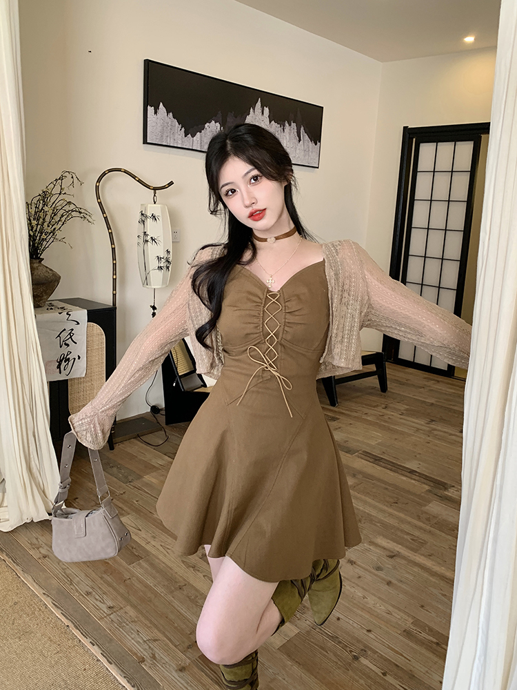 RM18249#大码辣妹连衣裙女夏季新款吊带裙配开衫胖MM显瘦遮肉短裙
