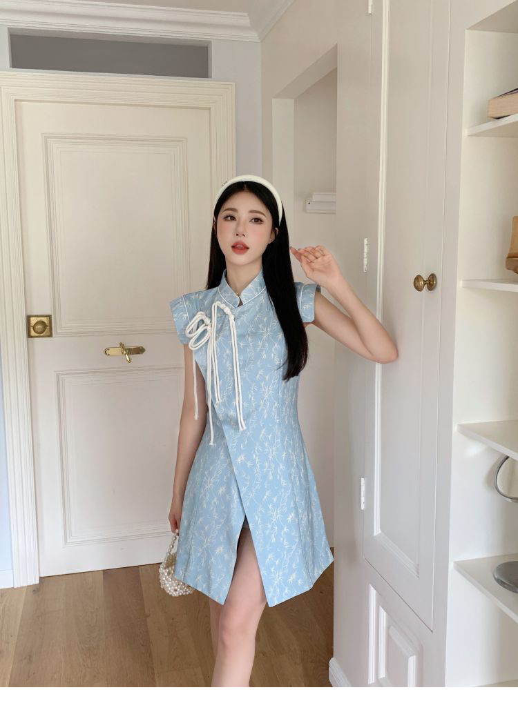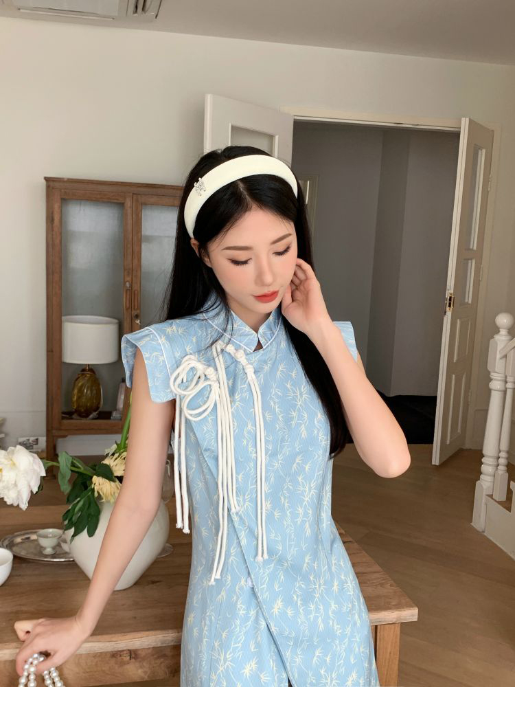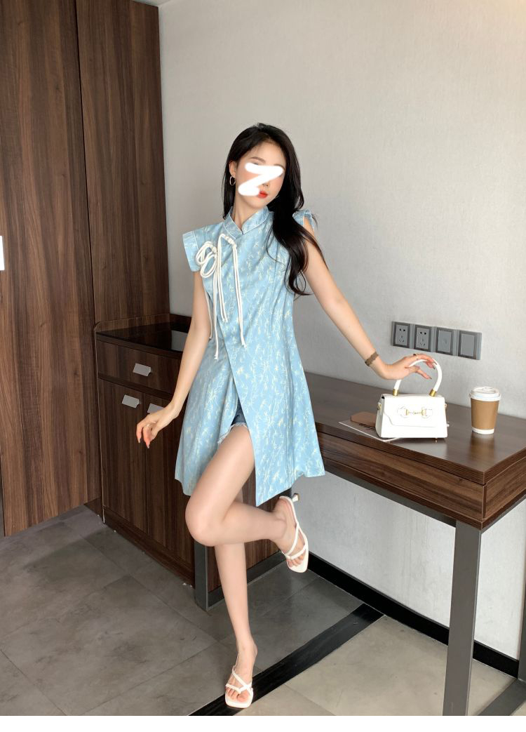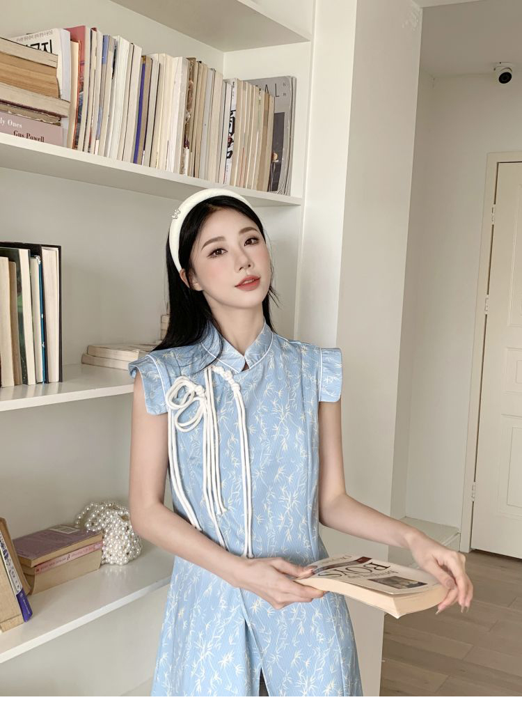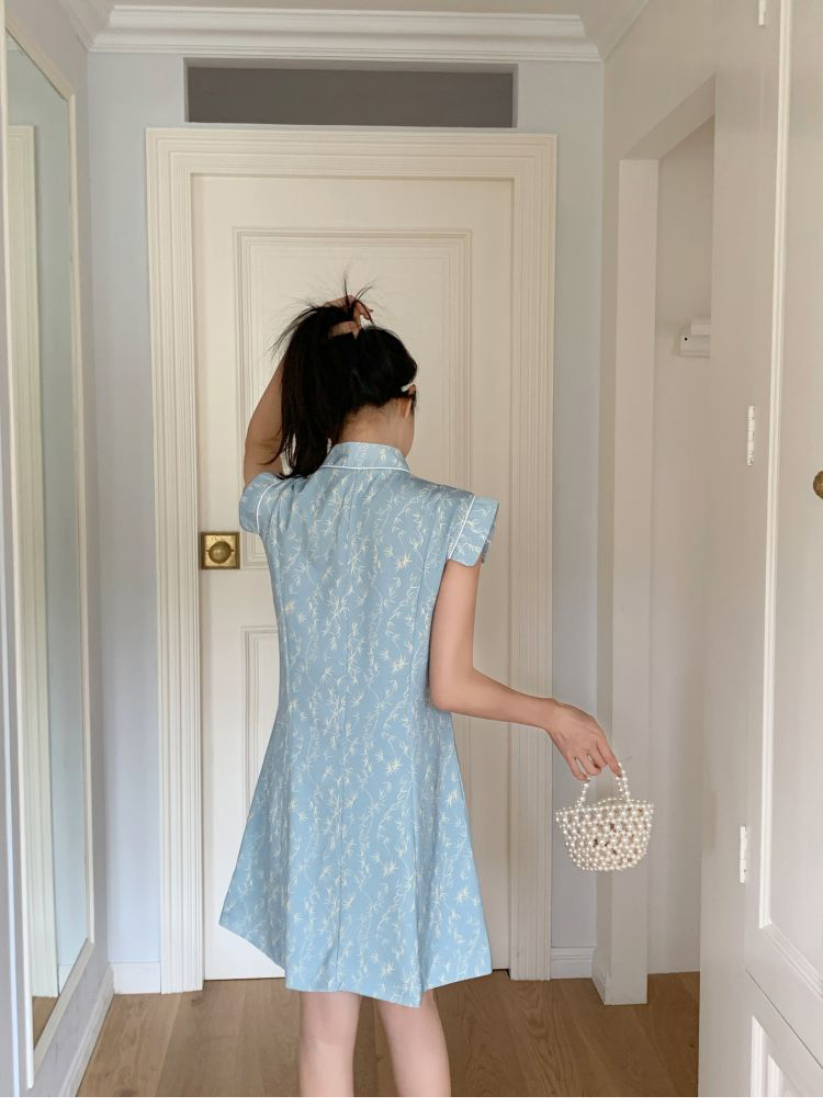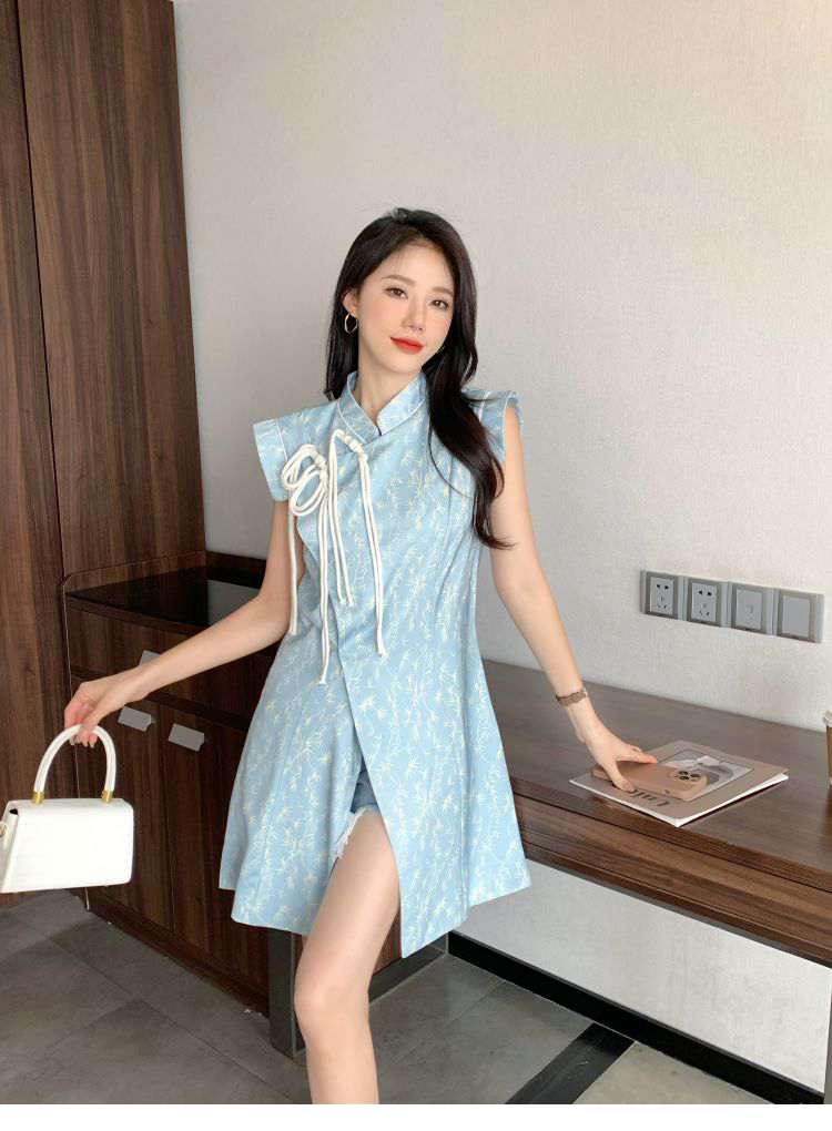 RM18263#中式复古改良旗袍连衣裙女设计感小众中国风斜襟盘扣背心裙