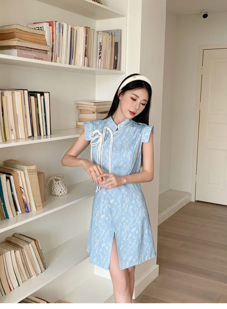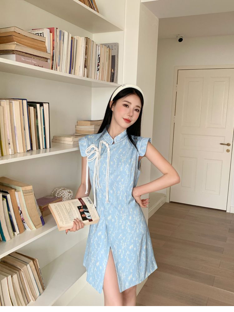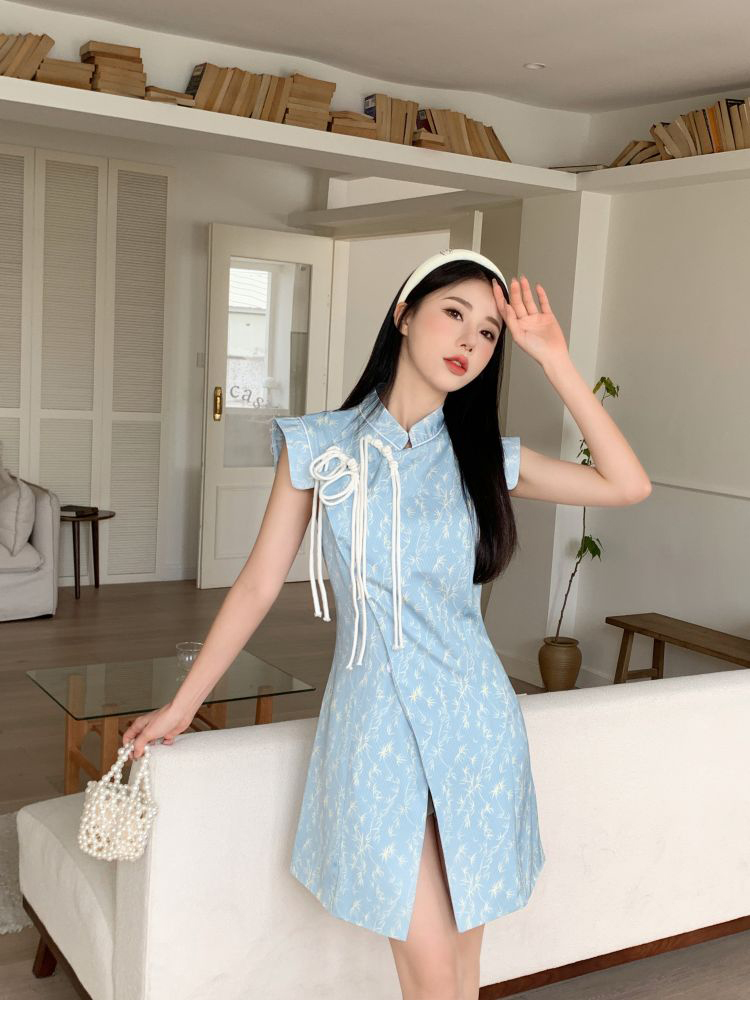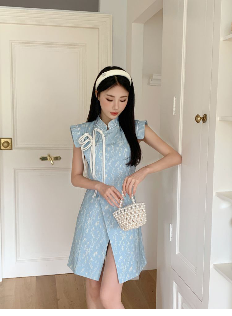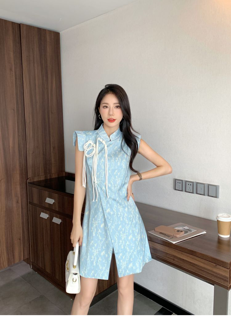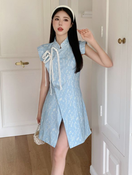 RM18263#中式复古改良旗袍连衣裙女设计感小众中国风斜襟盘扣背心裙
