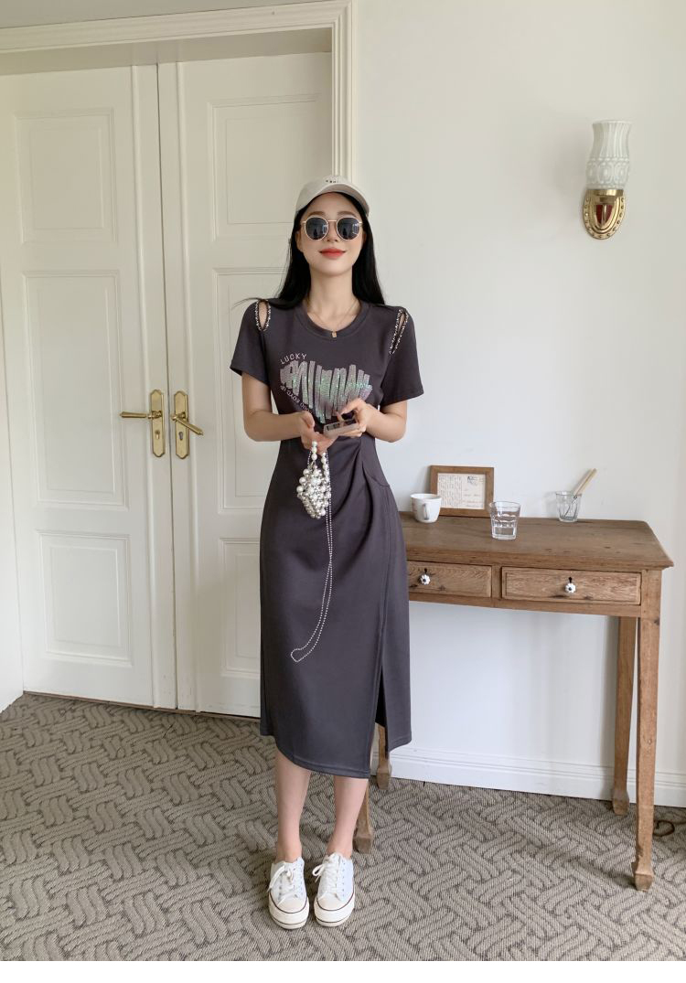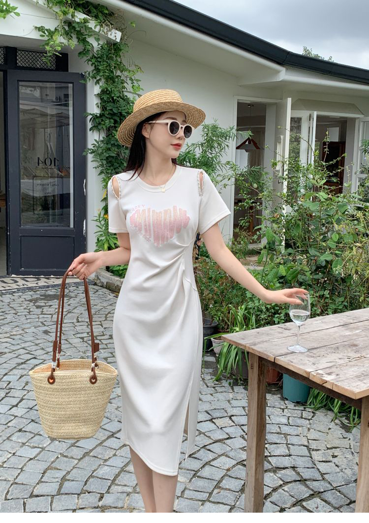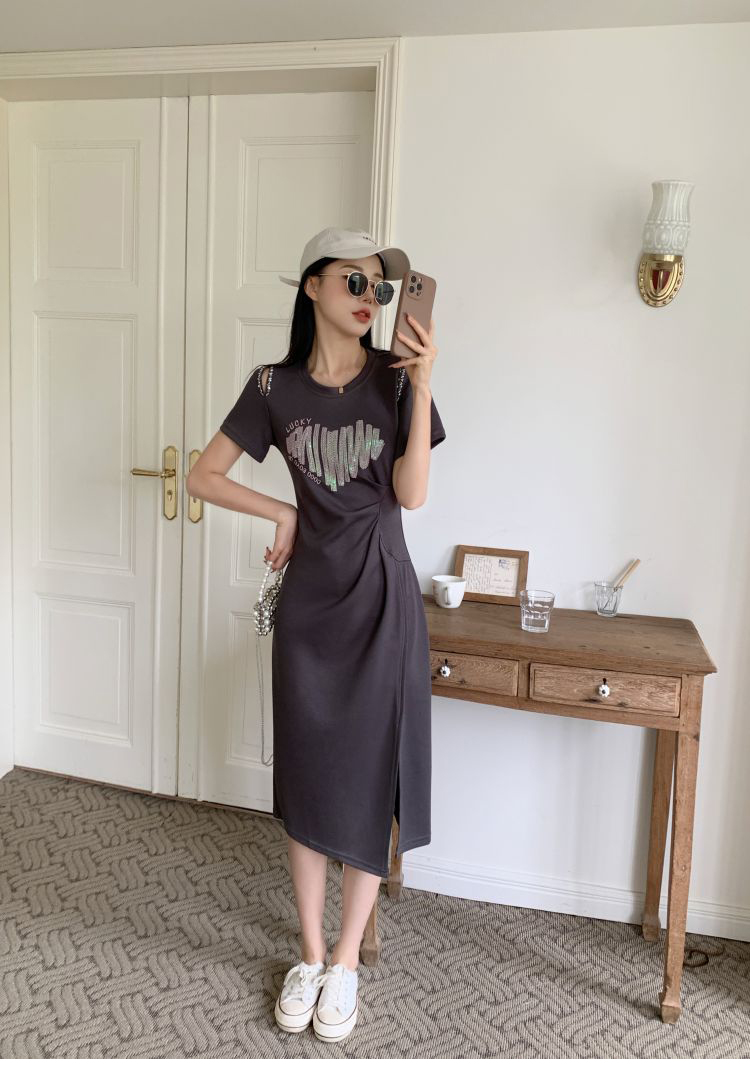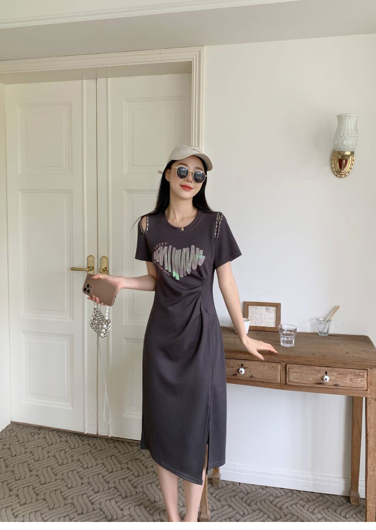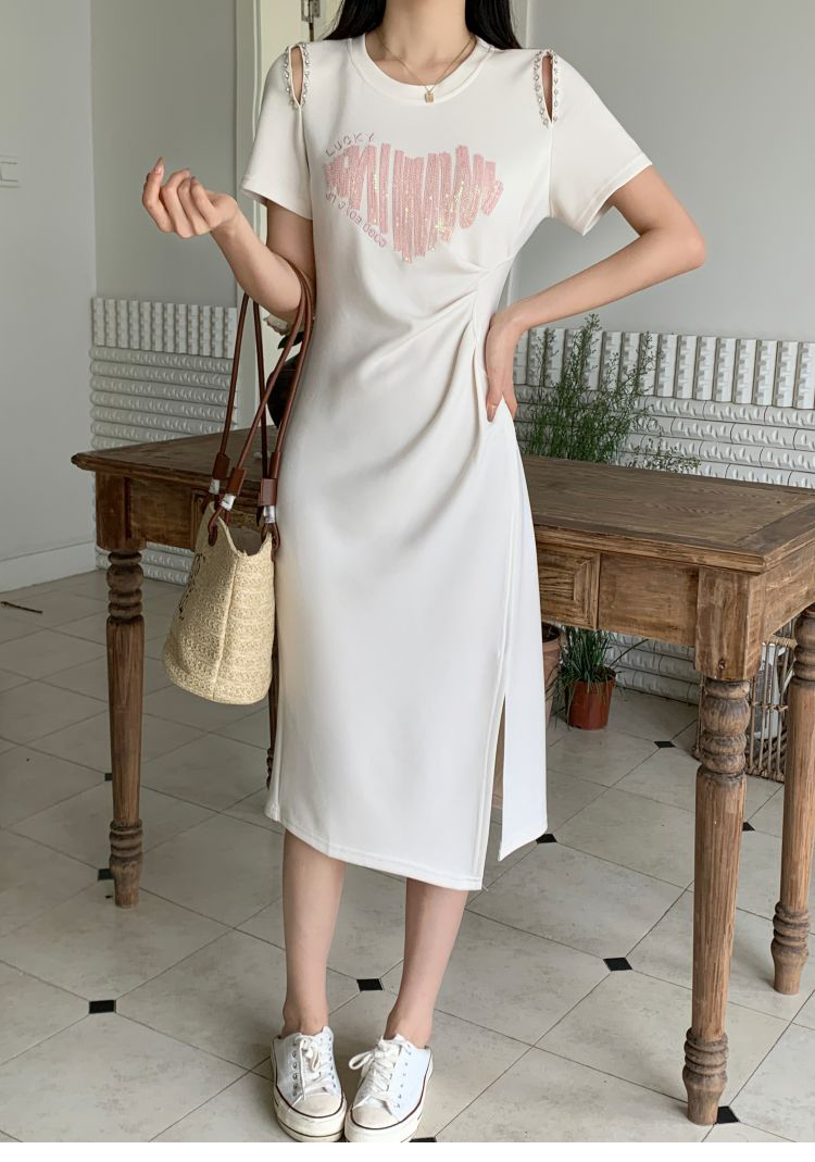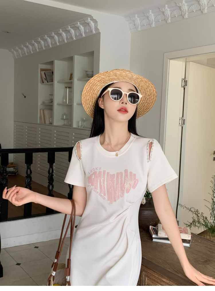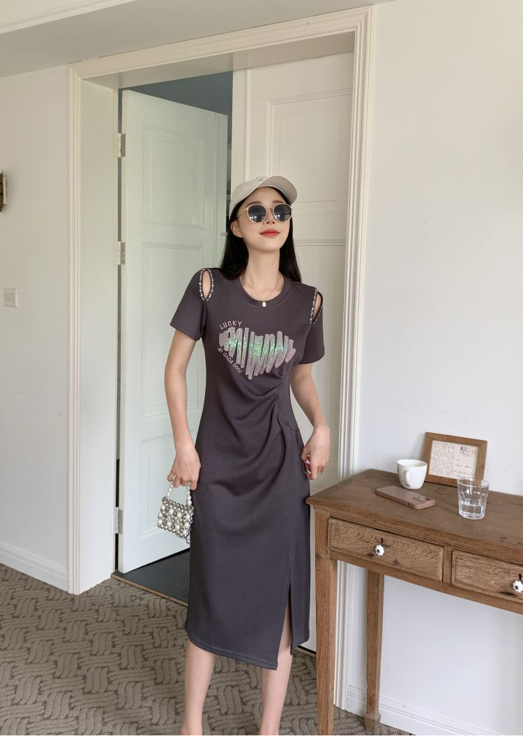 RM18264#高级感轻奢气质复古港风裙子女短袖重工镶钻刺绣爱心连衣裙夏