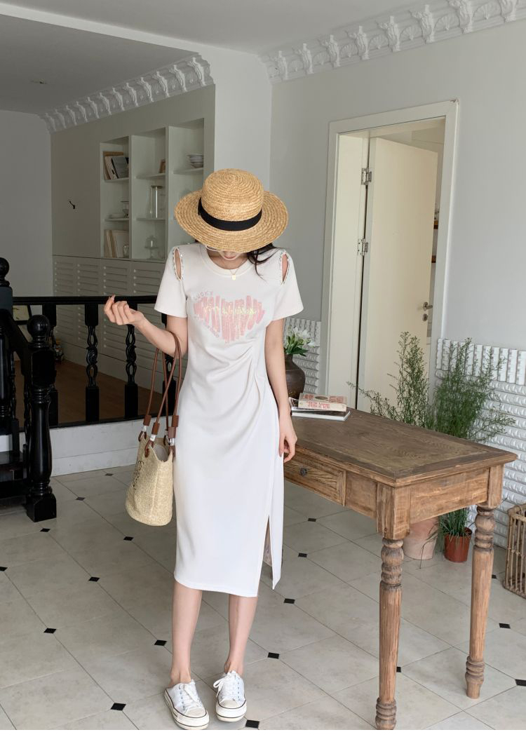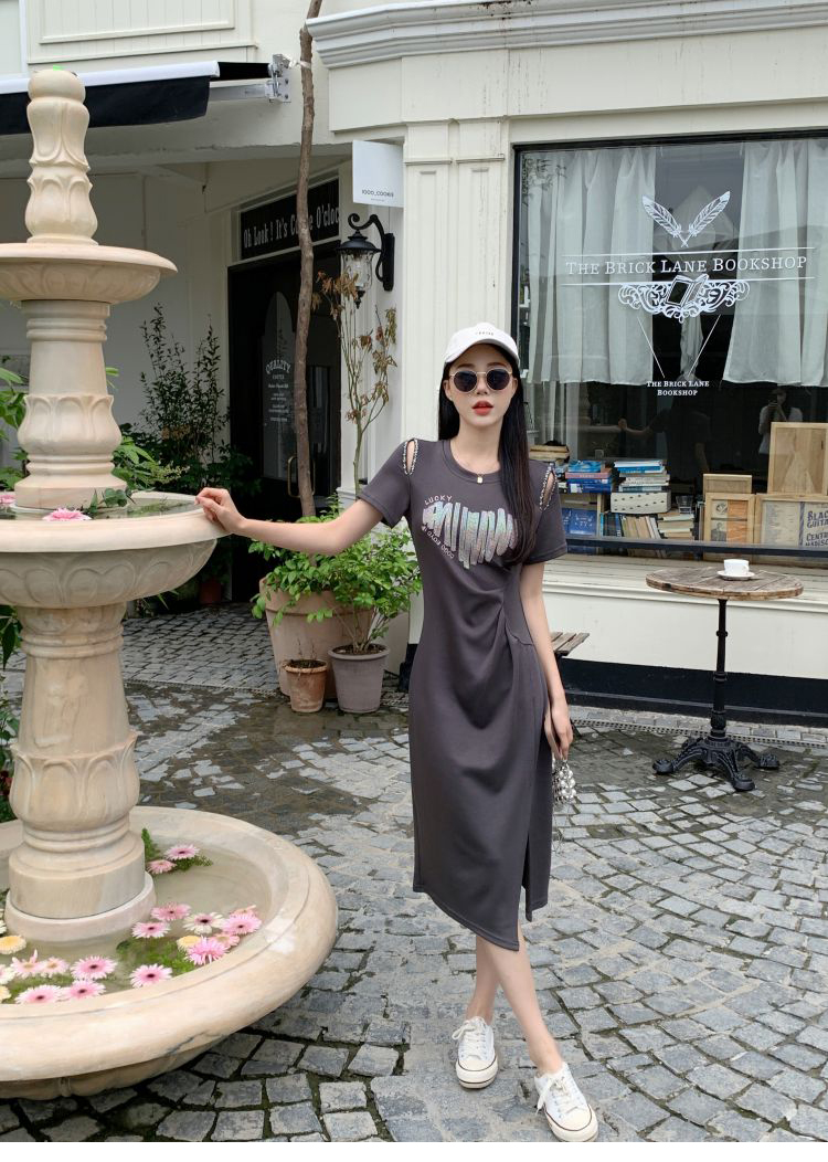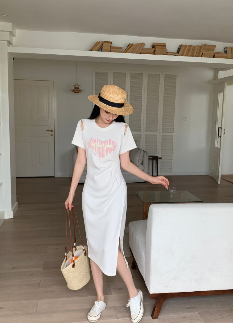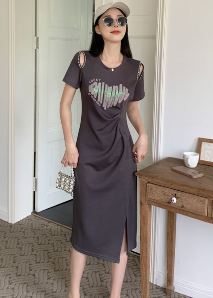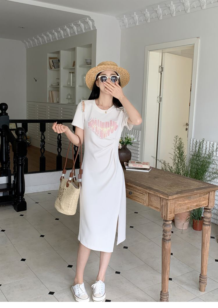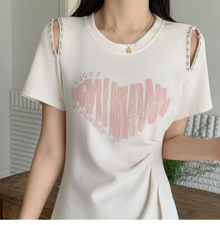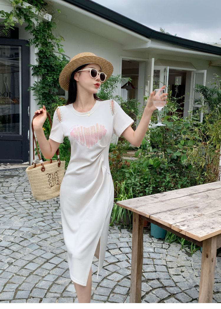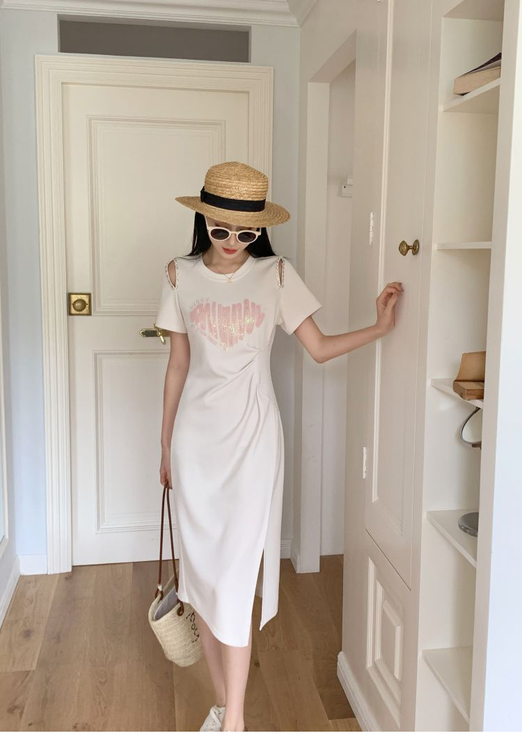 RM18264#高级感轻奢气质复古港风裙子女短袖重工镶钻刺绣爱心连衣裙夏