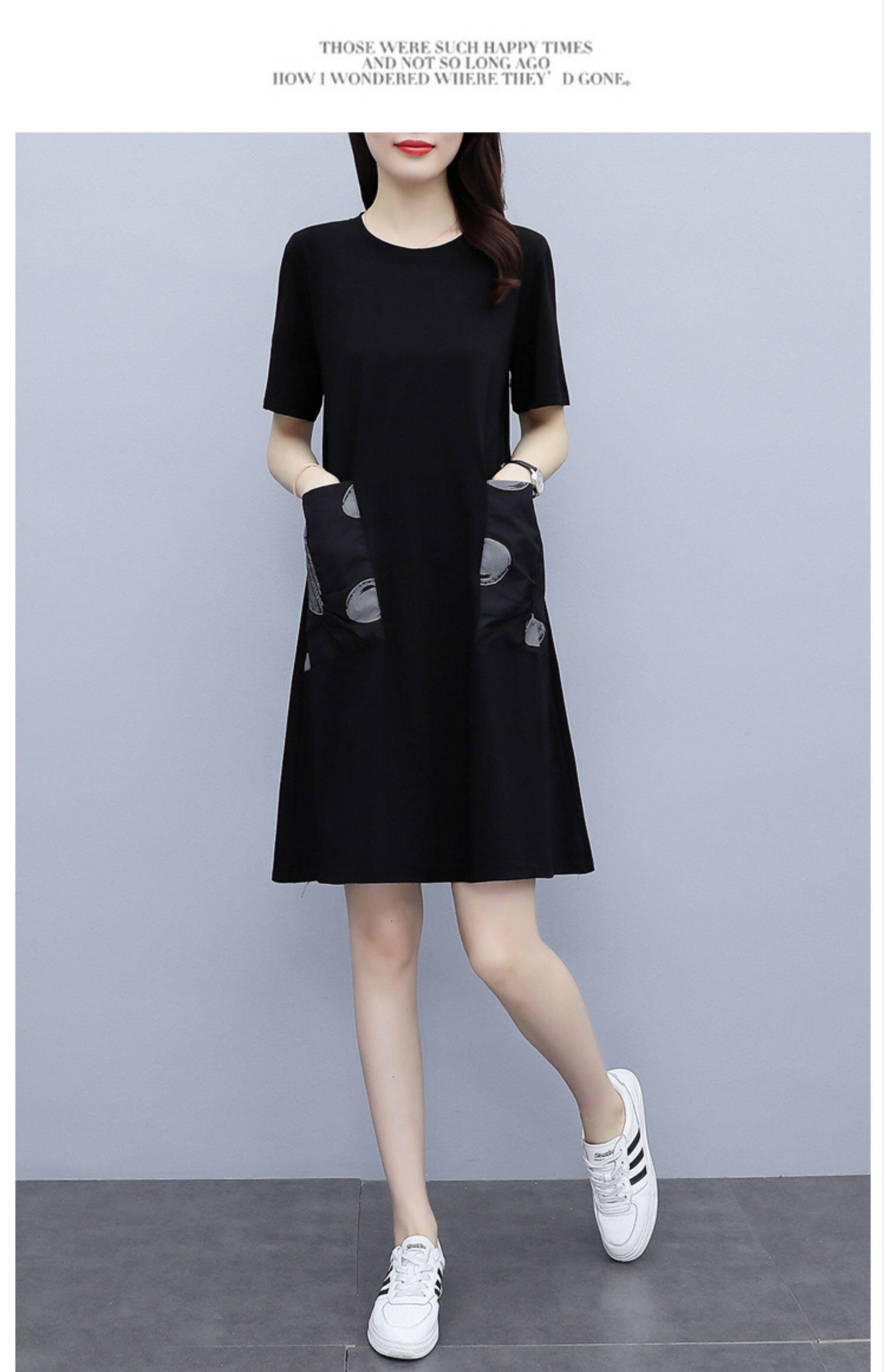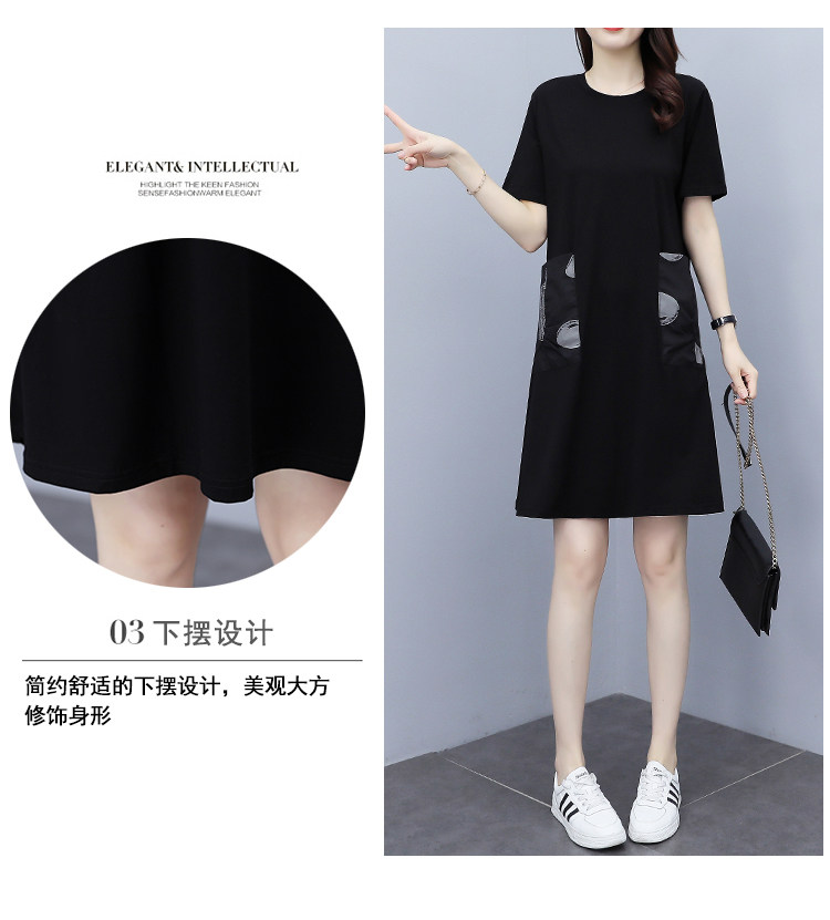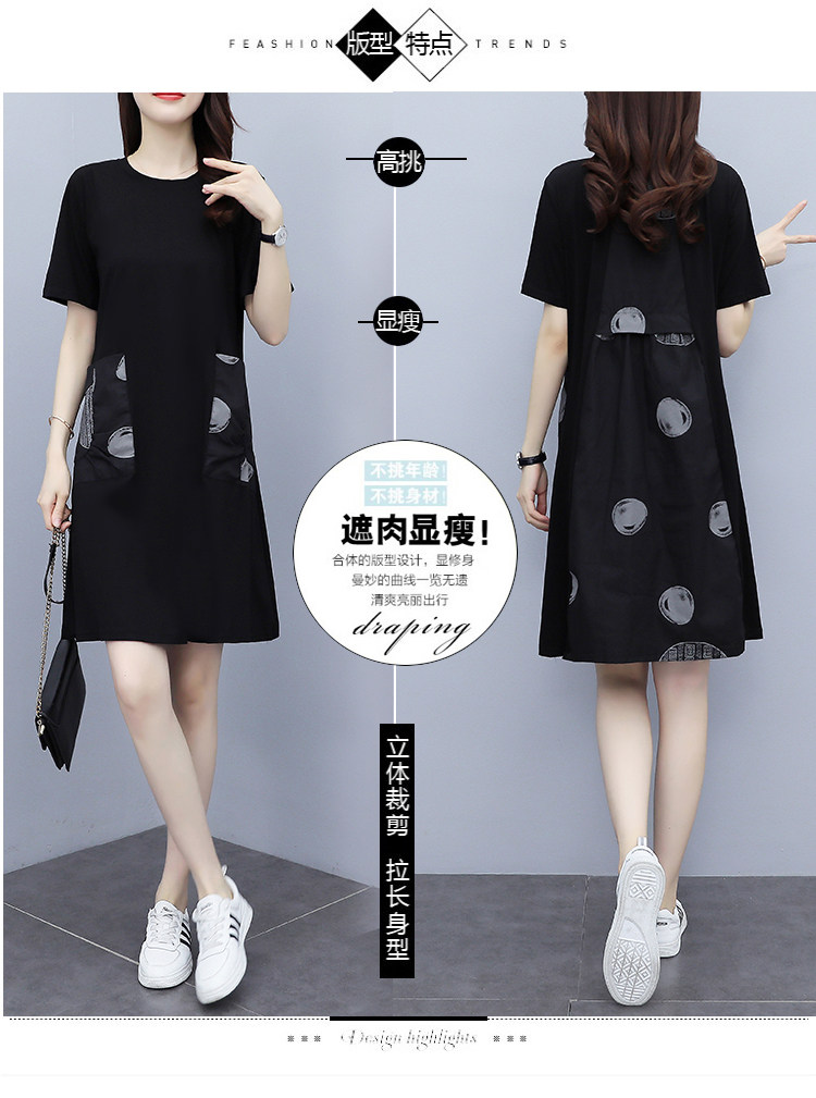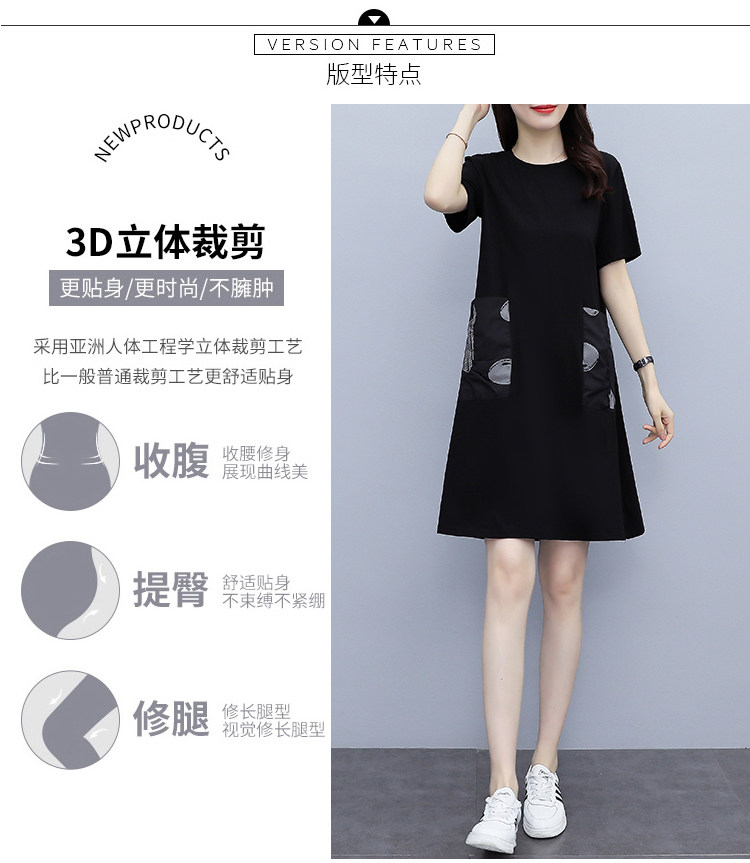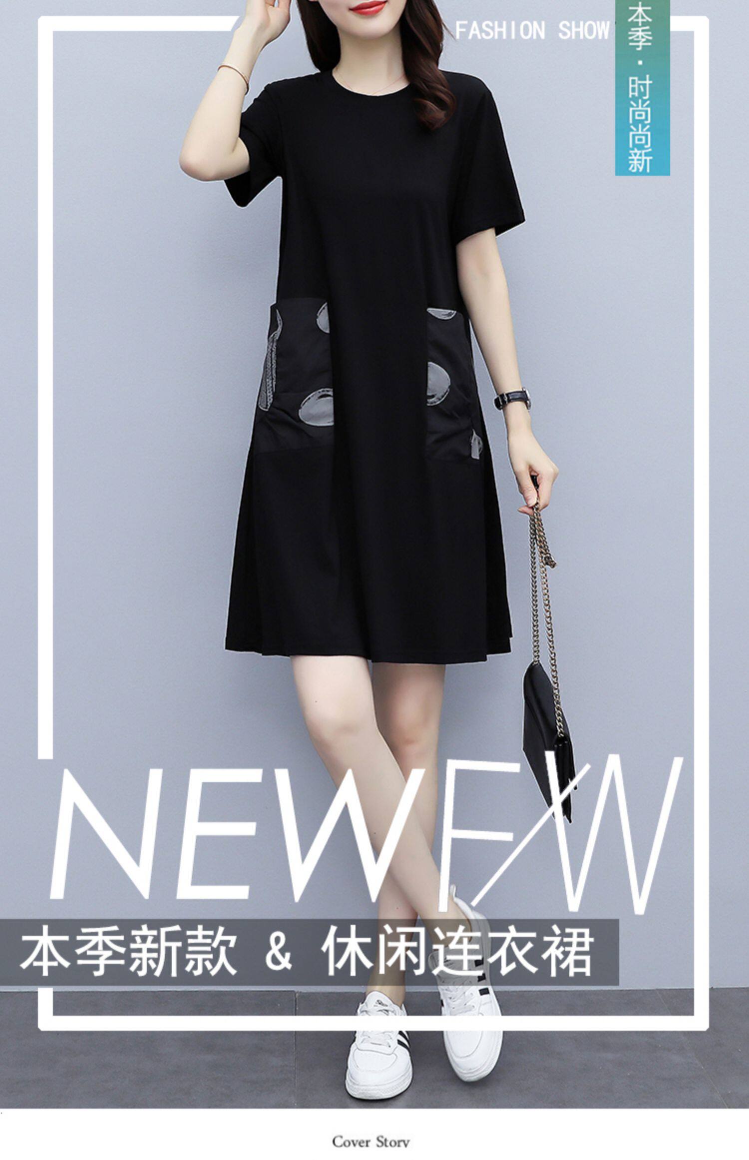 RM18620#大码休闲圆领连衣裙女2023夏装新款胖MM宽松遮肚中长款a字卫衣裙
