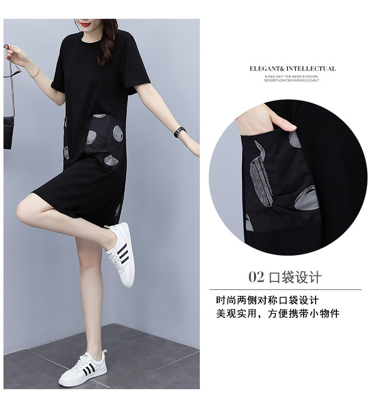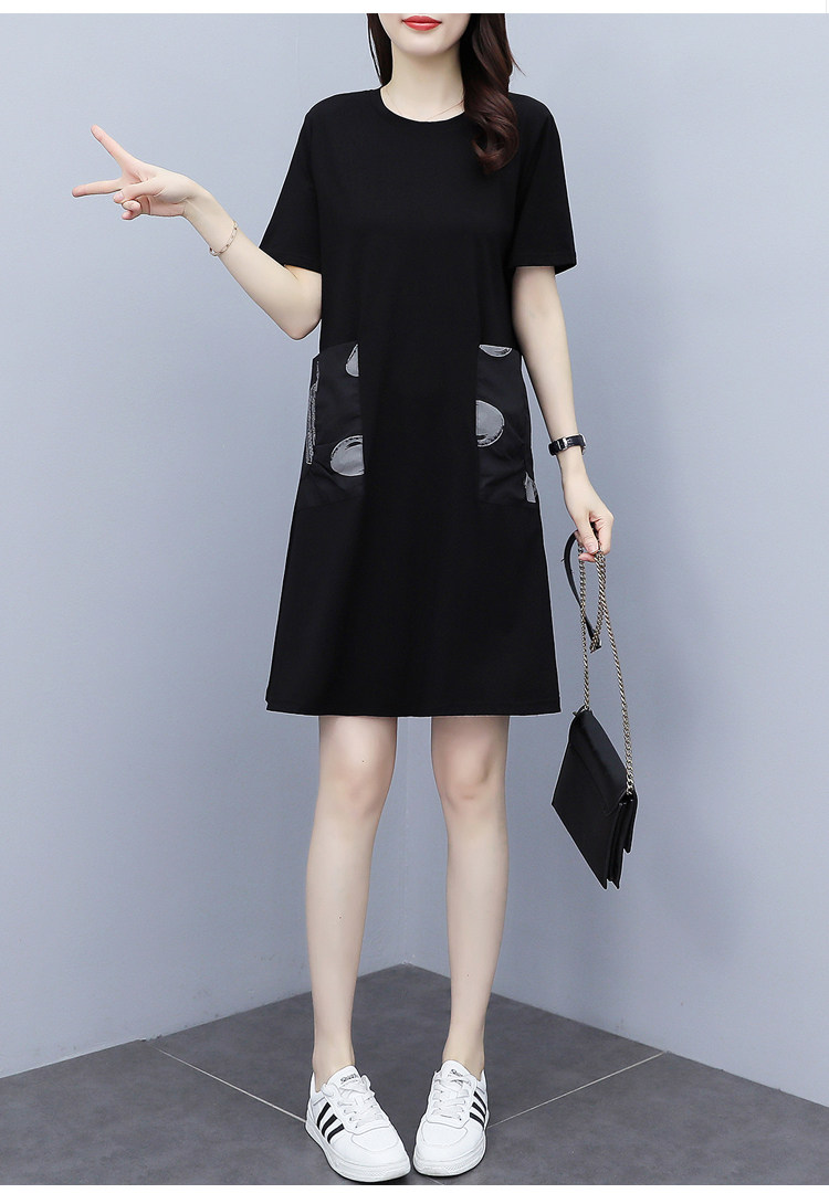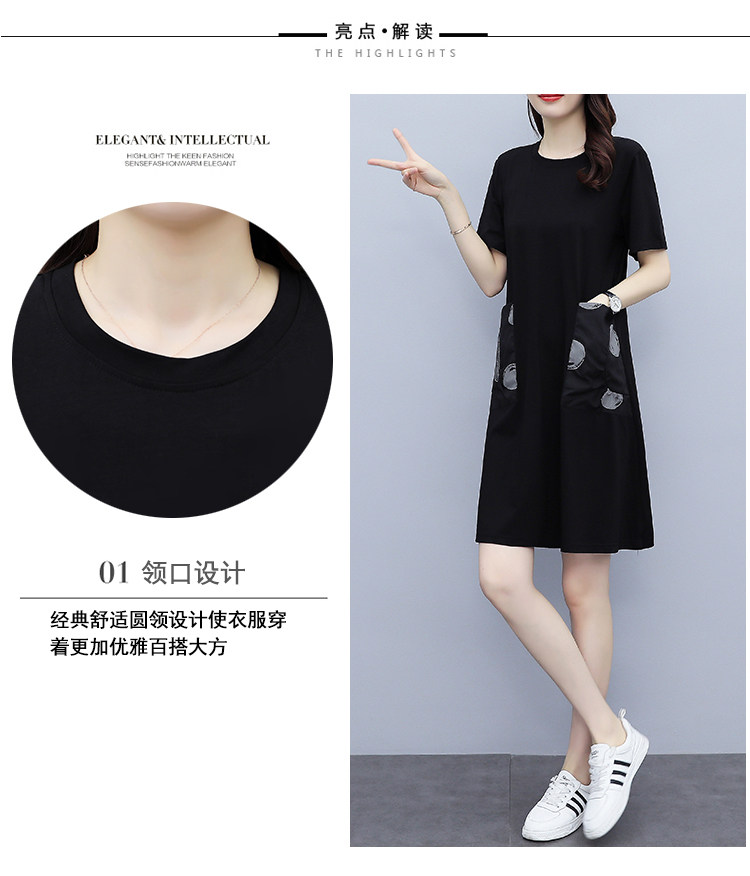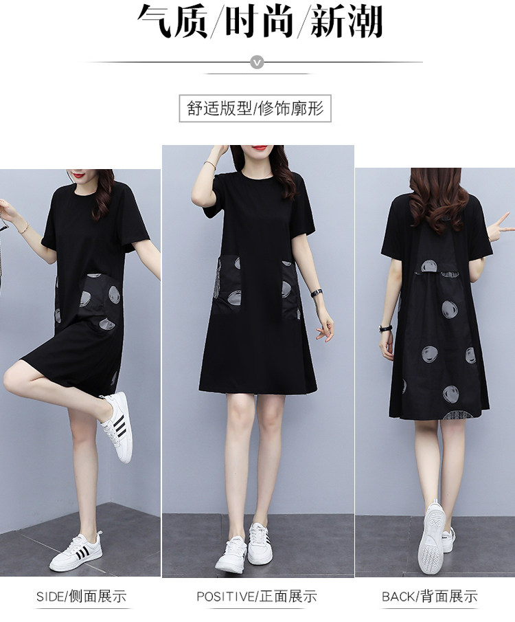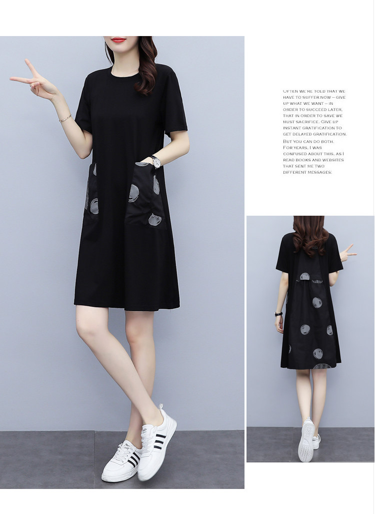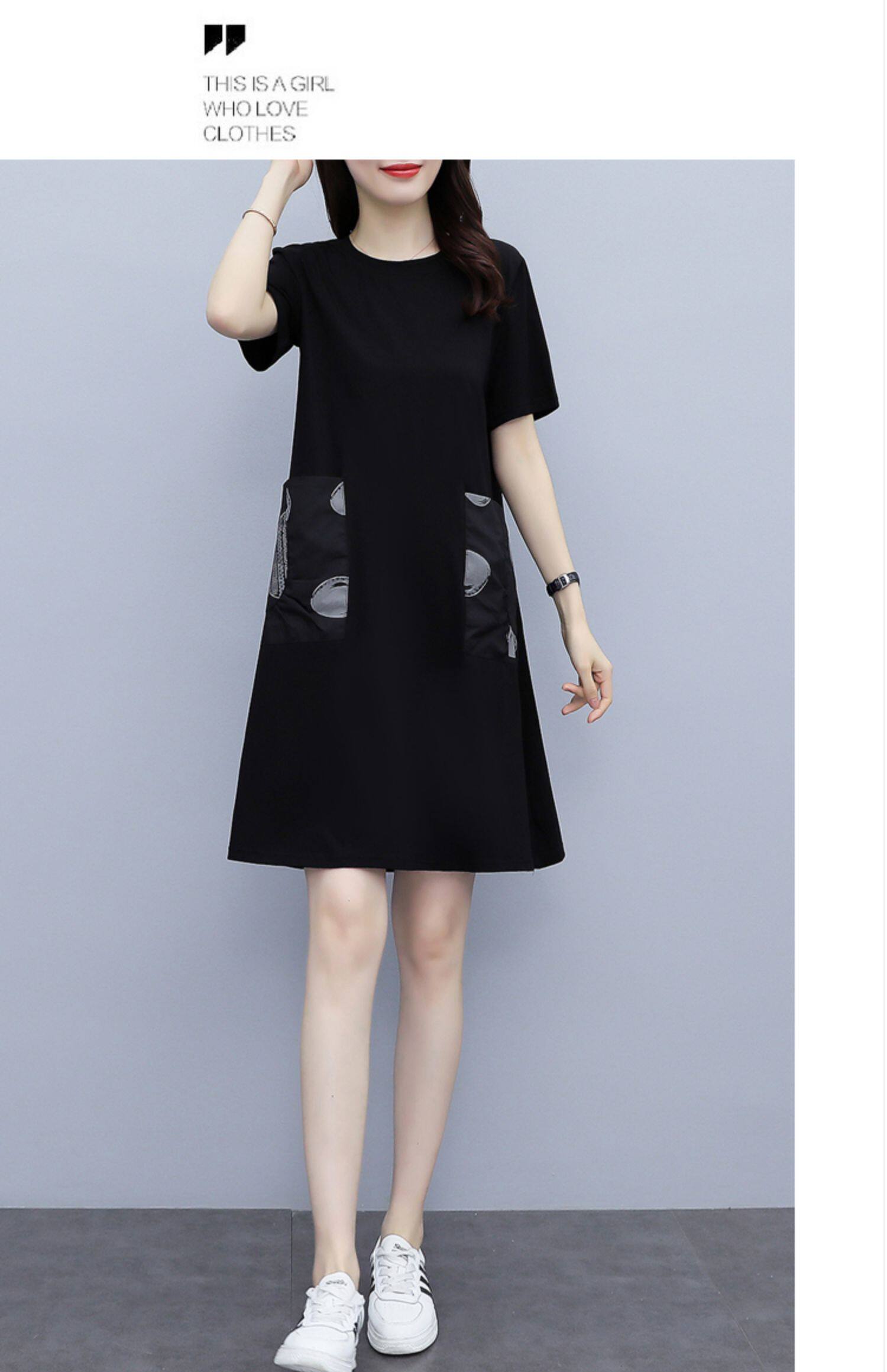 RM18620#大码休闲圆领连衣裙女2023夏装新款胖MM宽松遮肚中长款a字卫衣裙