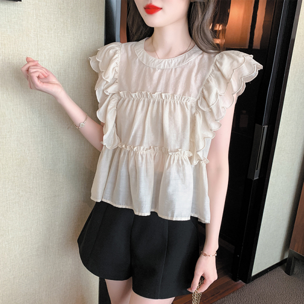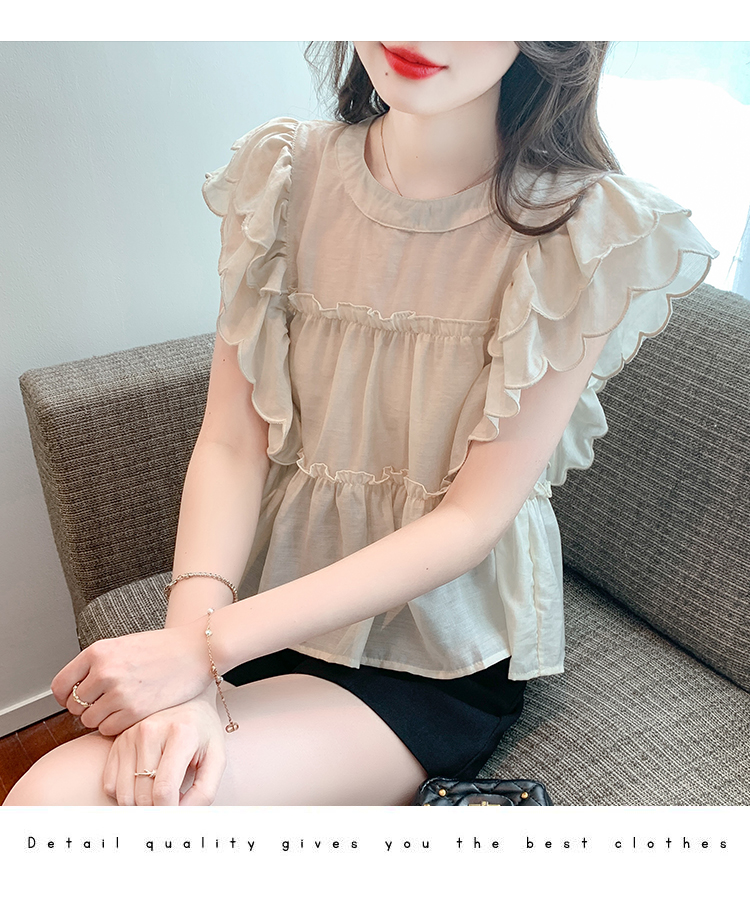 RM18577#飞飞袖双层荷叶边衬衫2023夏季新款设计感甜美别致上衣女