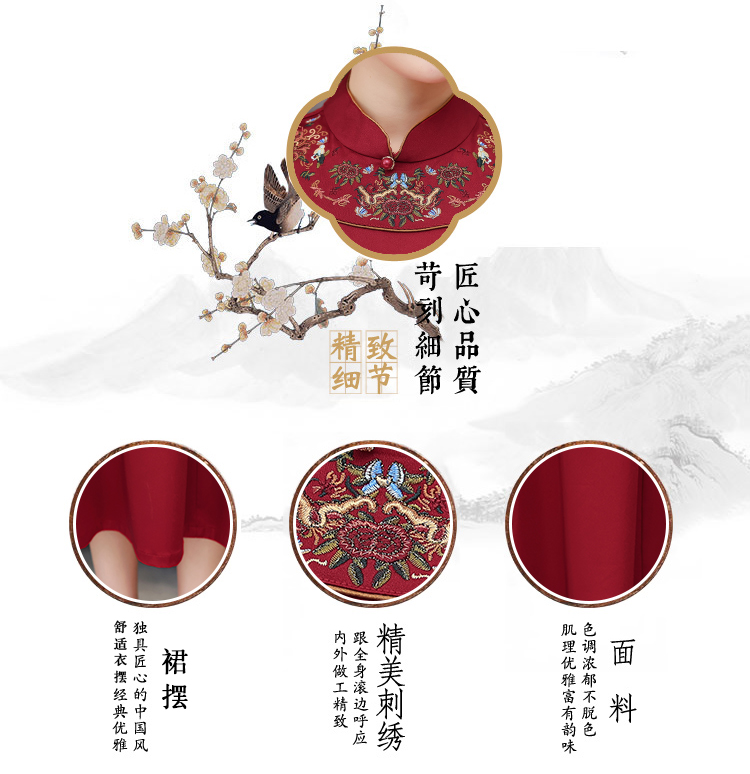 RM18727#婚宴礼服高考送考旗袍连衣裙2023新款高贵洋气结婚红色喜婆婆
