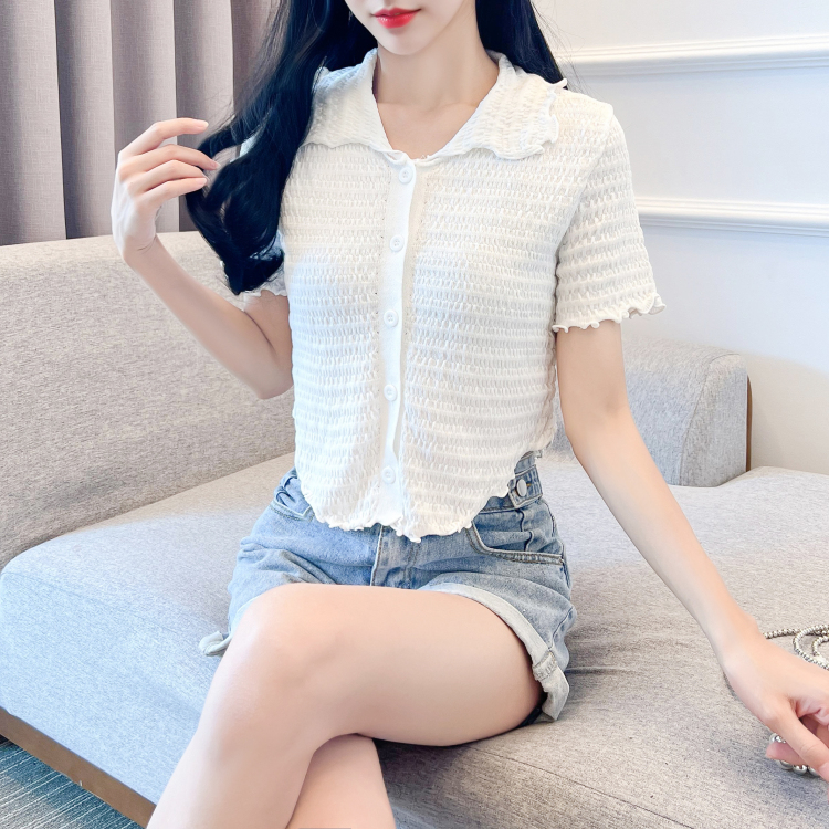 RM18431#夏季新款设计感木耳边短袖T恤显瘦冰丝针织上衣女