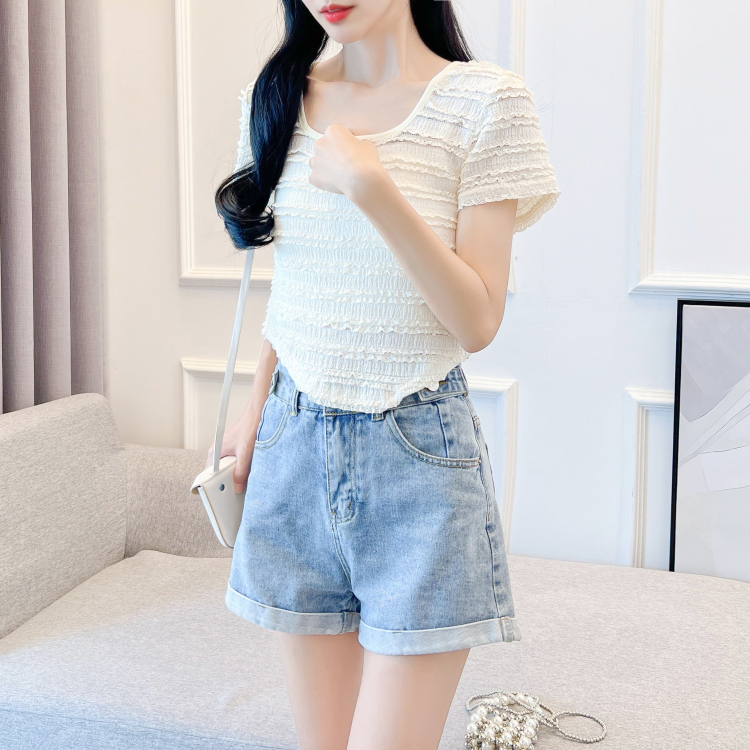 RM18410#夏季新款设计感短款方领T恤冰丝甜辣妹显瘦上衣女