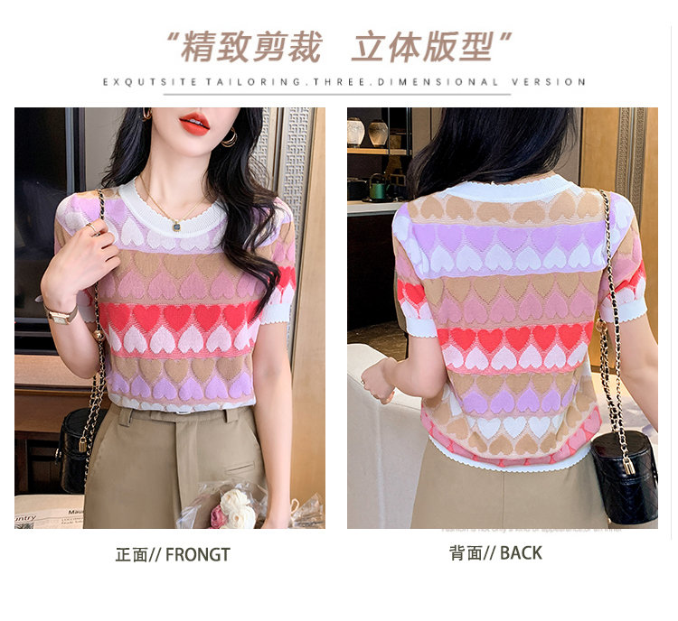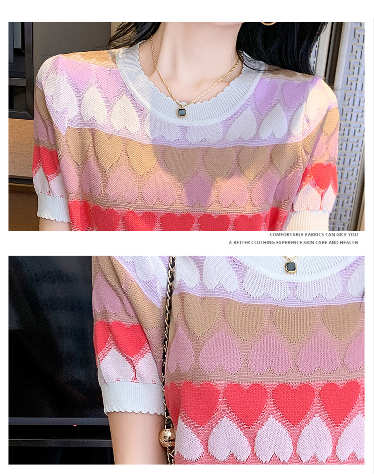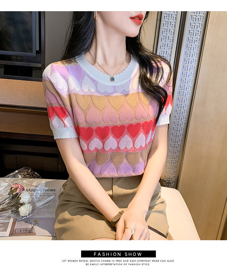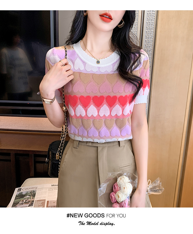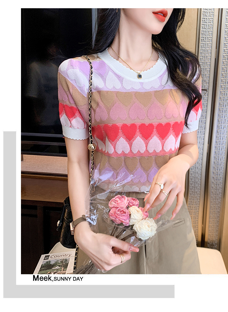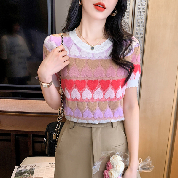 RM18528#爱心撞色宽松针织衫2023夏季新款创意简约风百搭薄款上衣女