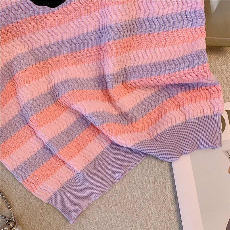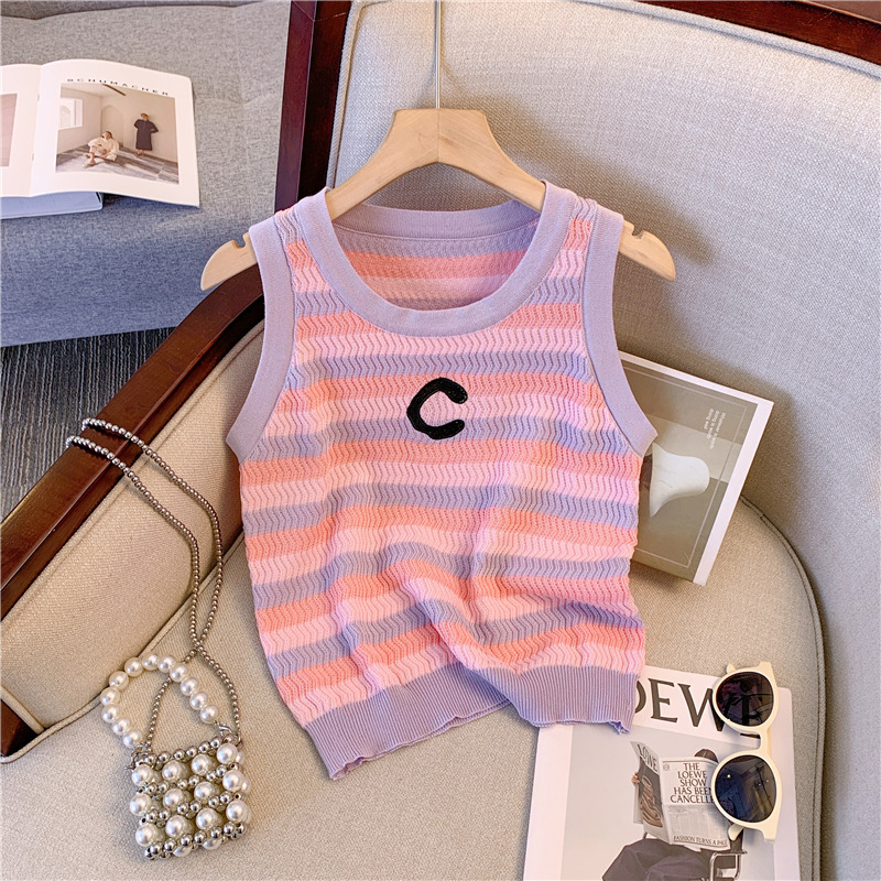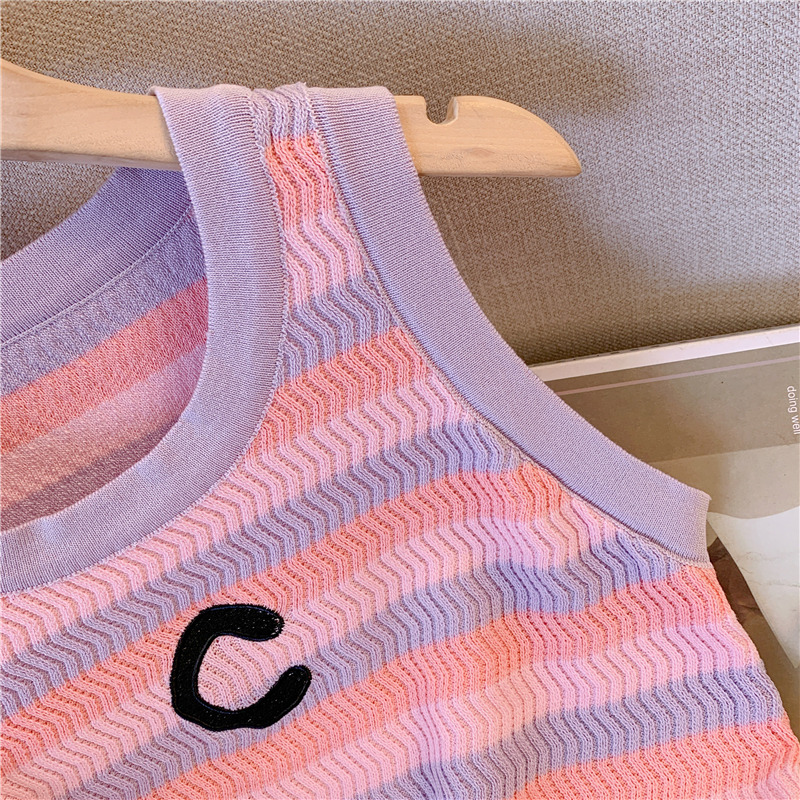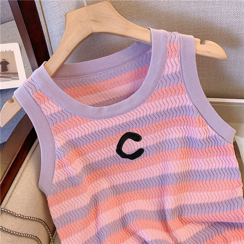 RM18428#粉色条纹针织吊带背心女夏季内搭修身打底甜辣妹无袖上衣外穿