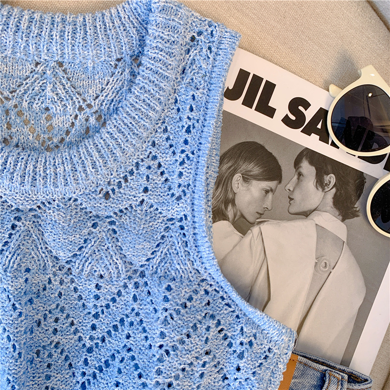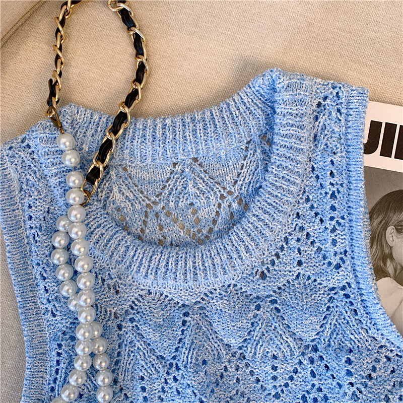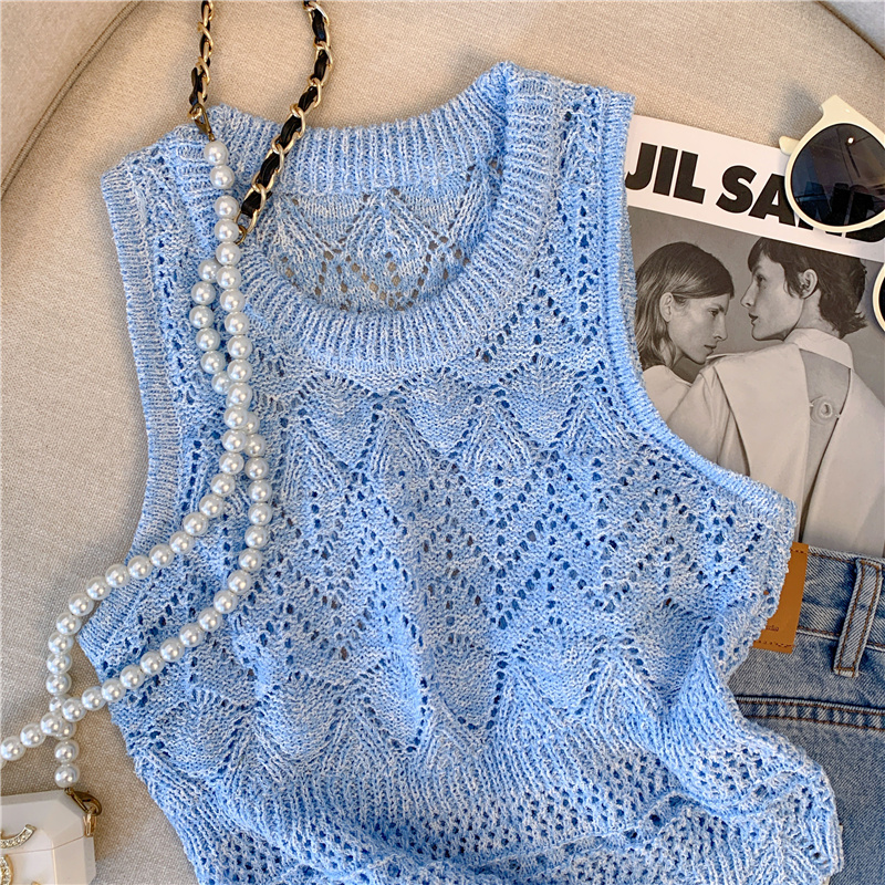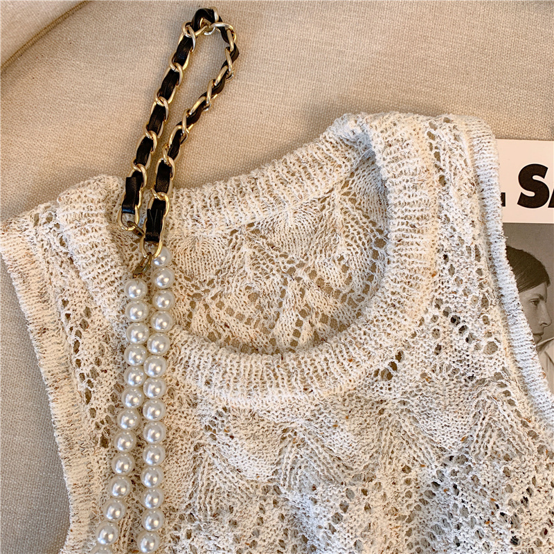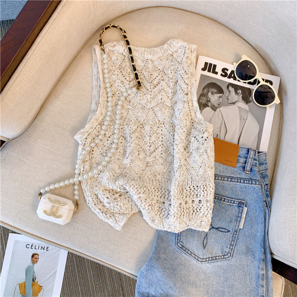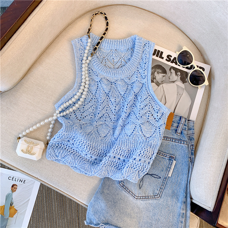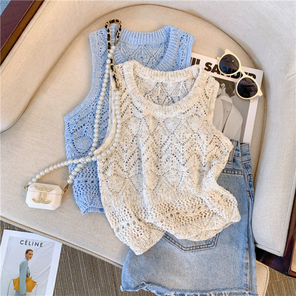 RM18453#清新针织吊带背心女夏季新款设计感钩花镂空夹花无袖背心上衣