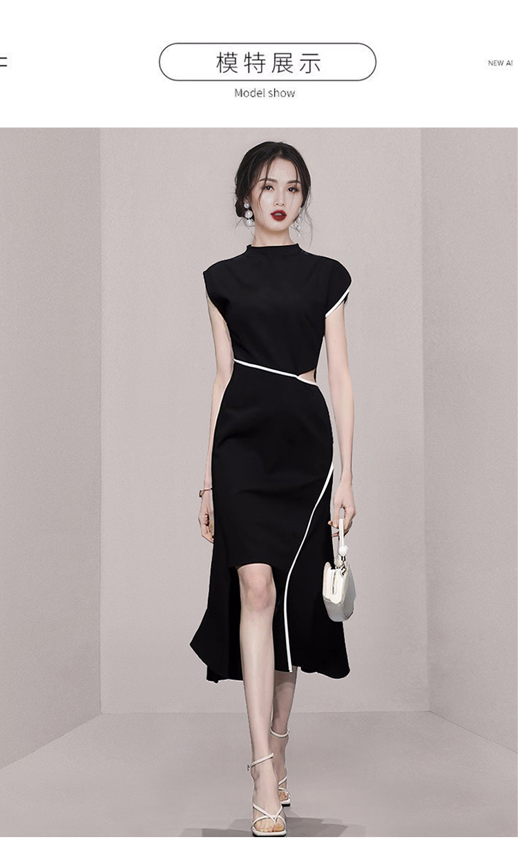 RM18398#夏季女装2023新款气质黑色修身收腰显瘦鱼尾连衣裙包臀裙长裙裙子
