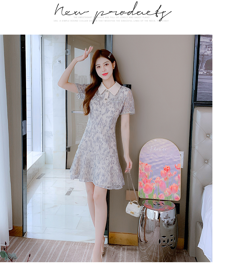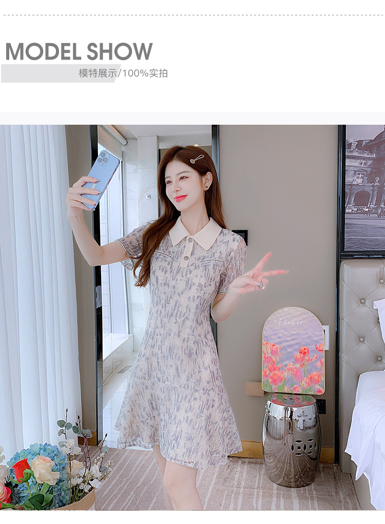RM18713#蕾丝连衣裙女裙子2023夏季新款法式复古碎花小个子收腰显瘦裙