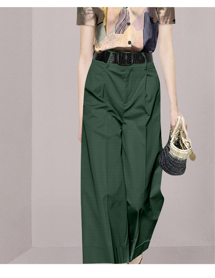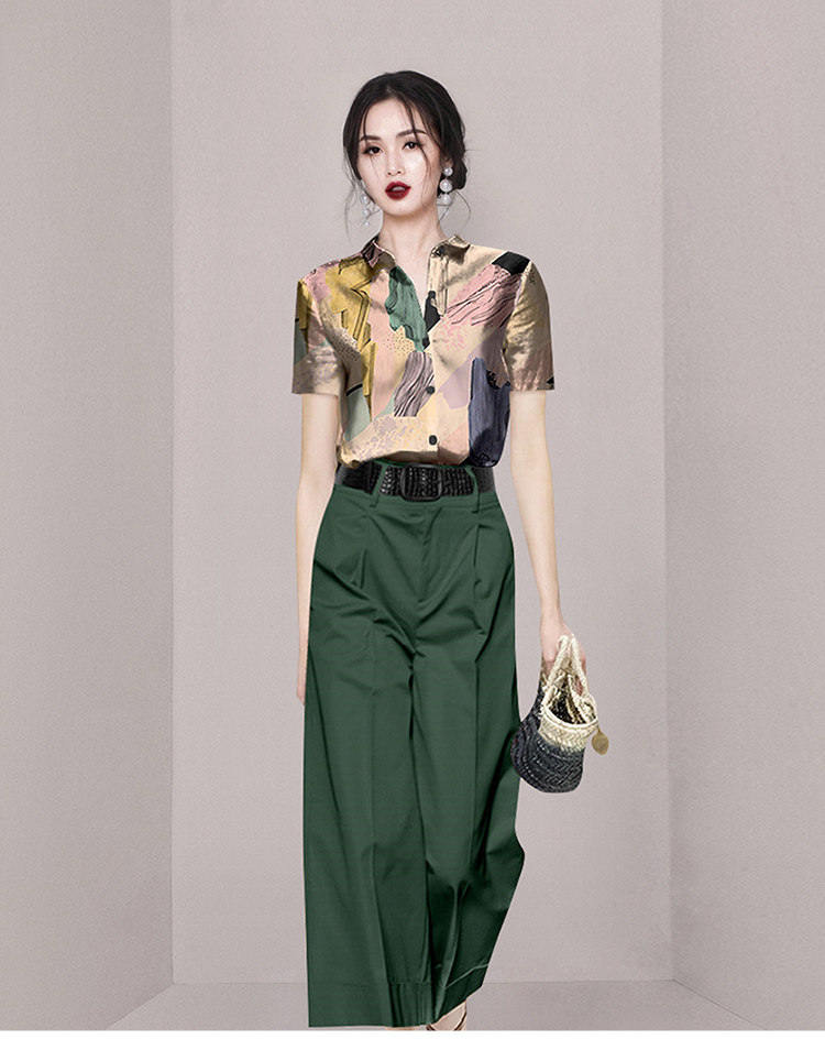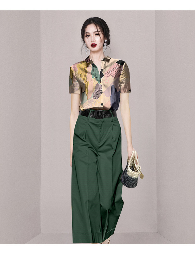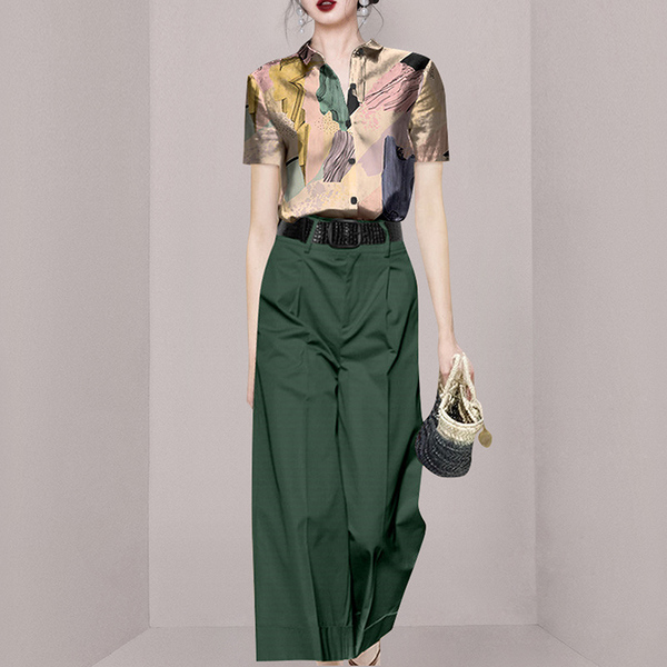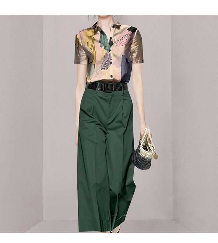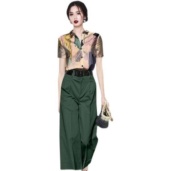 RM18716#直筒单排扣短袖长裤阔腿裤通勤套装