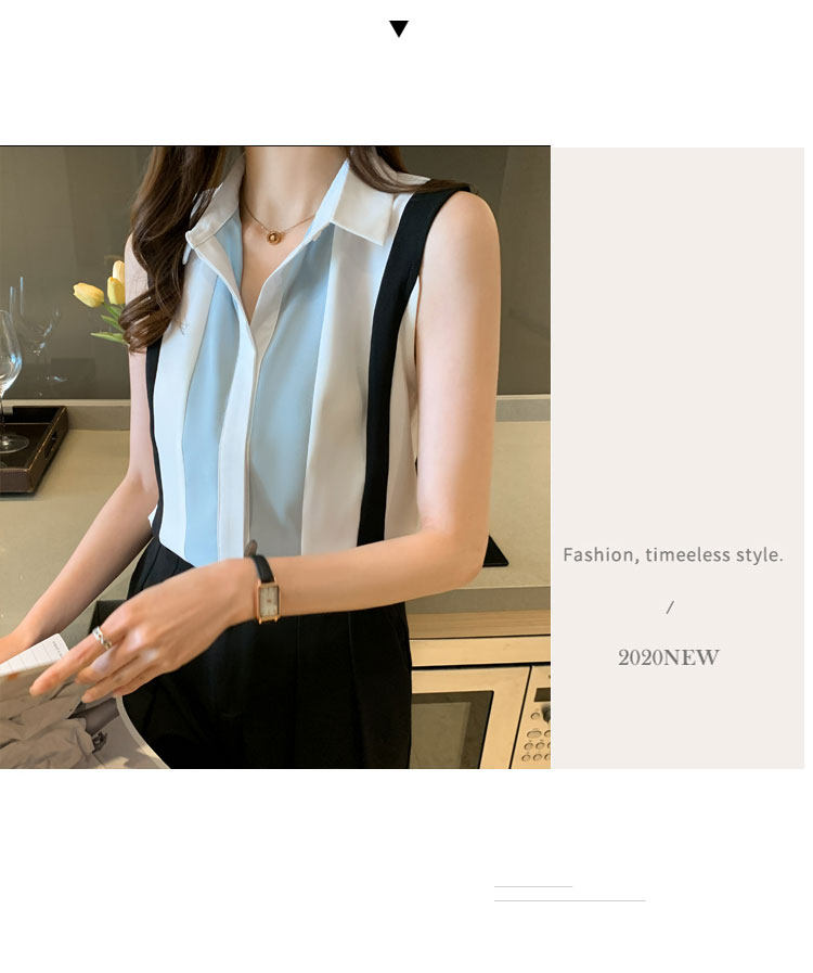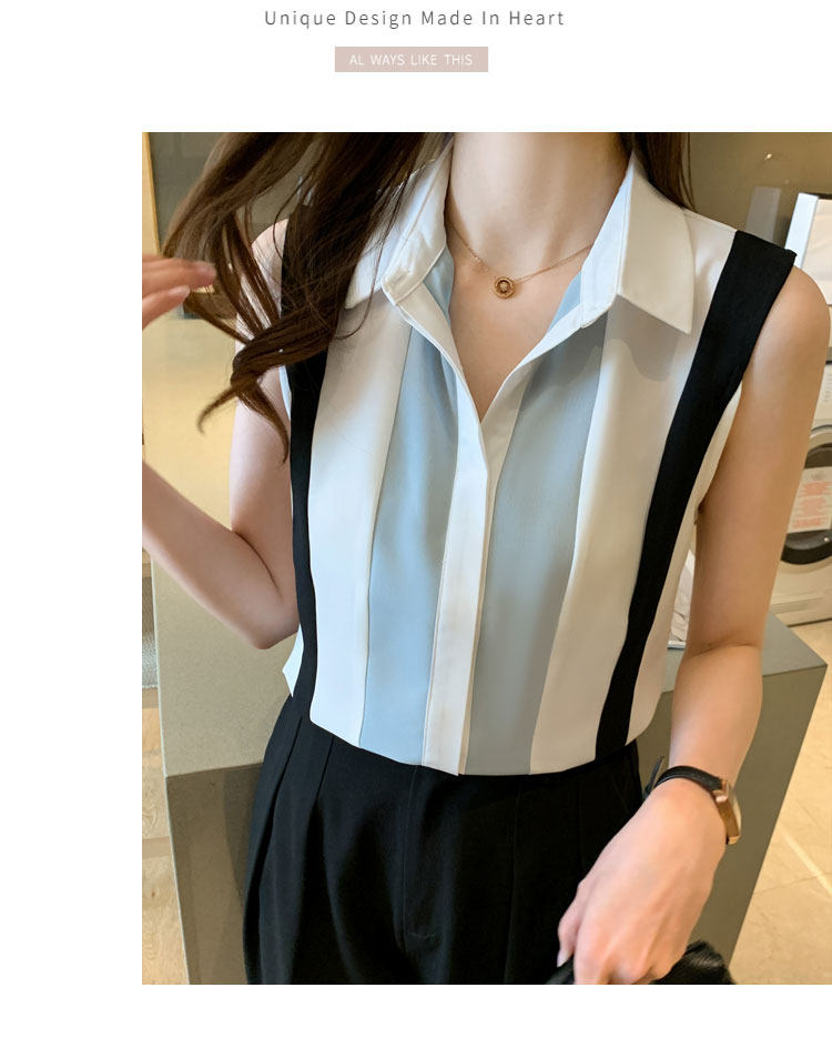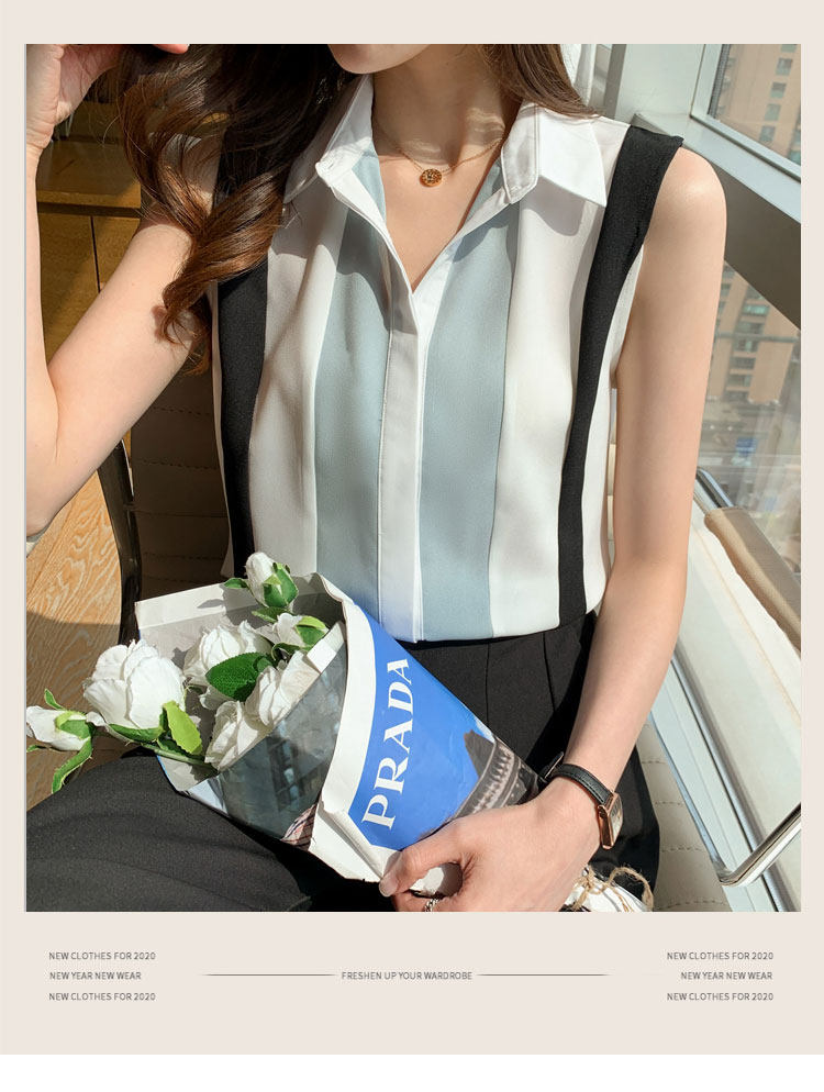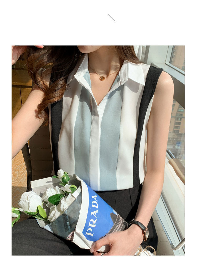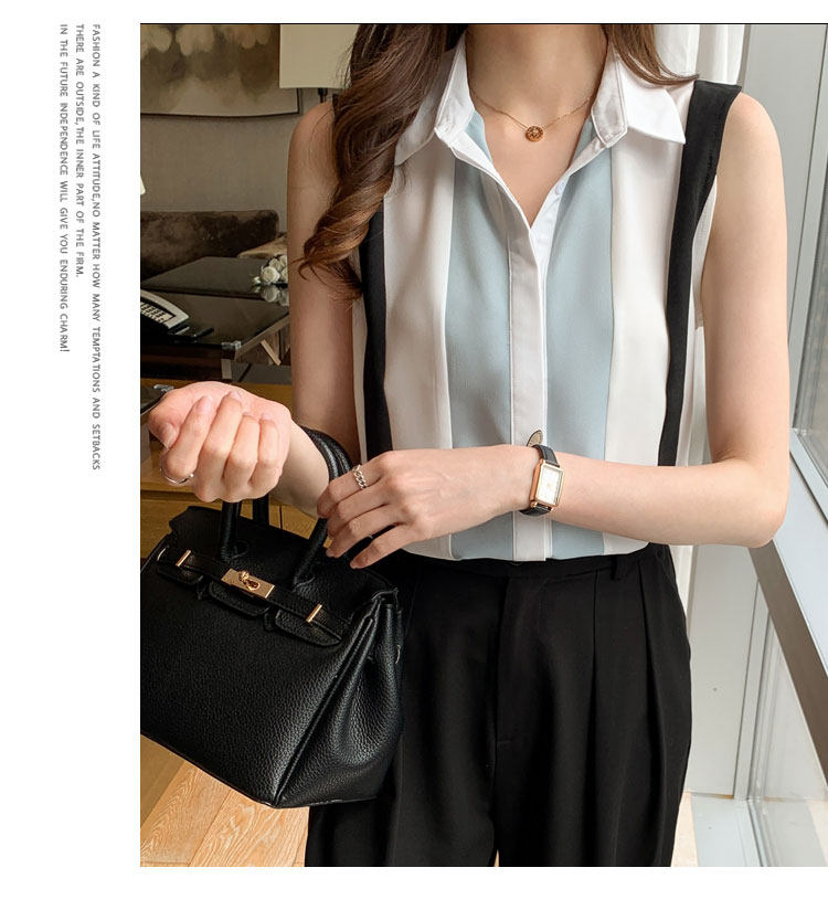 RM18811#洋气夏季撞色坎肩背心女外穿衬衫无袖雪纺打底衫内搭上衣