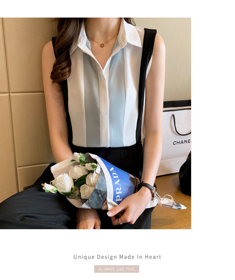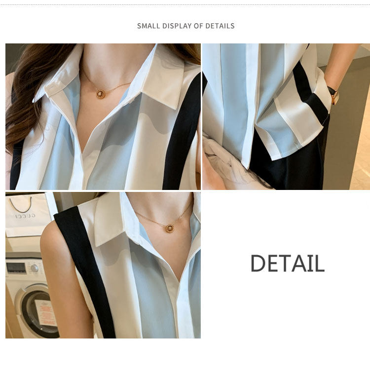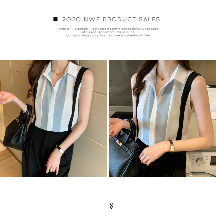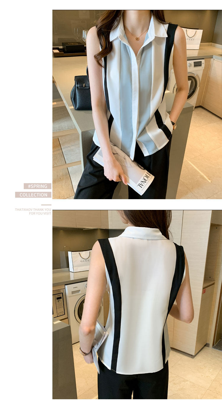 RM18811#洋气夏季撞色坎肩背心女外穿衬衫无袖雪纺打底衫内搭上衣