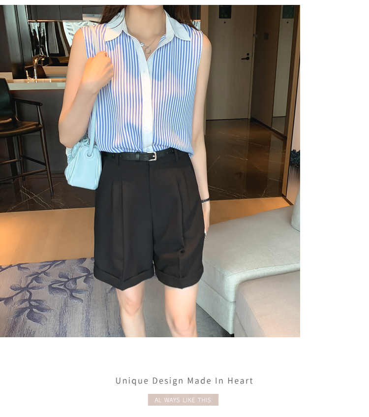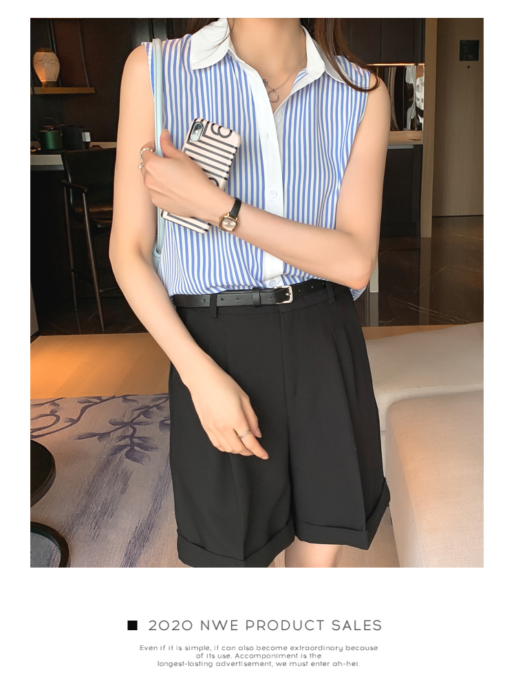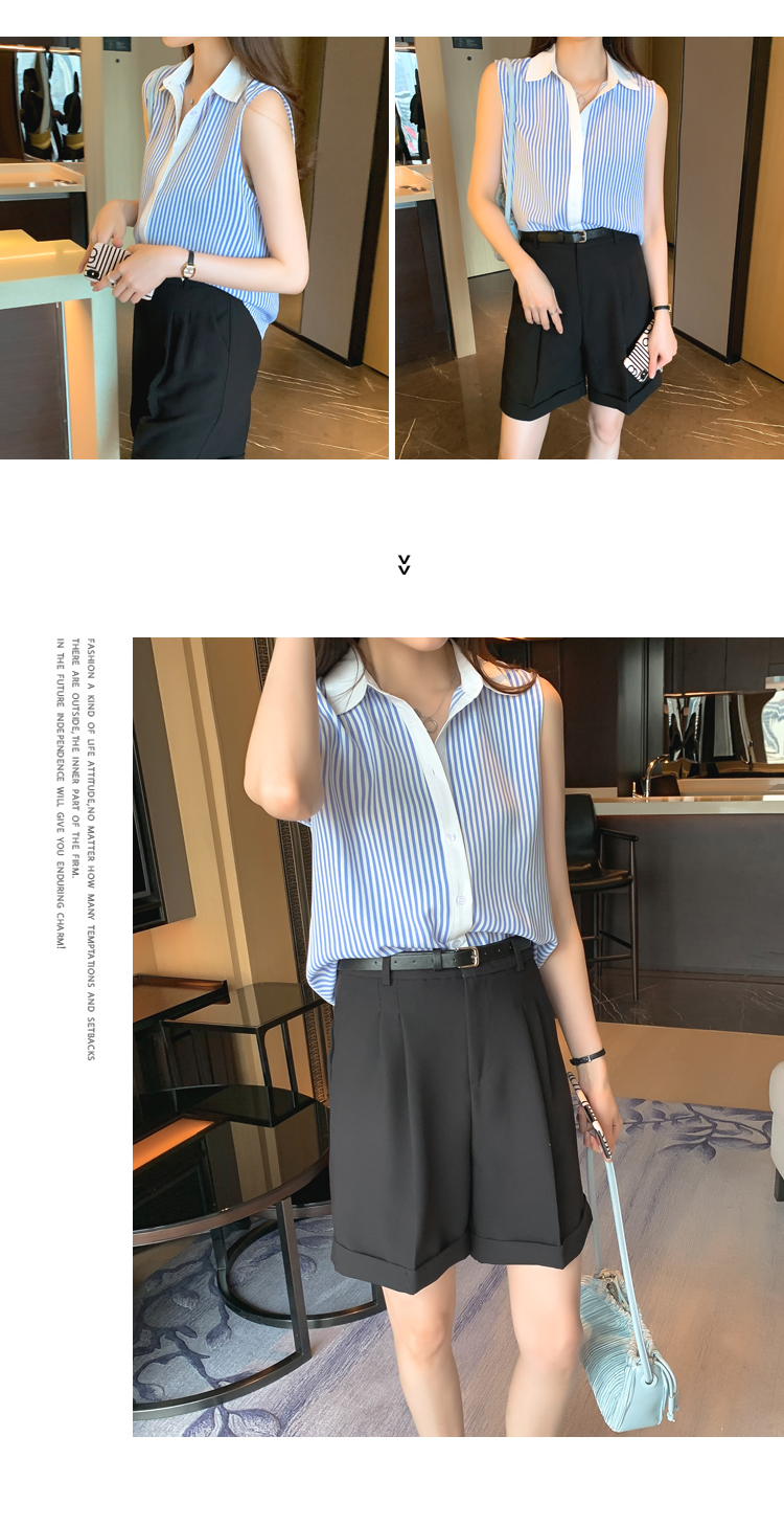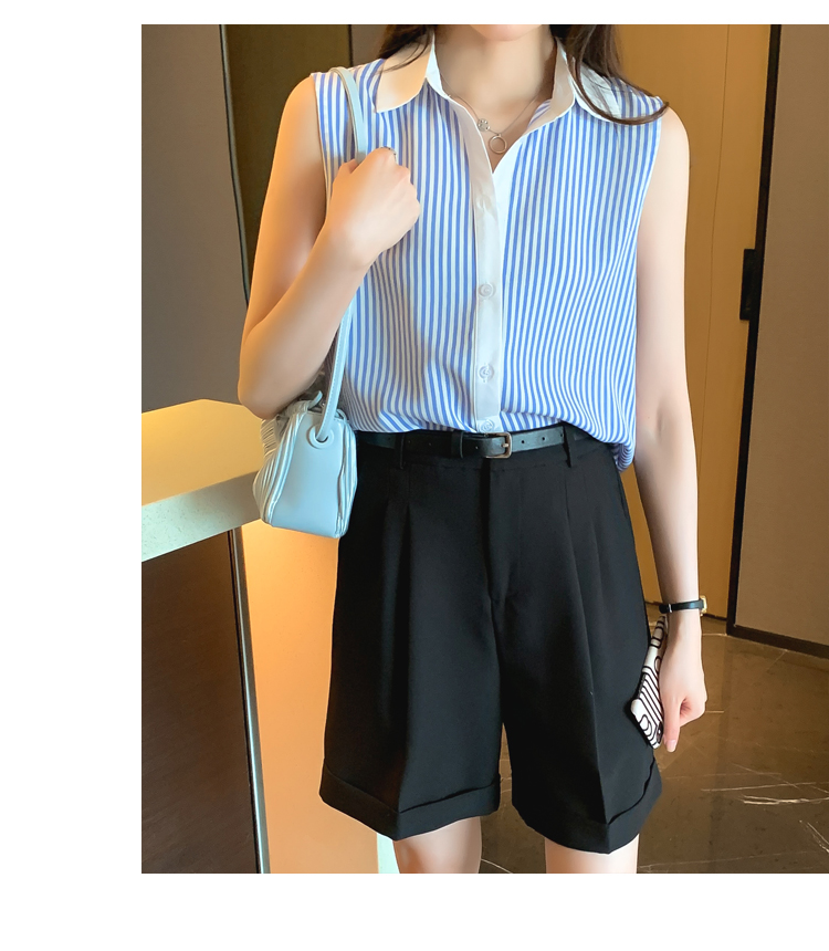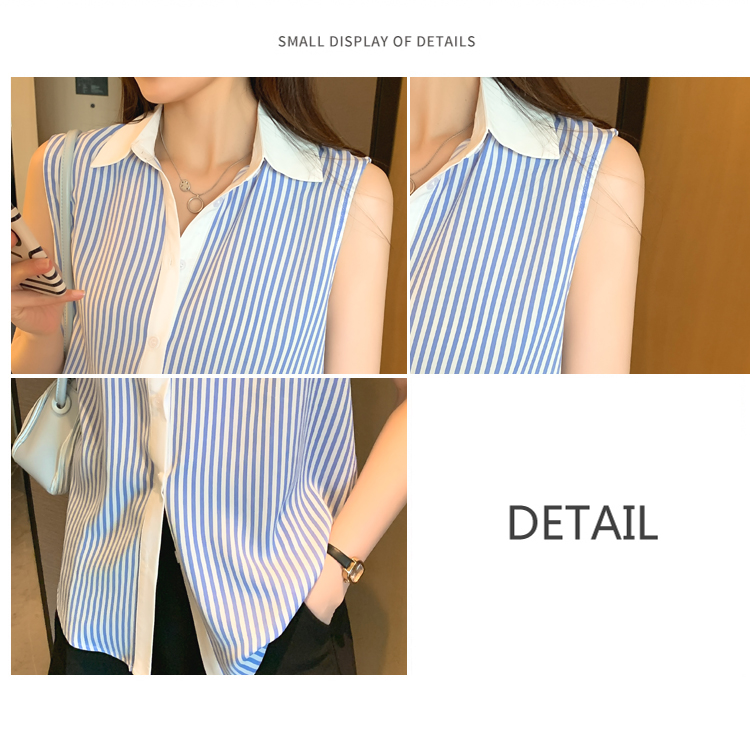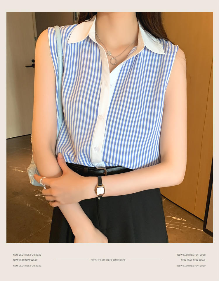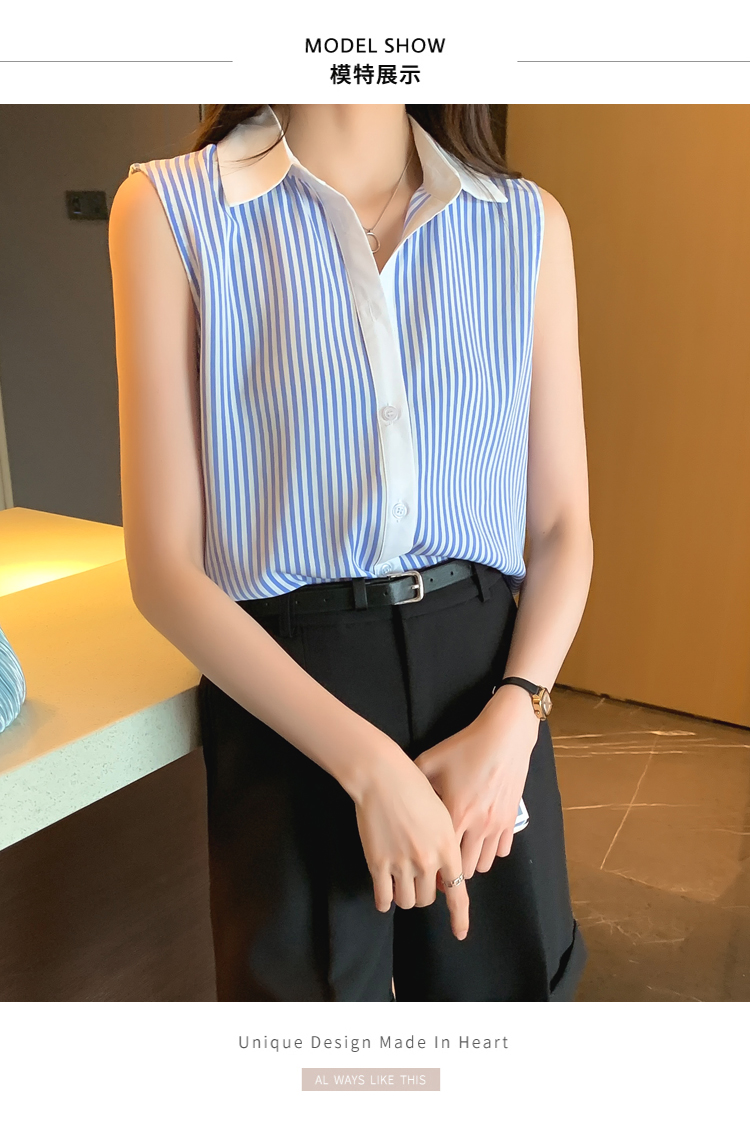 RM18816#洋气条纹夏季坎肩背心女外穿衬衫无袖雪纺打底衫内搭上衣