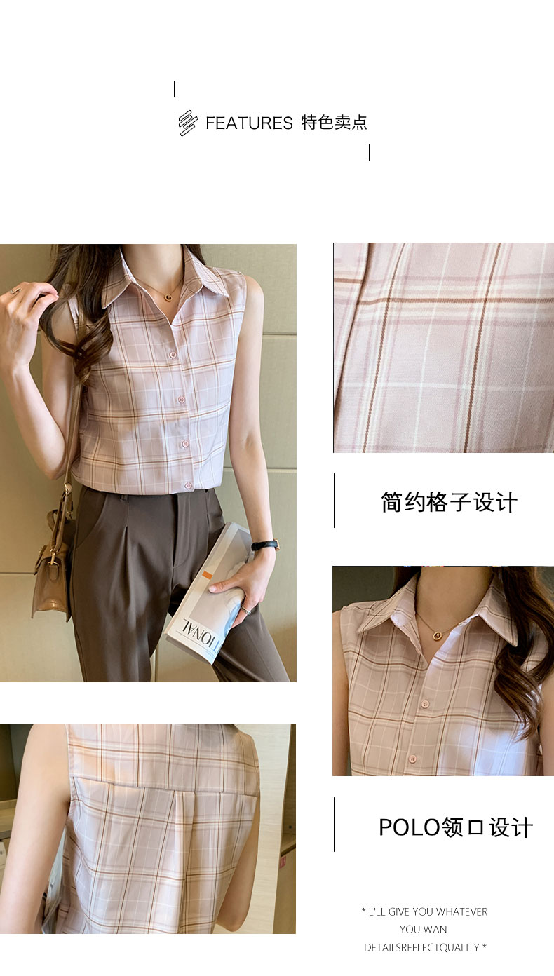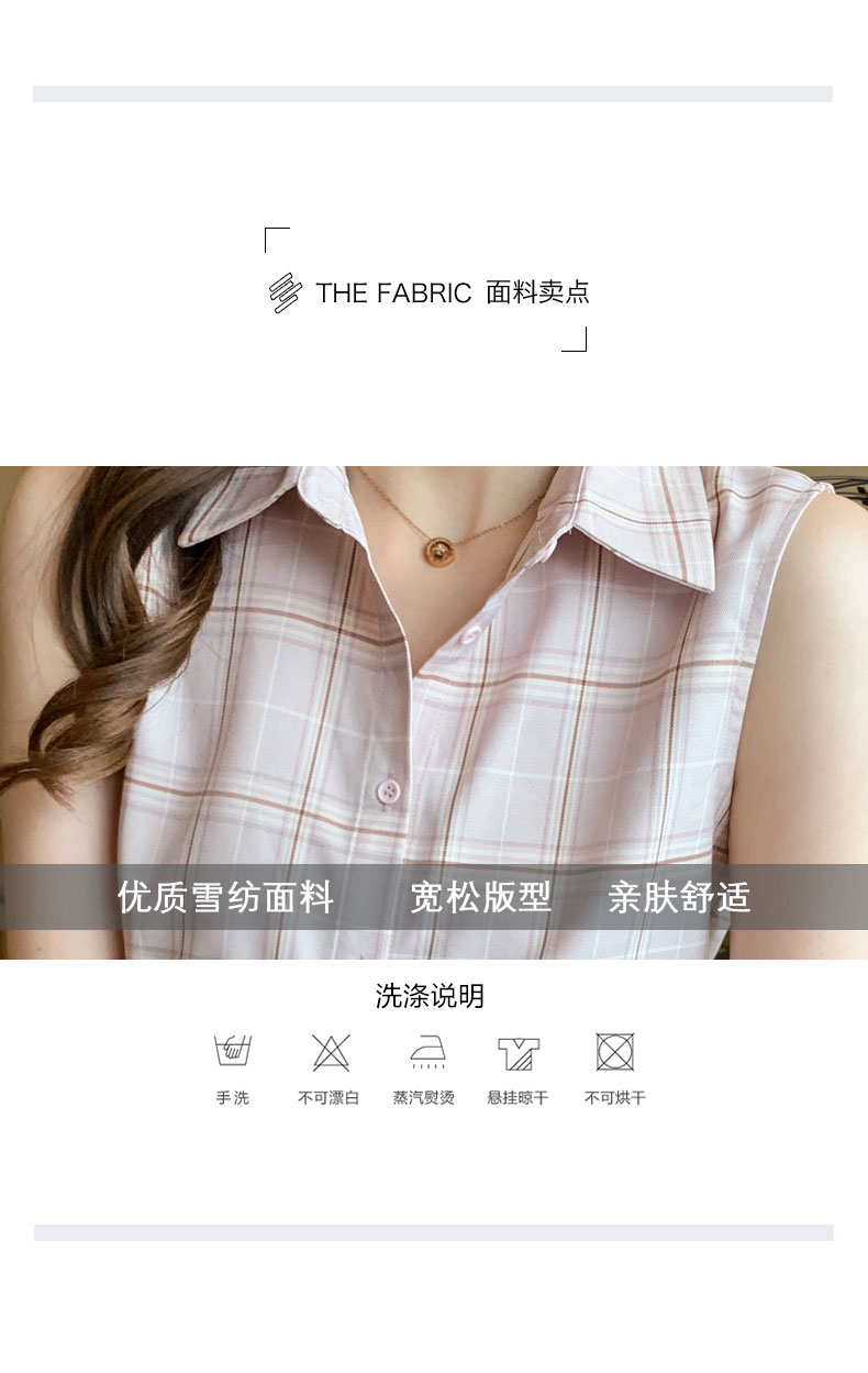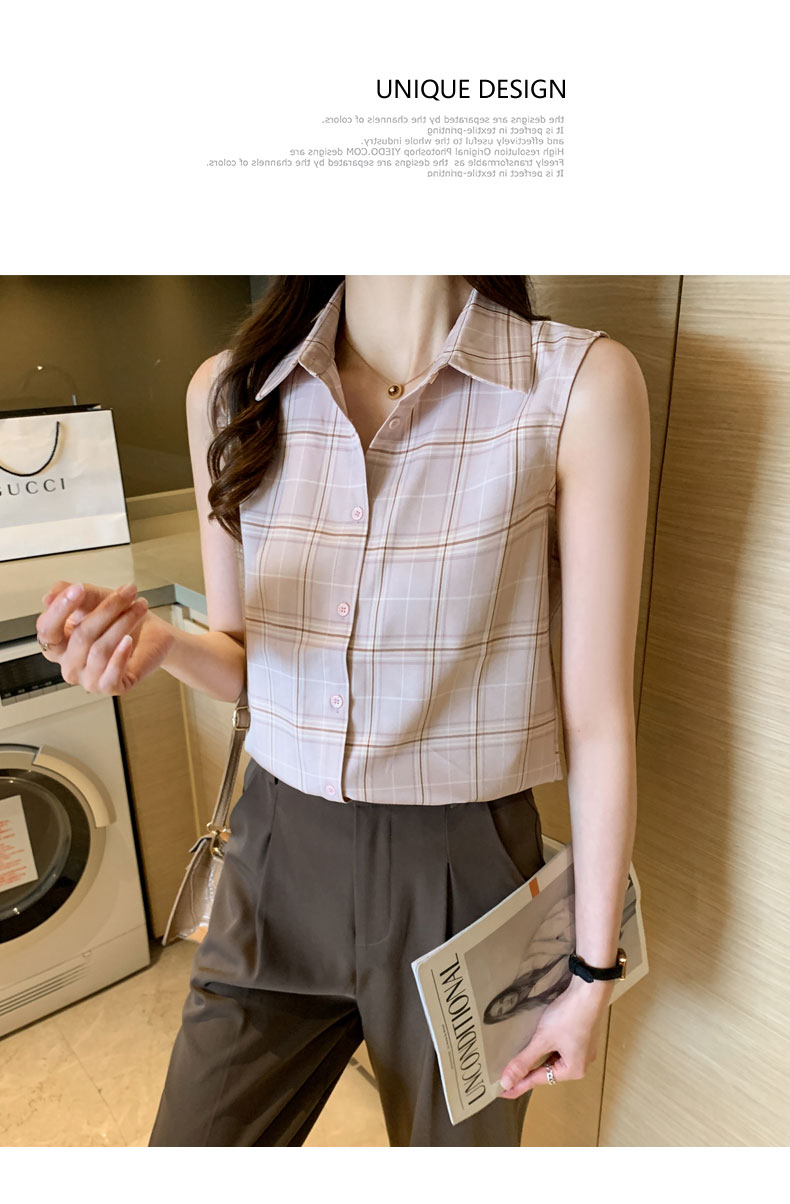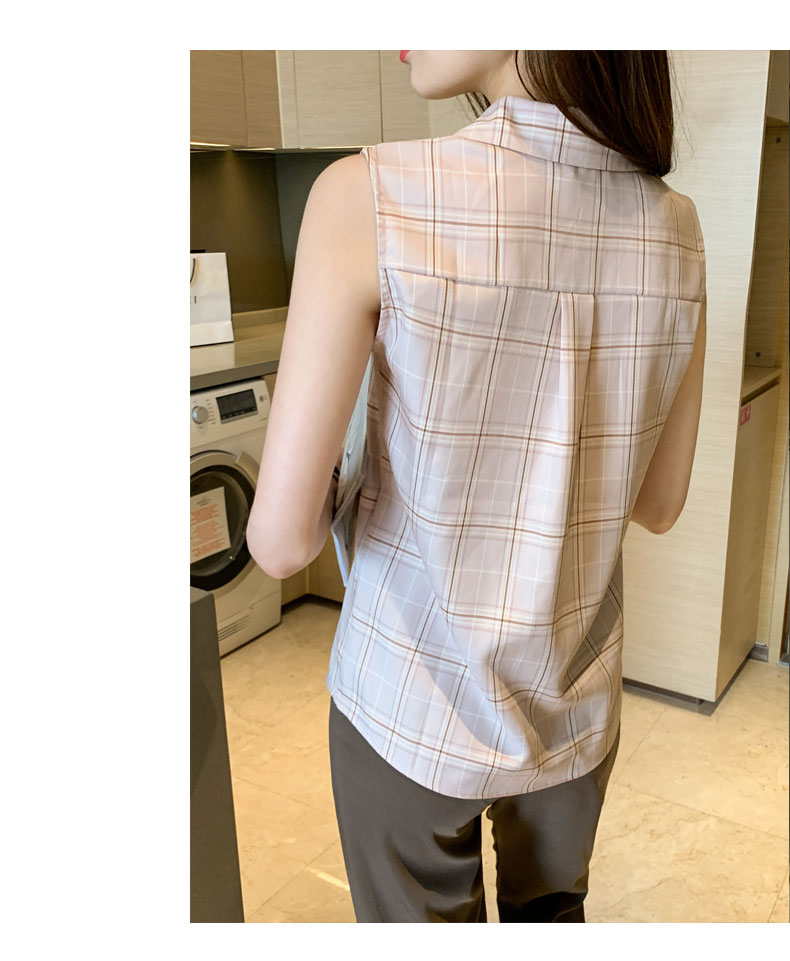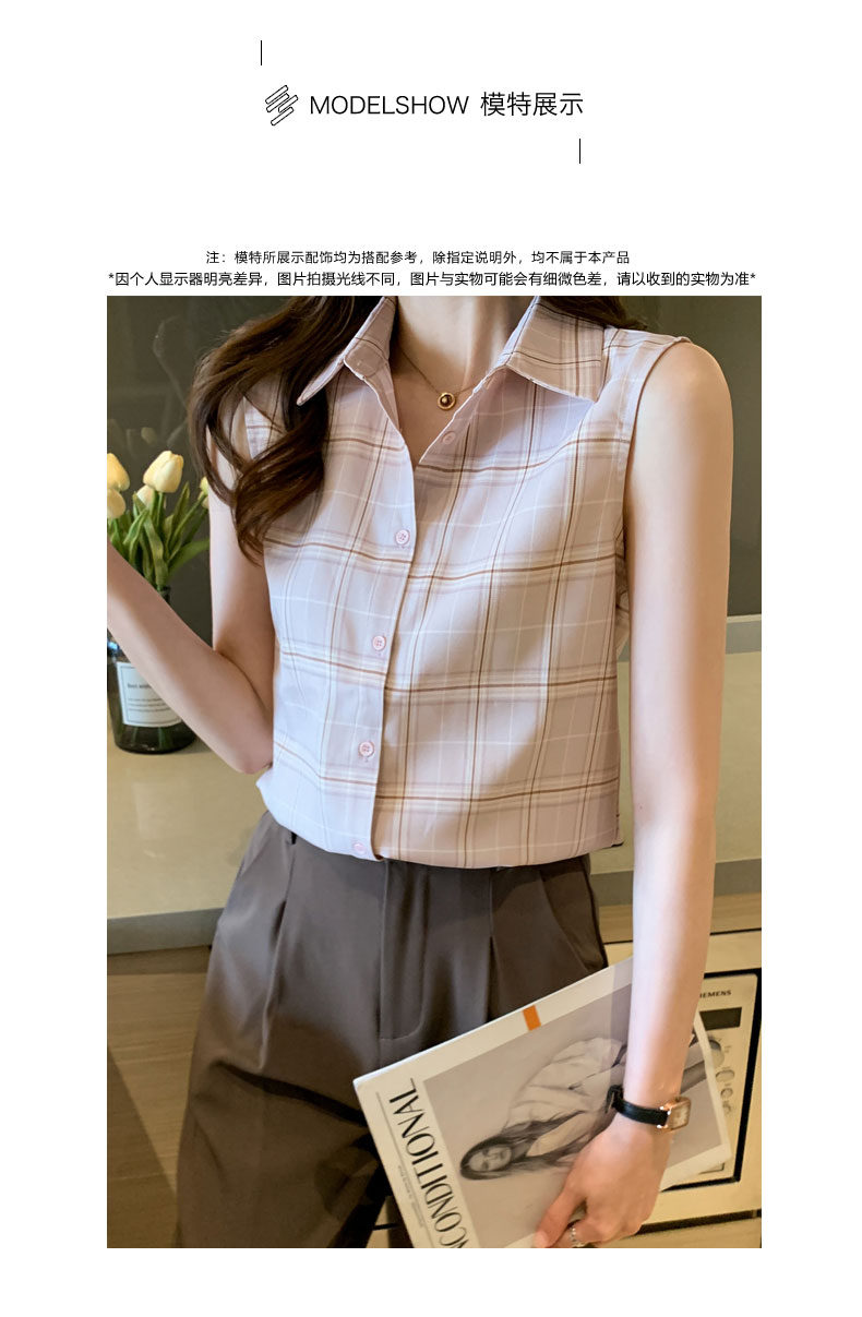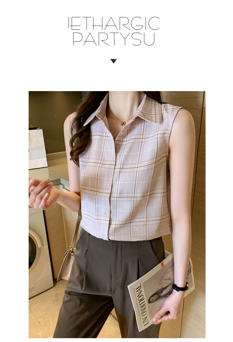 RM18817#洋气夏季格子坎肩背心女外穿衬衫无袖雪纺打底衫内搭上衣