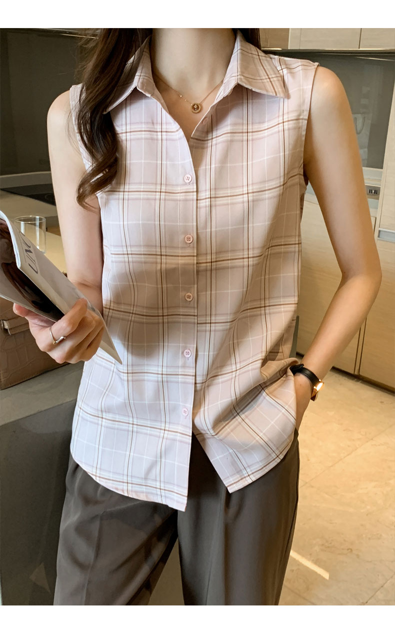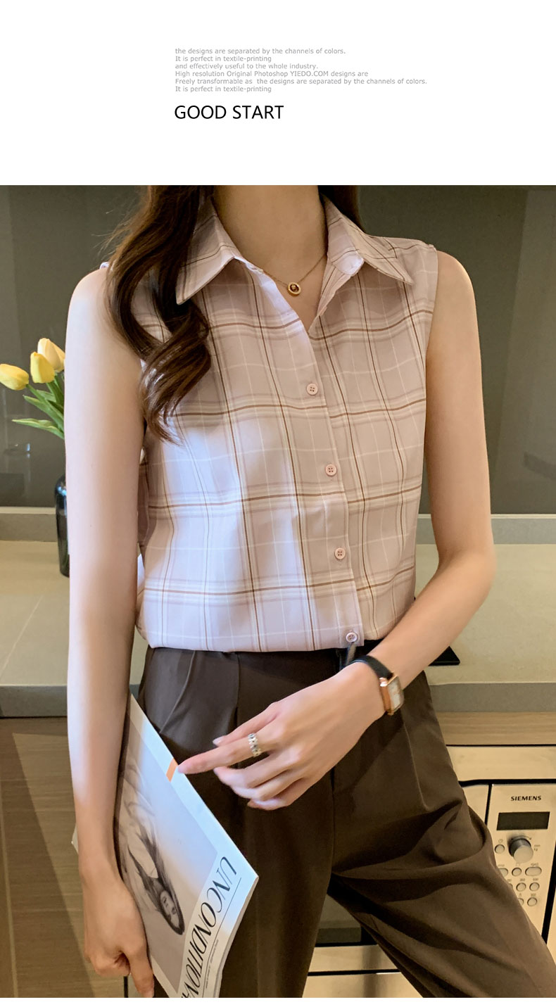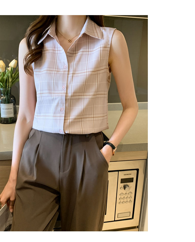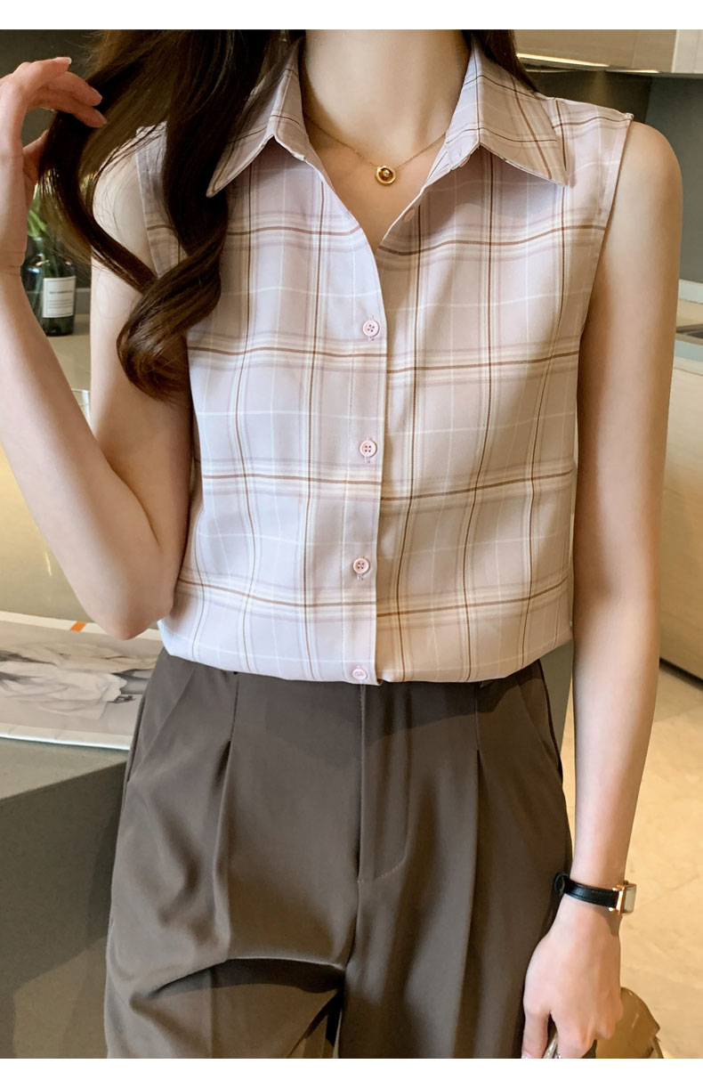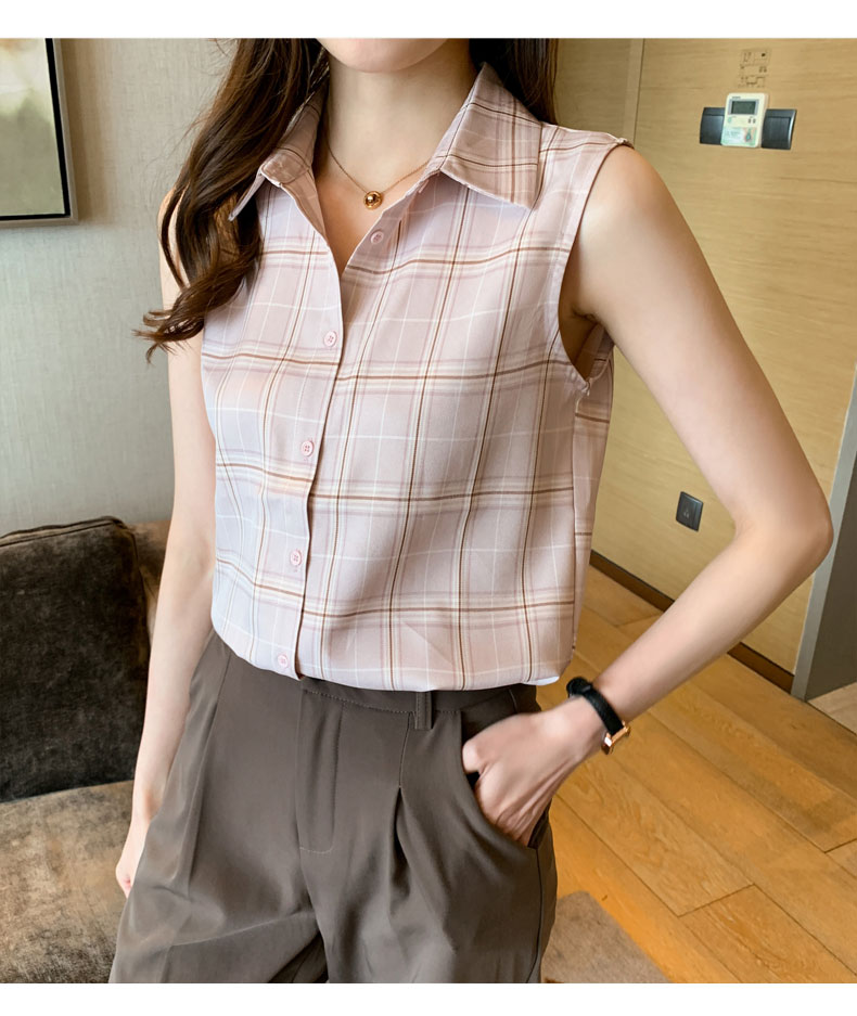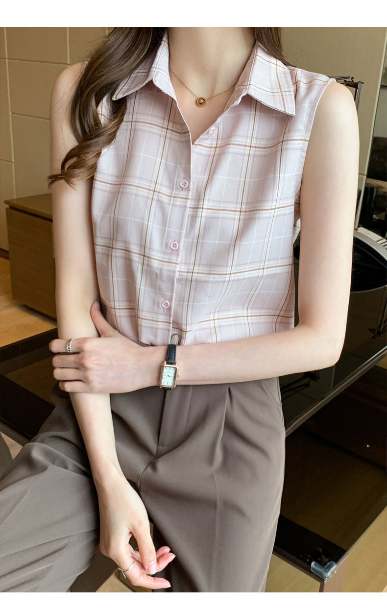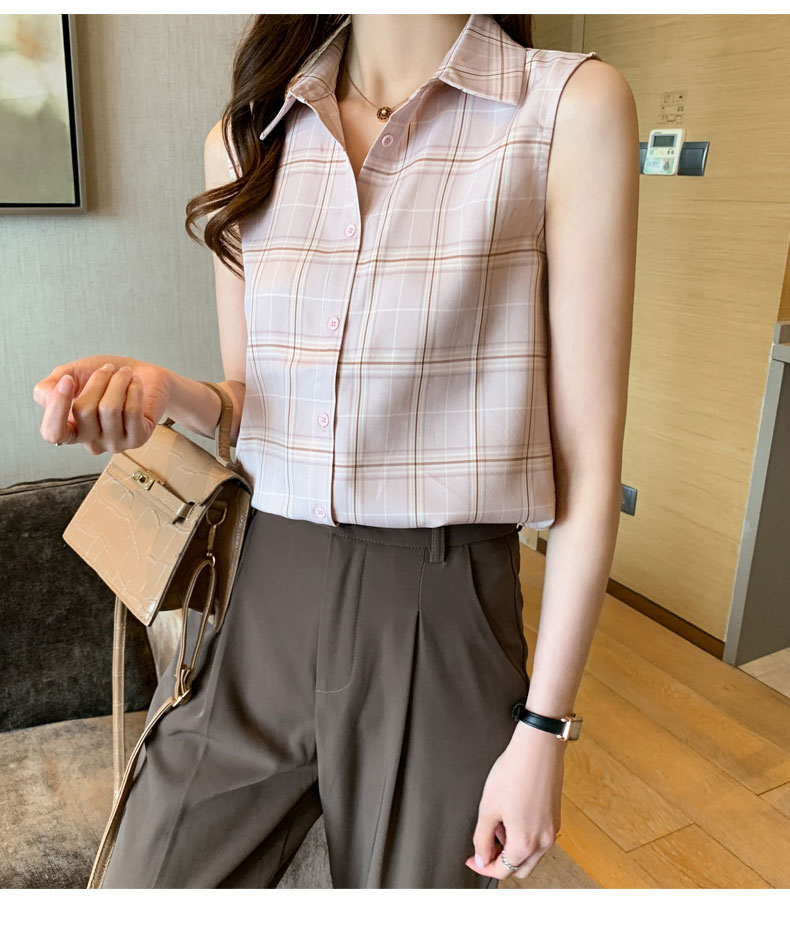 RM18817#洋气夏季格子坎肩背心女外穿衬衫无袖雪纺打底衫内搭上衣