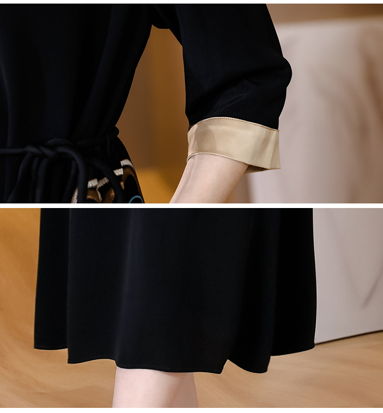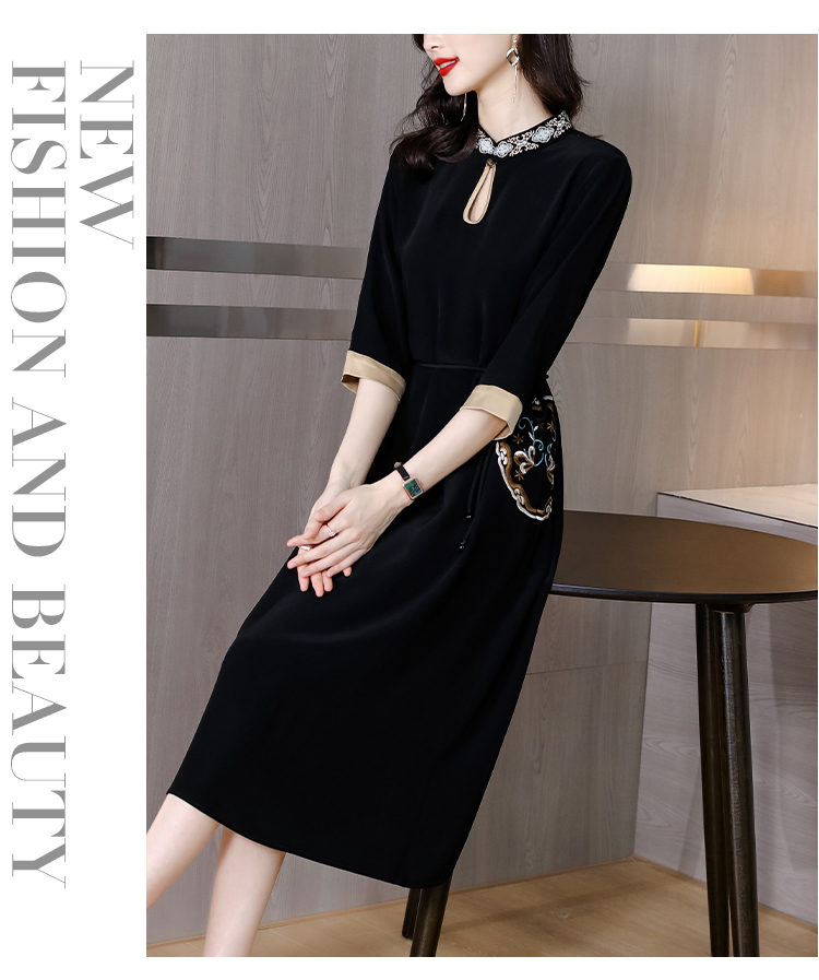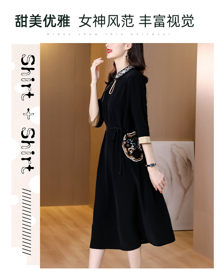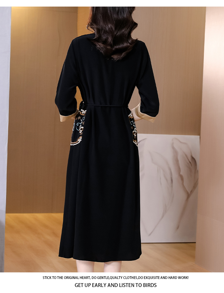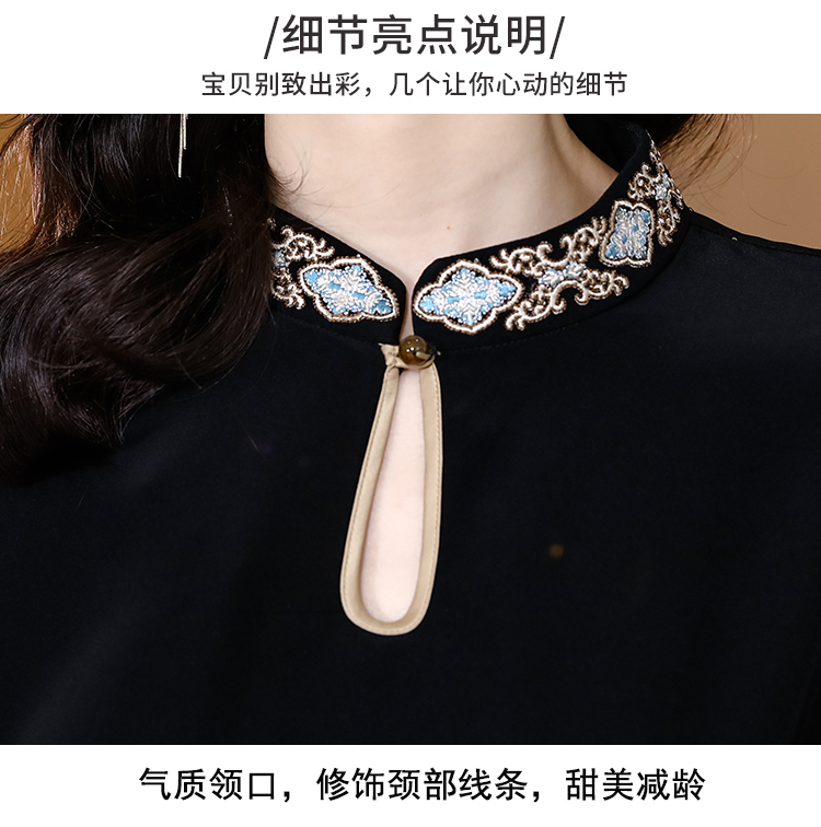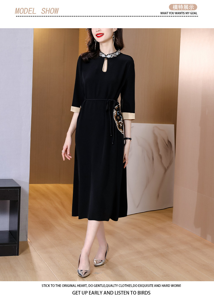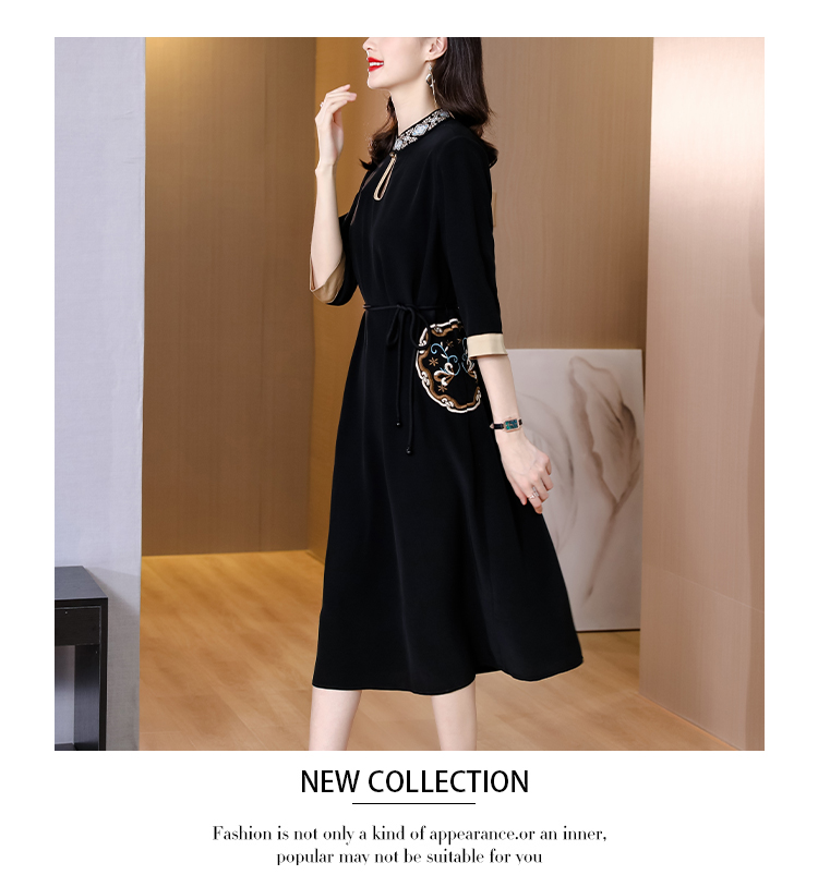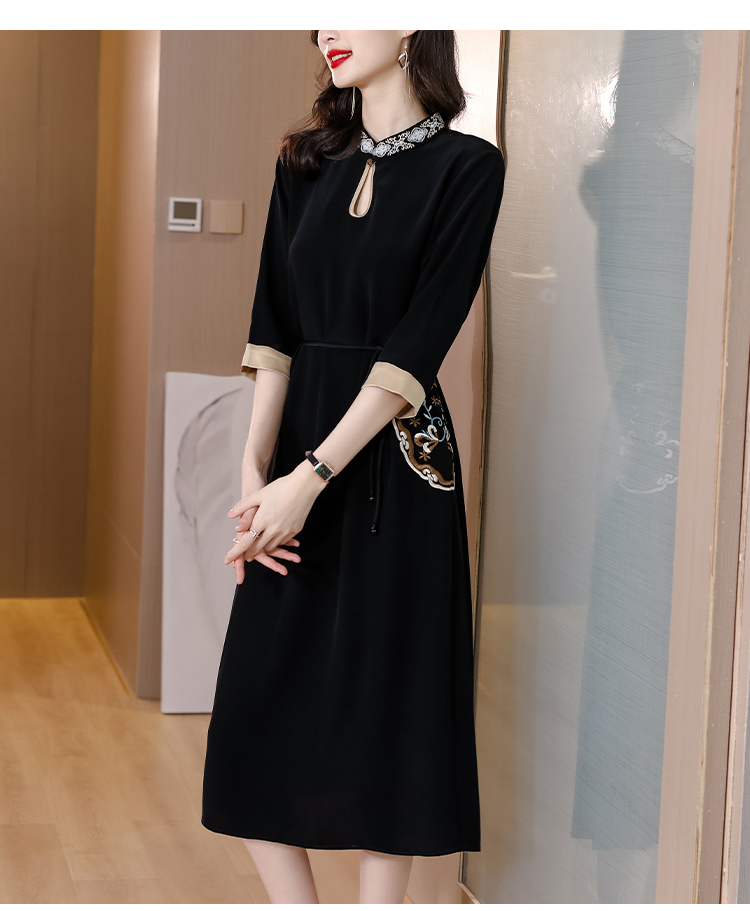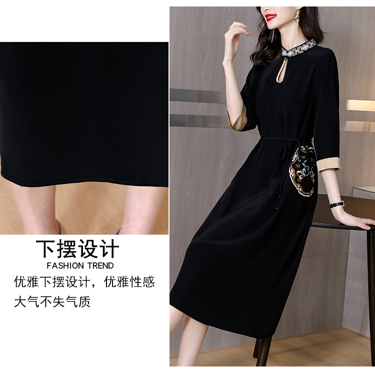 RM19056#新款港味复古chic裙子中国风刺绣黑色收腰显瘦连衣裙女