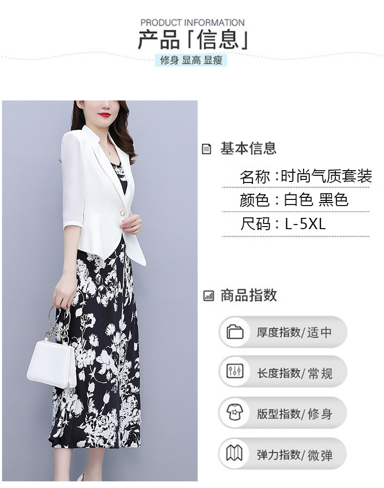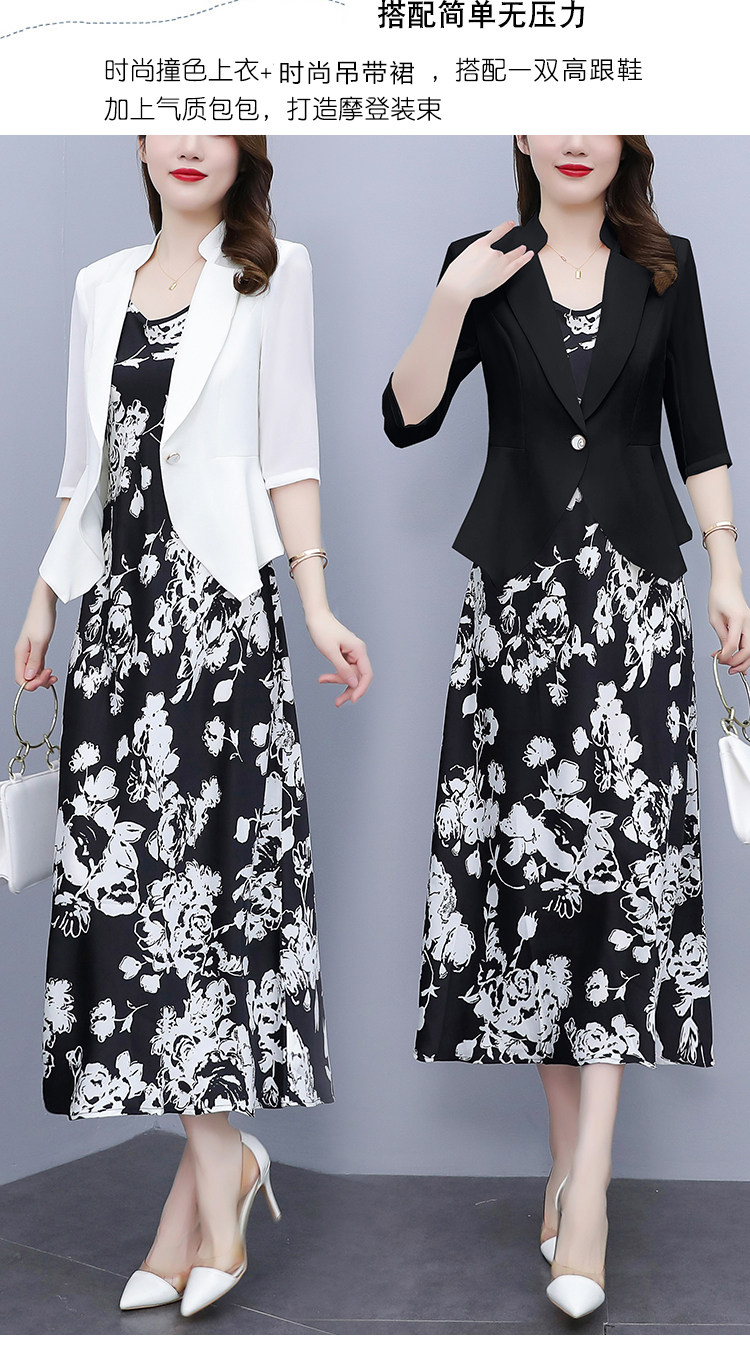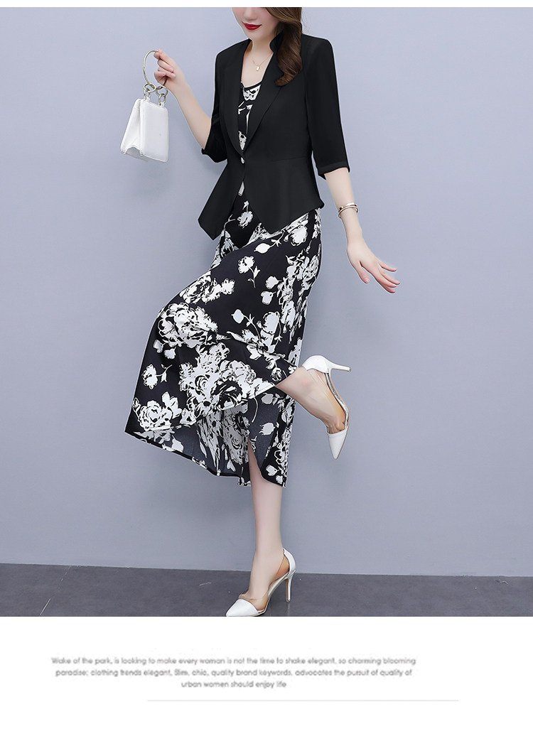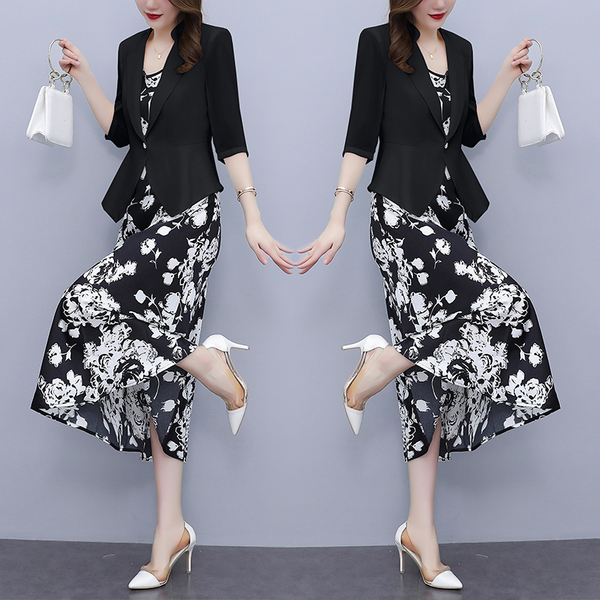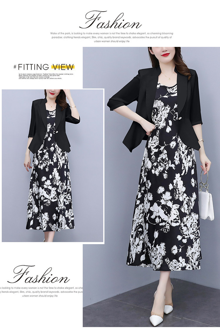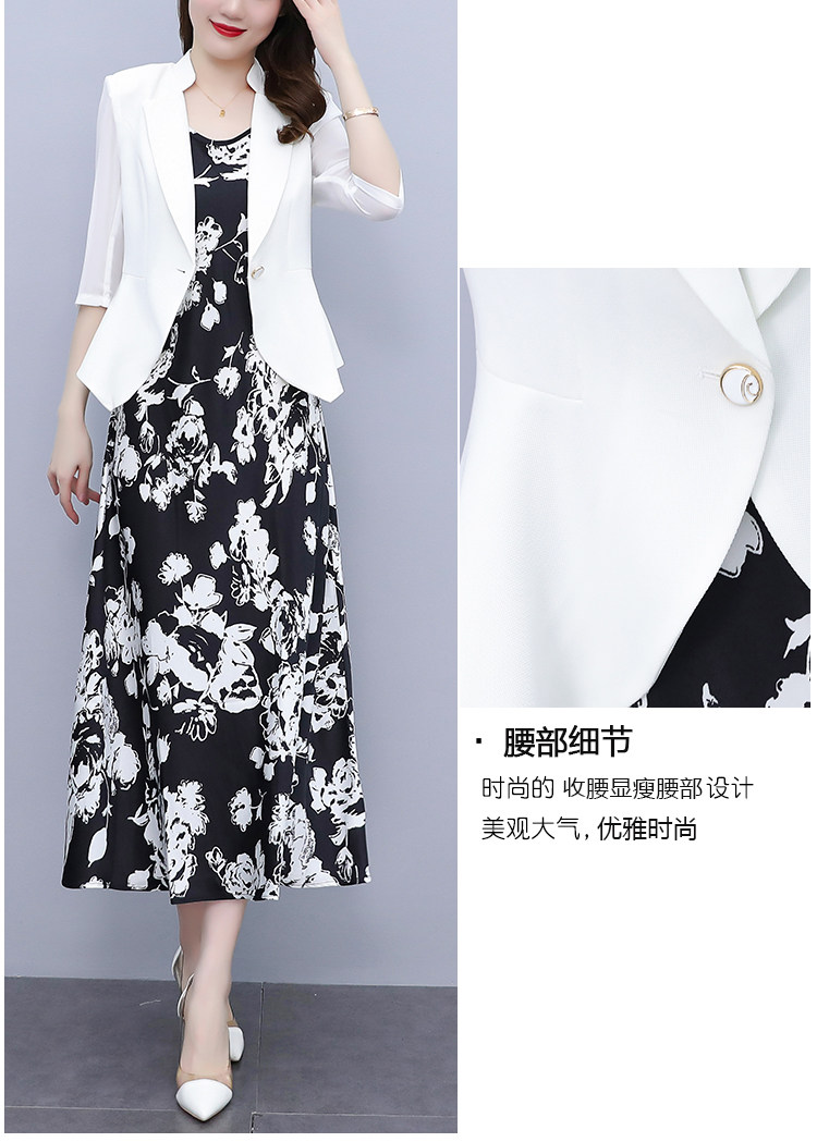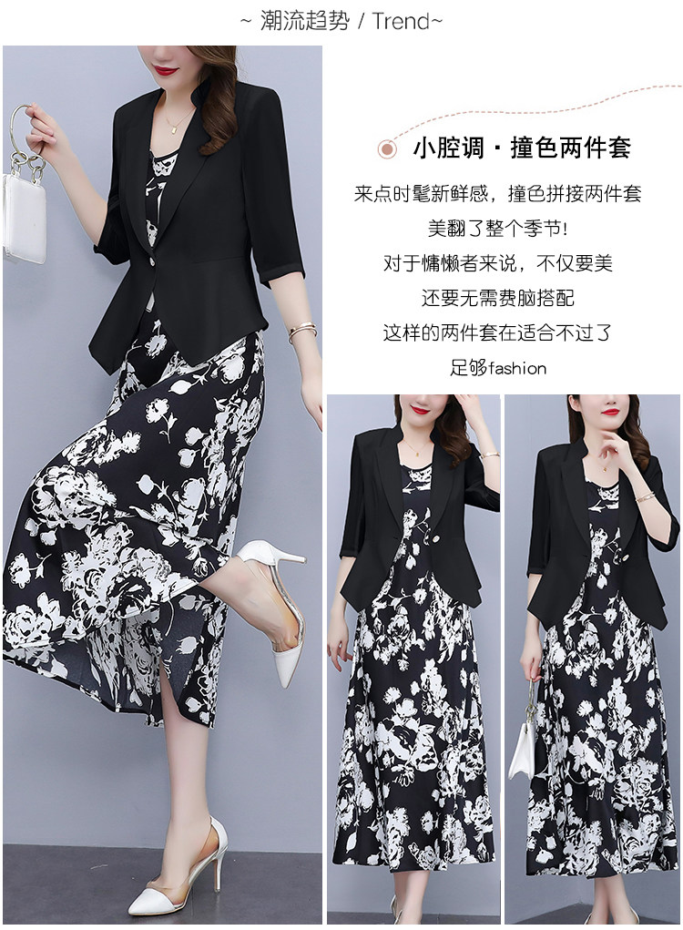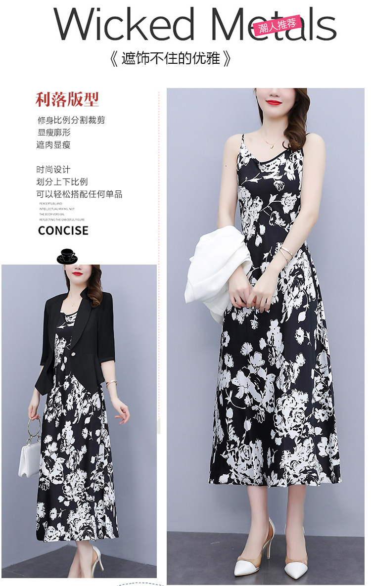 RM19101#胖mm时尚小西服套装2023年秋季大码女装新款碎花无袖宽松吊带裙潮