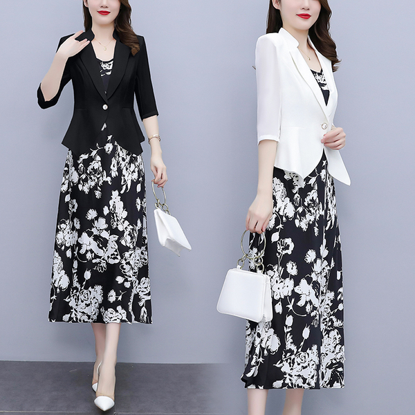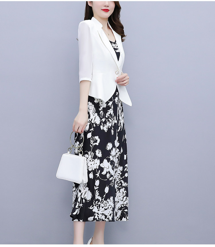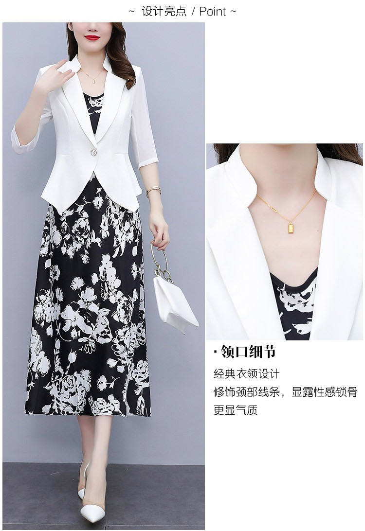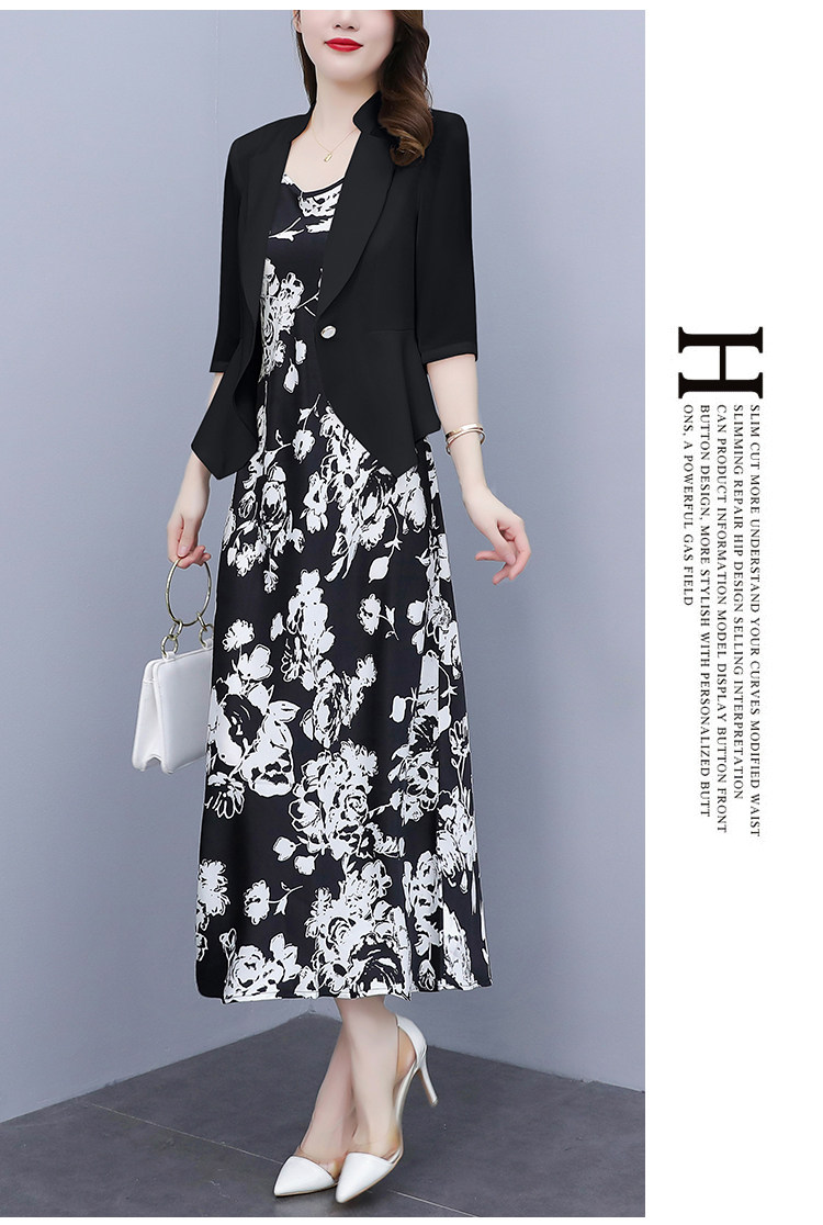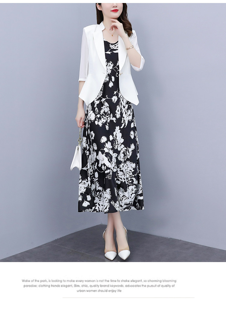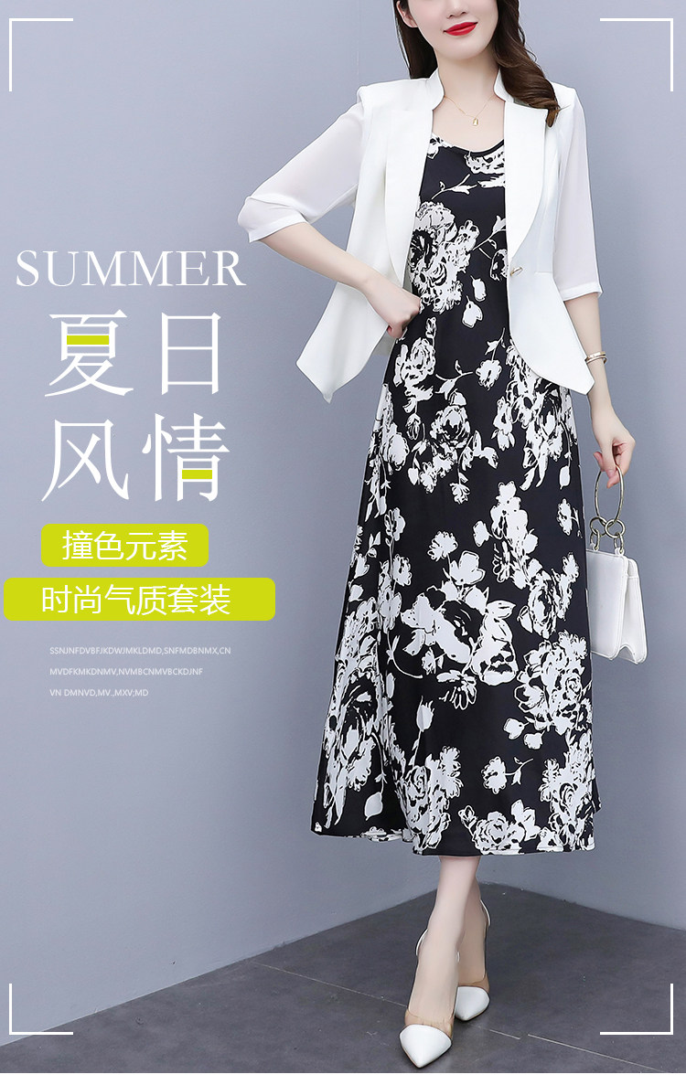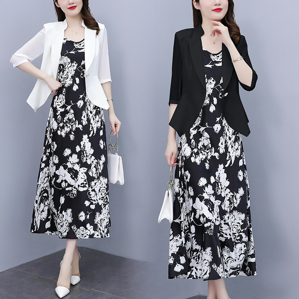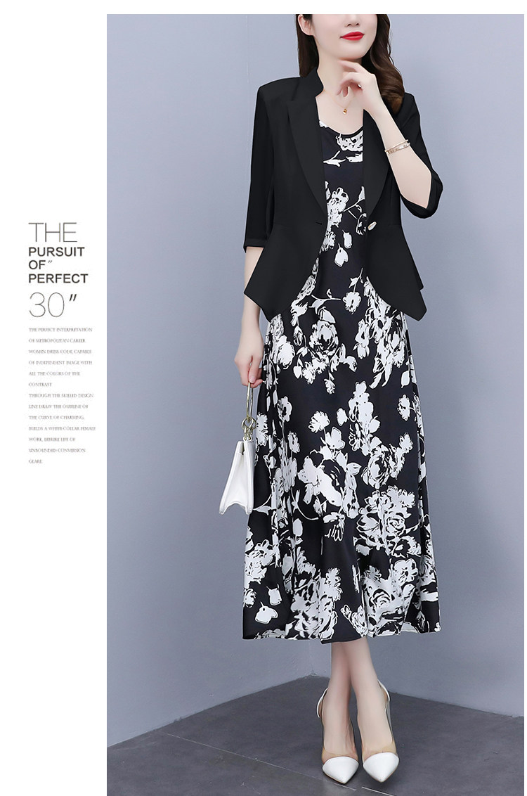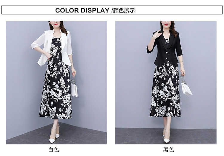 RM19101#胖mm时尚小西服套装2023年秋季大码女装新款碎花无袖宽松吊带裙潮
