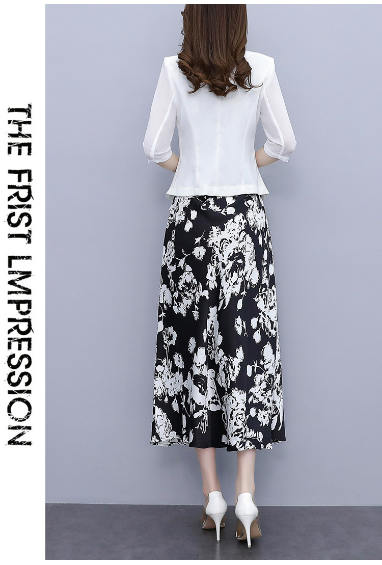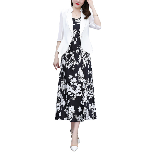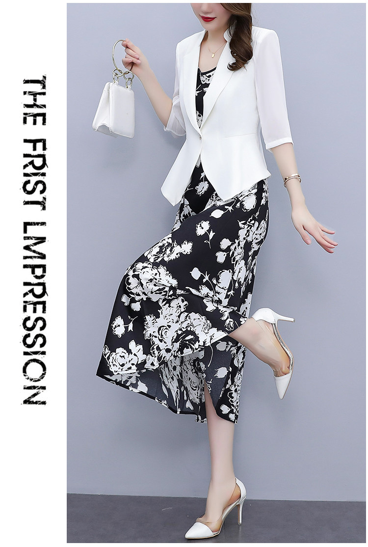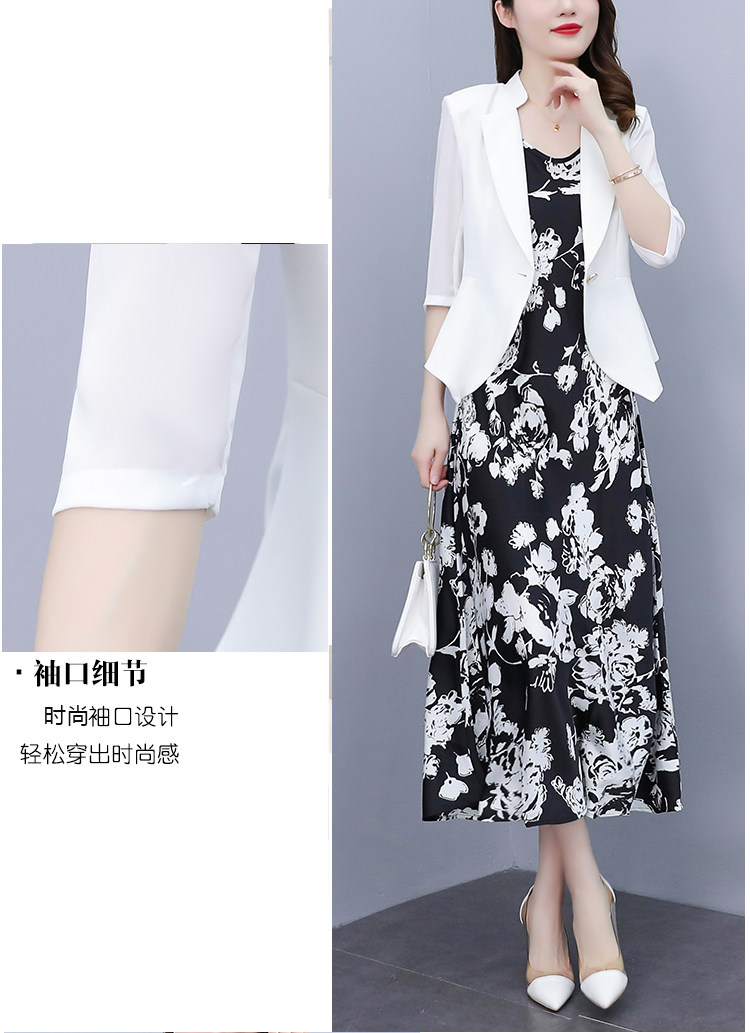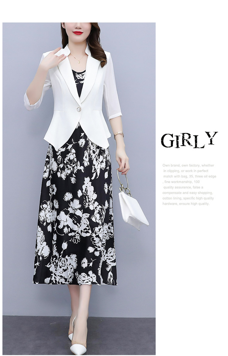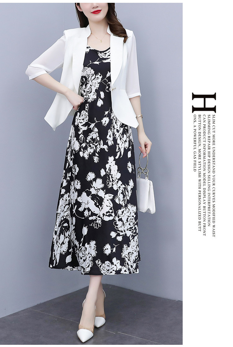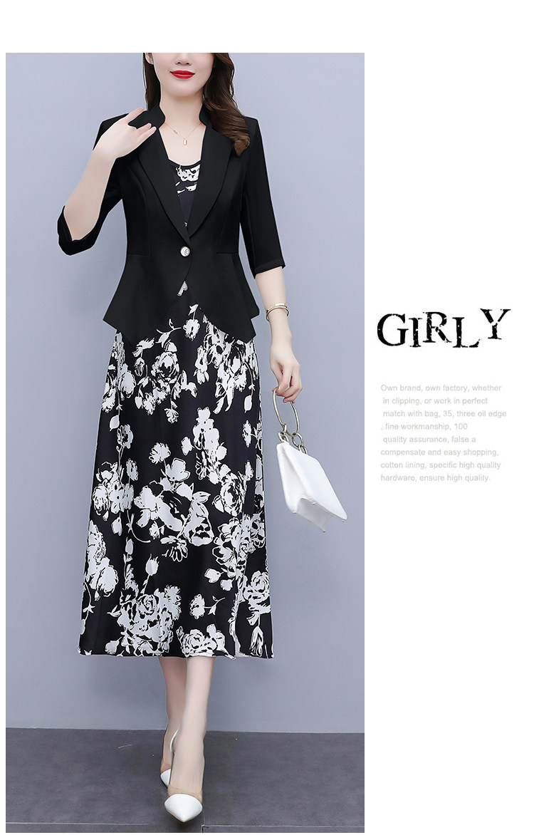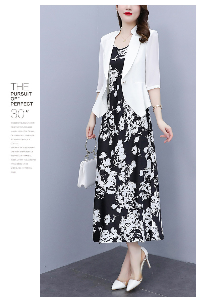 RM19101#胖mm时尚小西服套装2023年秋季大码女装新款碎花无袖宽松吊带裙潮
