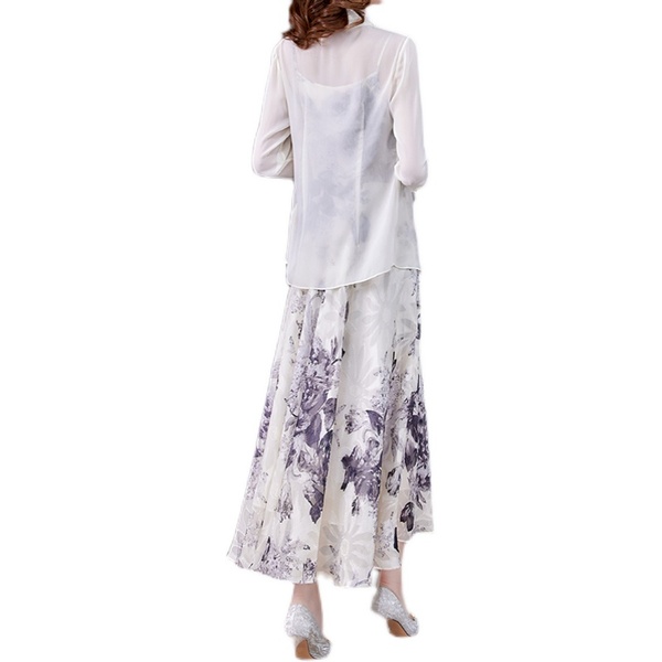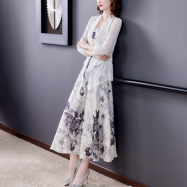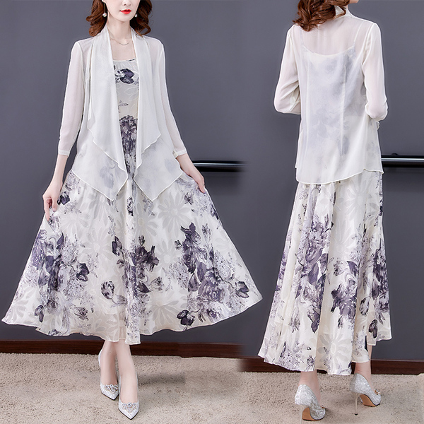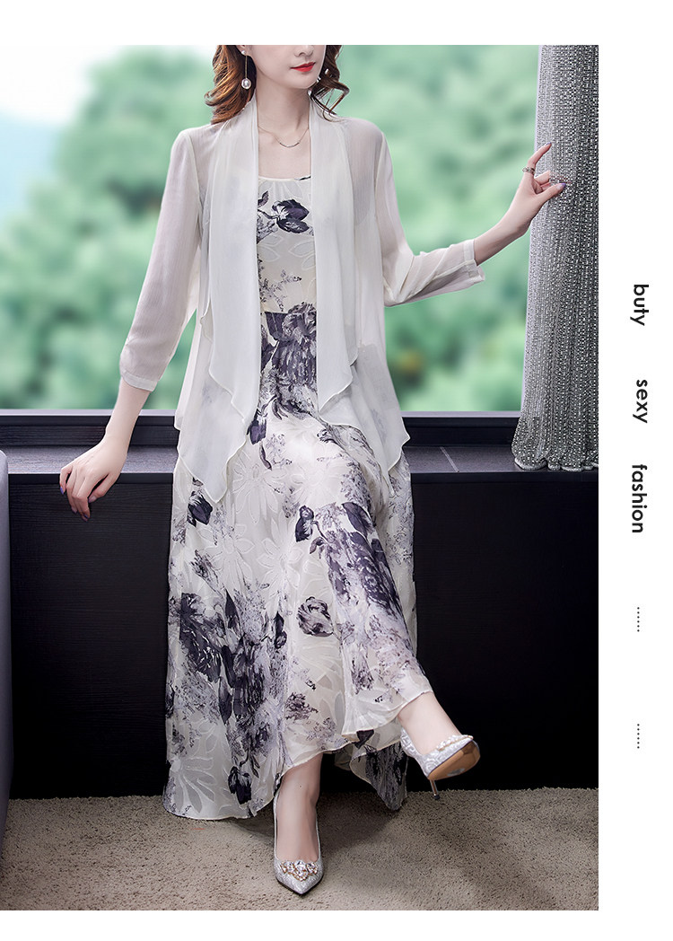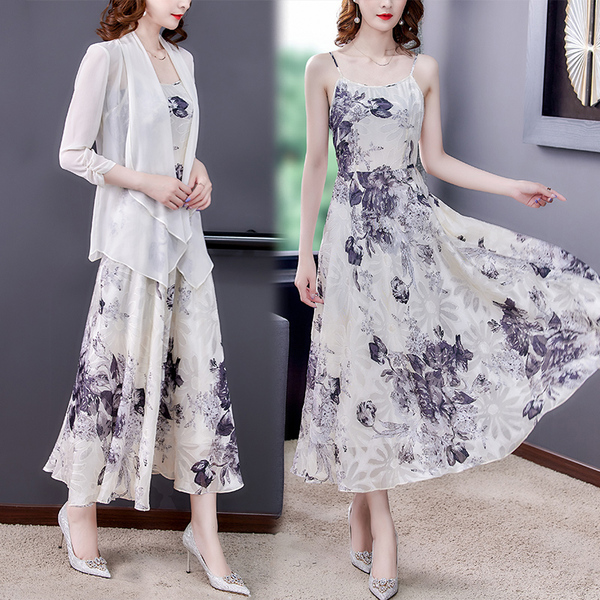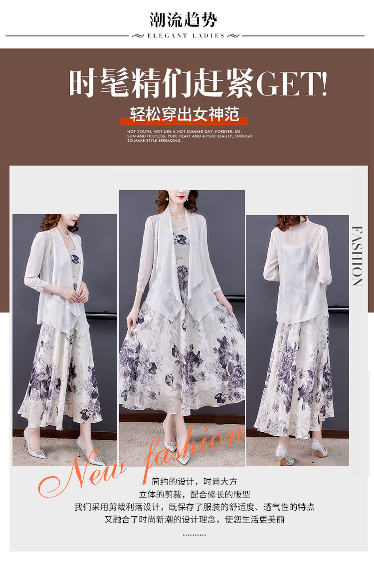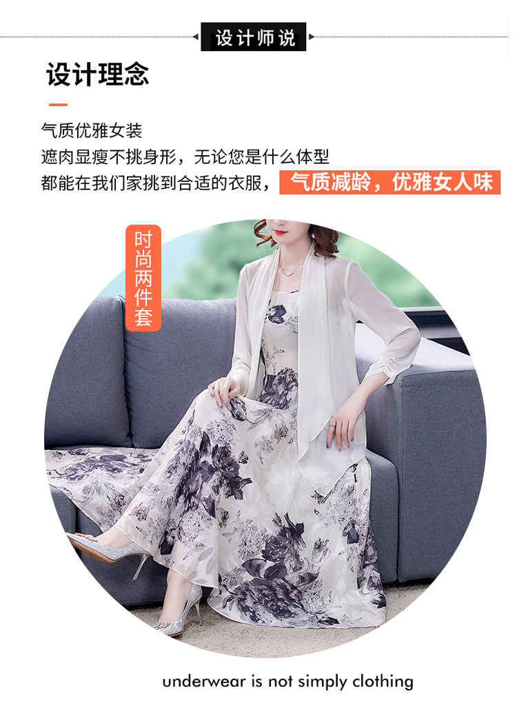 RM19140#雪纺裙子时尚两件套圆领套装裙网纱女士修身连衣裙2023夏季新款