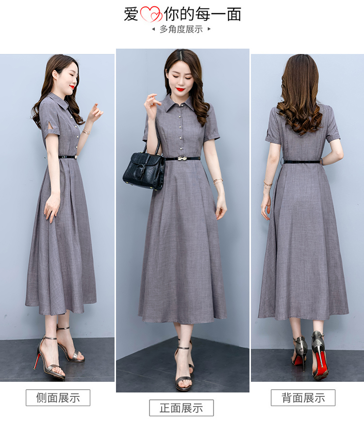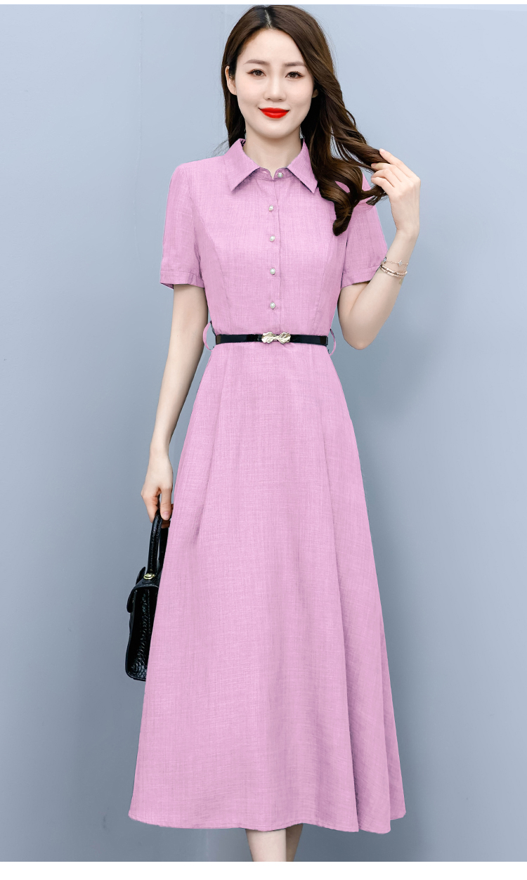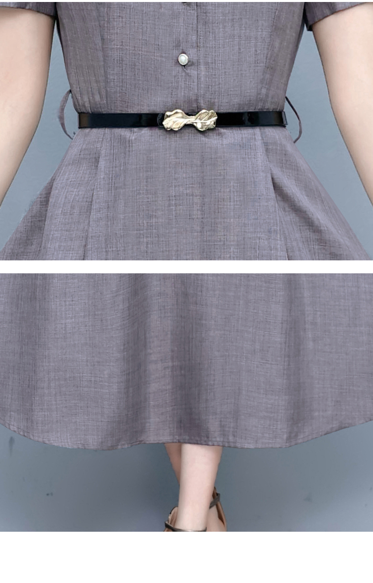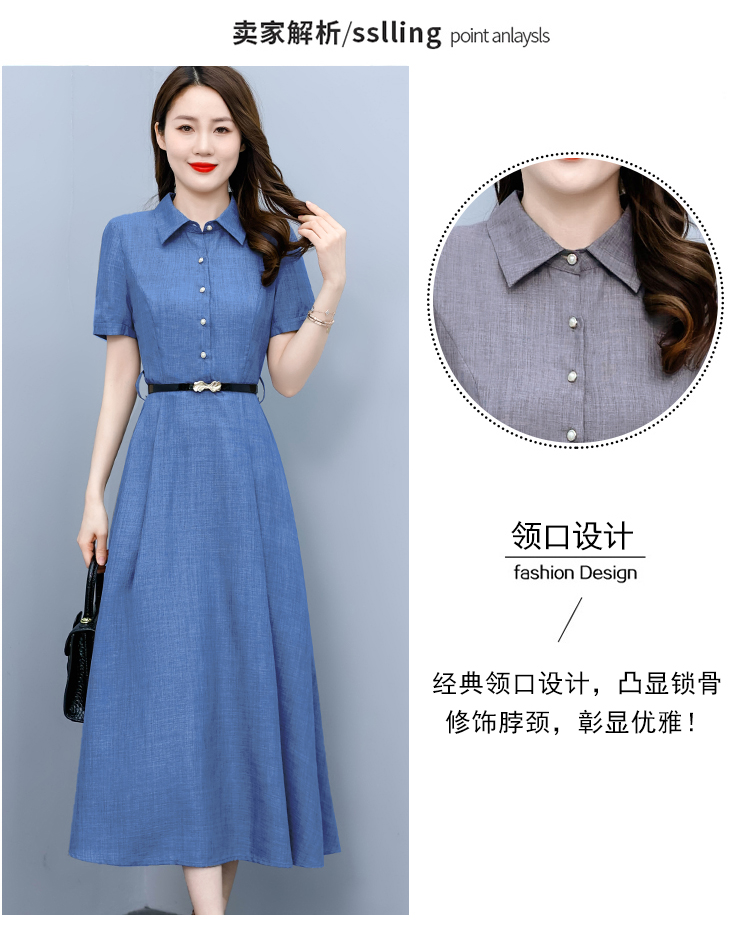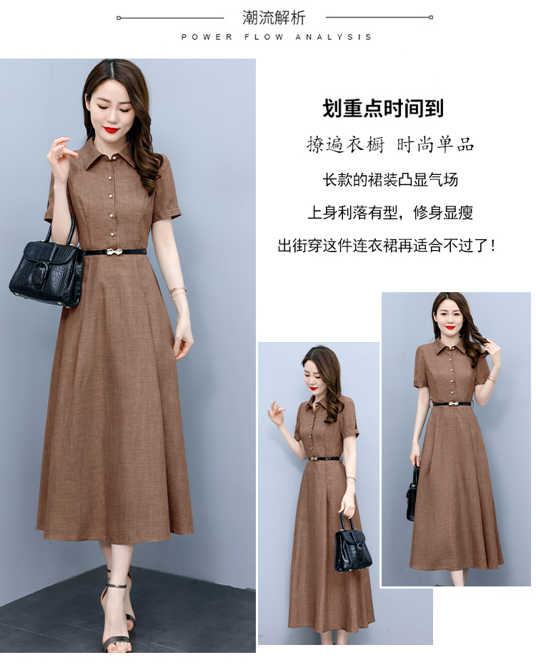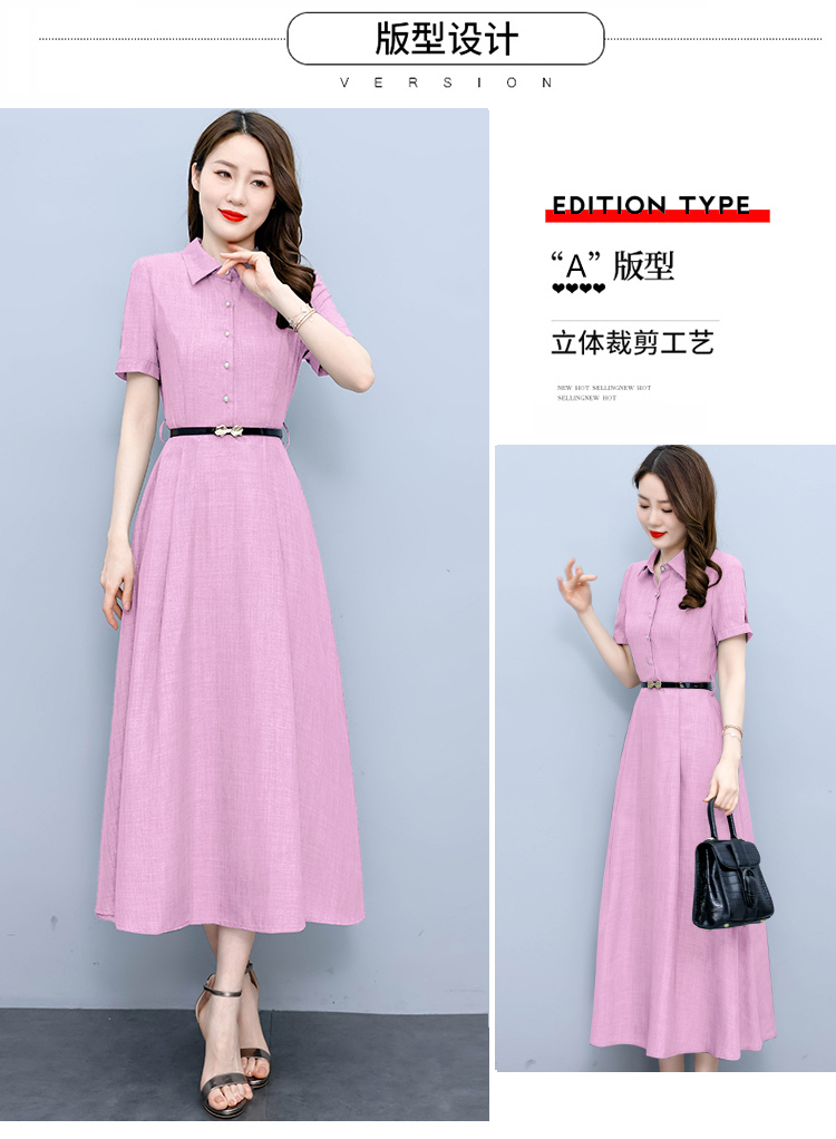 RM19150#短袖棉麻连衣裙气质显瘦2023夏季洋气遮肚亚麻纯色女装