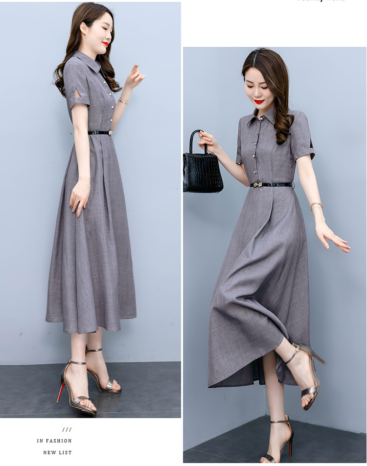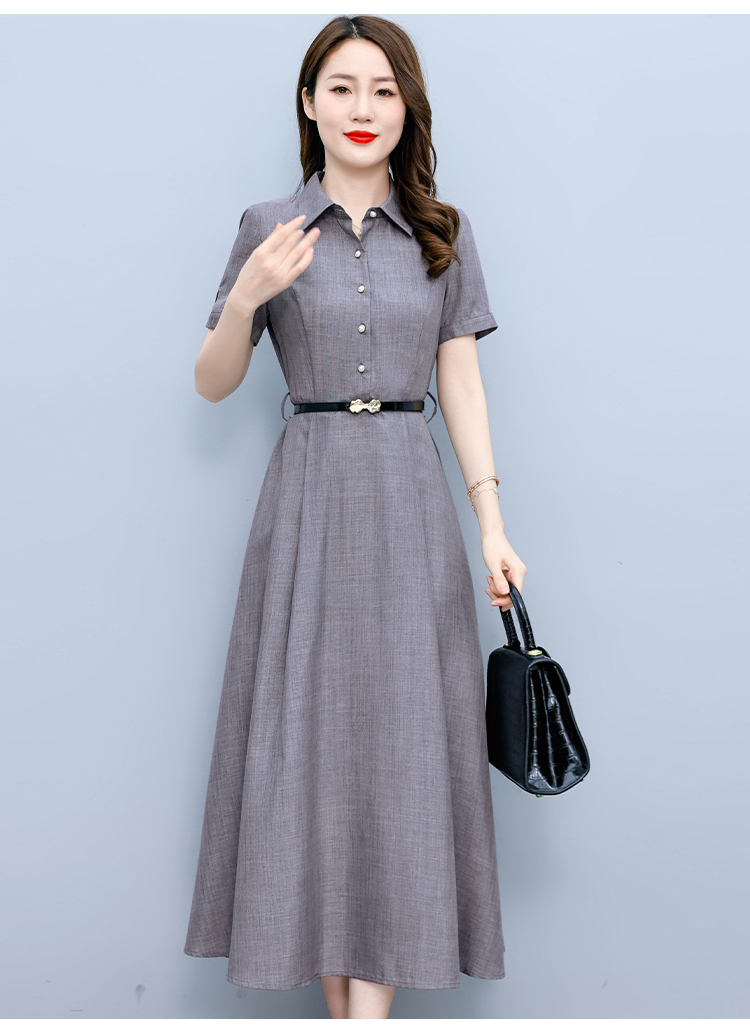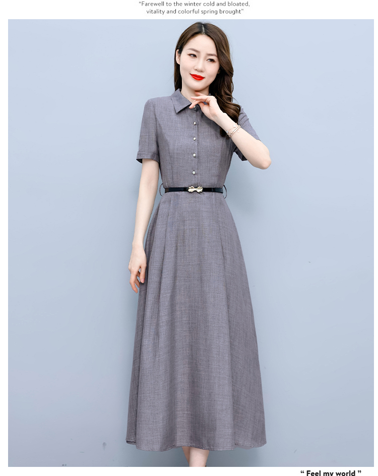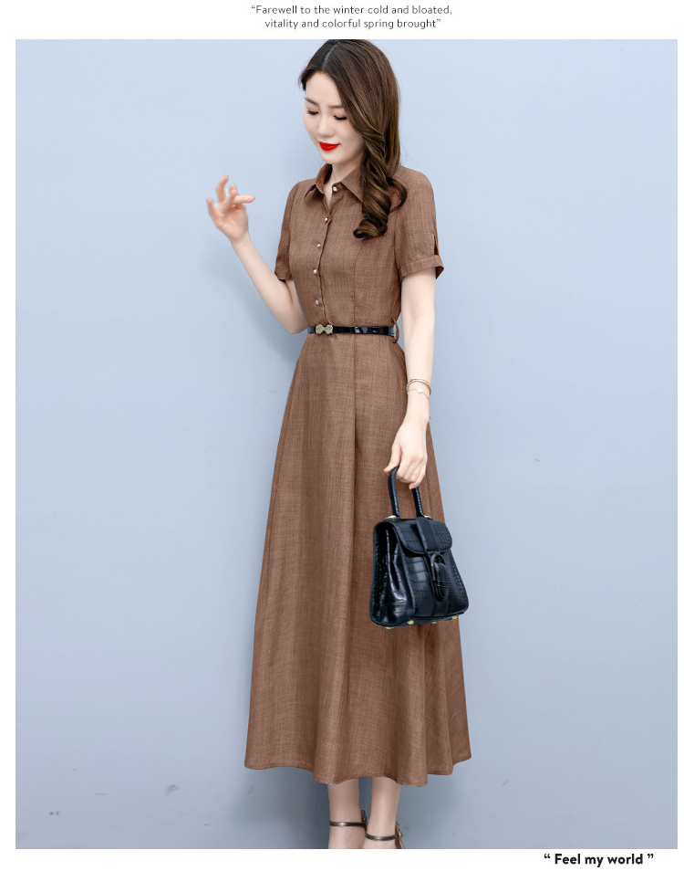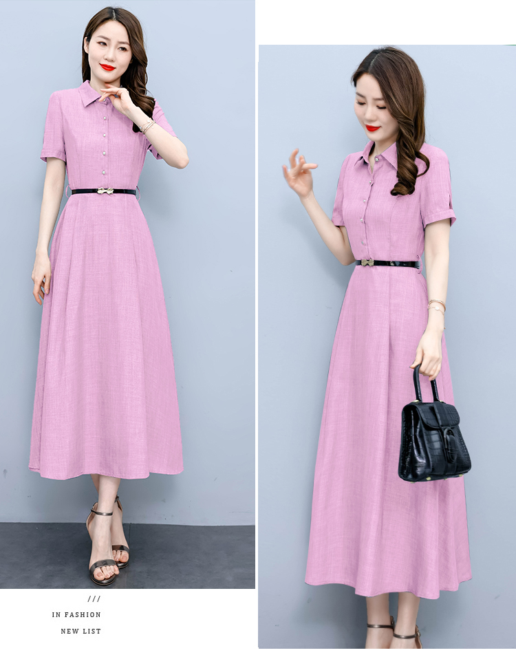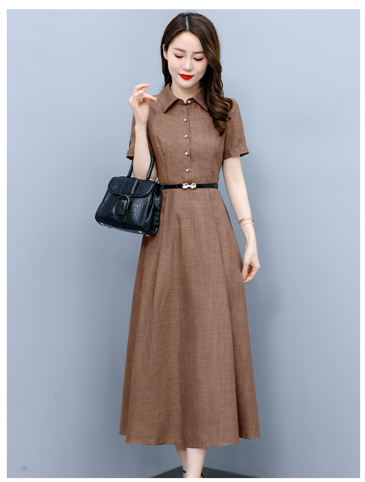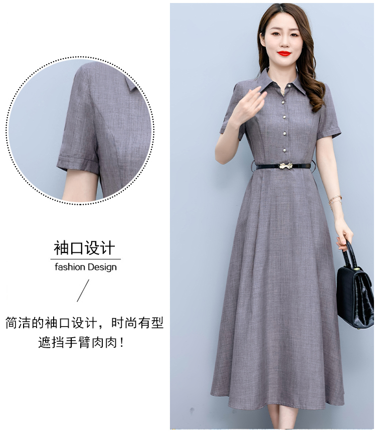 RM19150#短袖棉麻连衣裙气质显瘦2023夏季洋气遮肚亚麻纯色女装