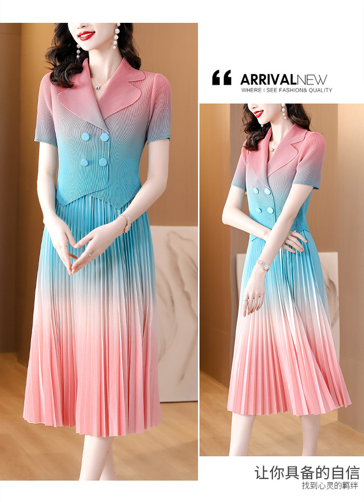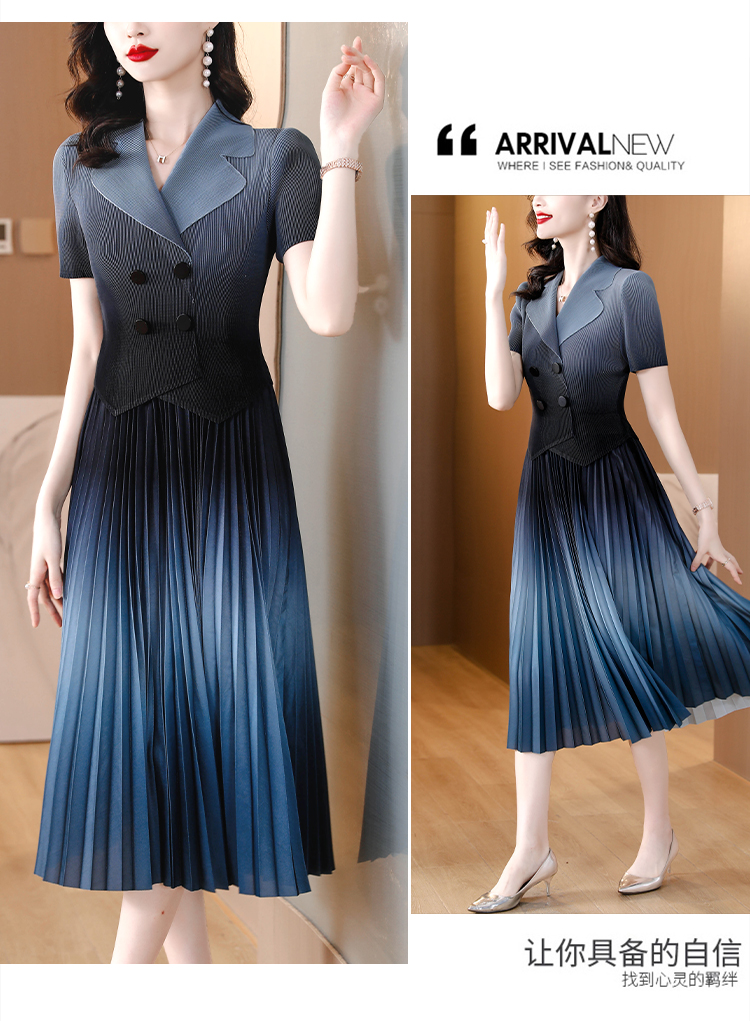 RM19159#夏季款高贵气质女士高端气质假两件西装领长裙