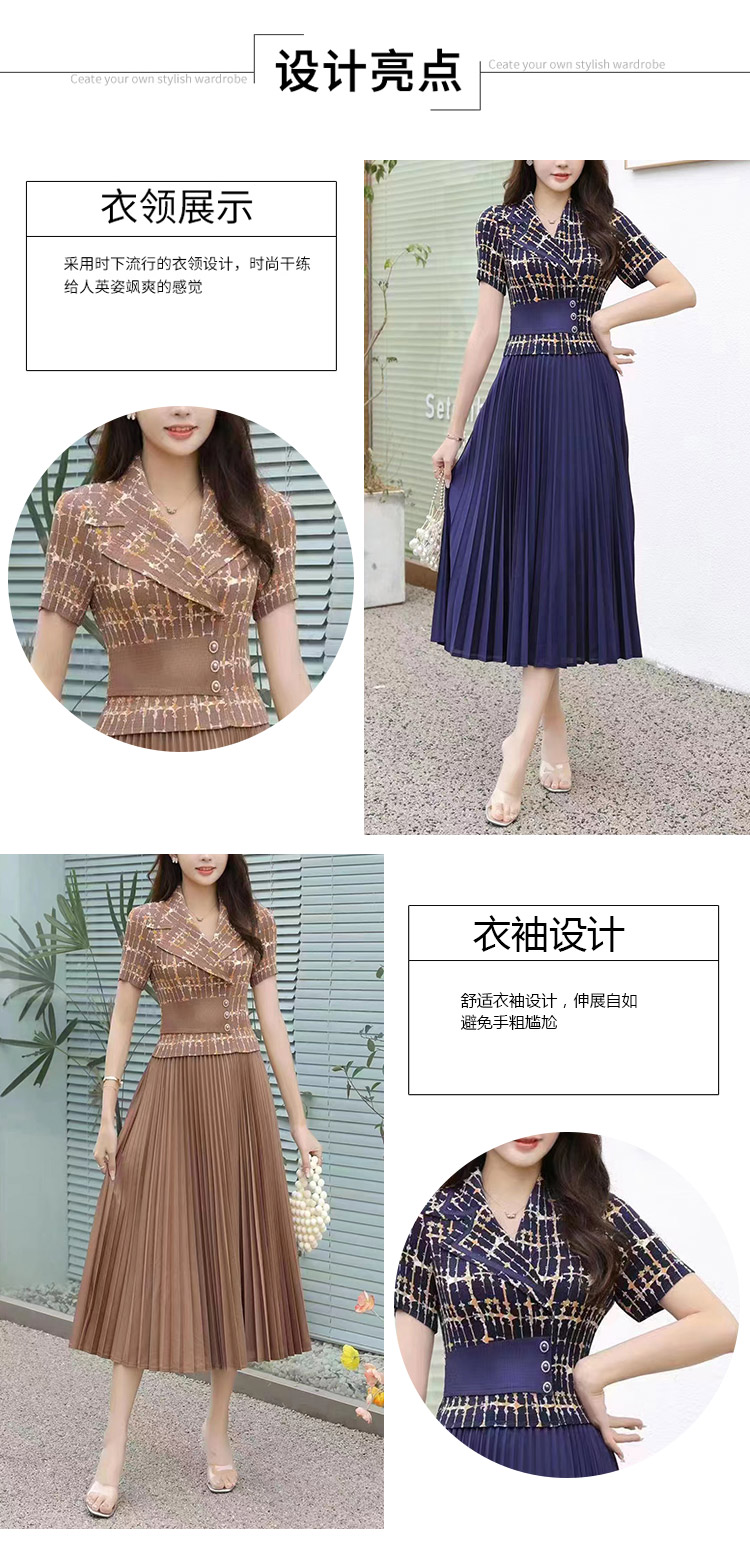 RM19160#夏季新款时尚西装领拼接收腰显瘦中长款魔术裙