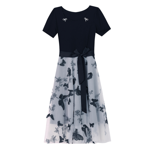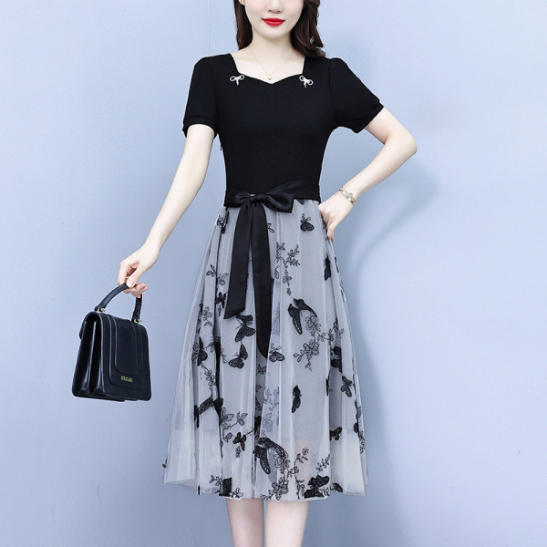 RM19170#网红炸街大码女装胖mm刺绣时尚洋气修身显瘦短袖连衣裙子夏季新款