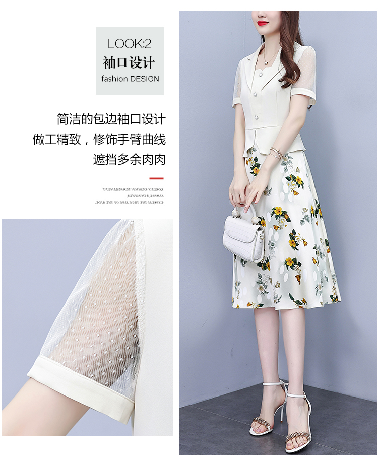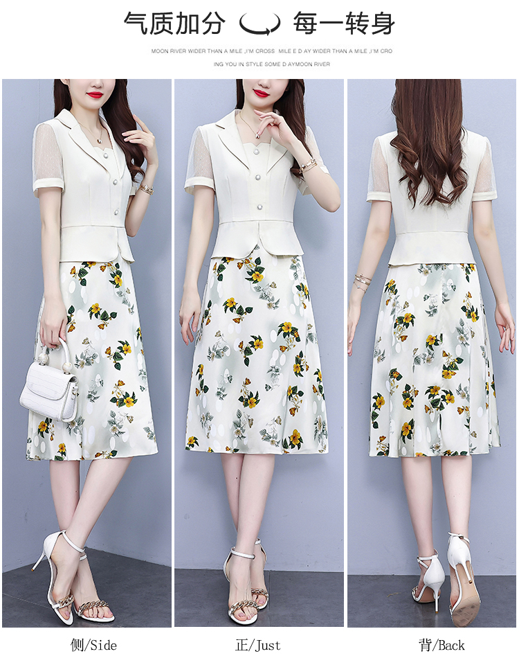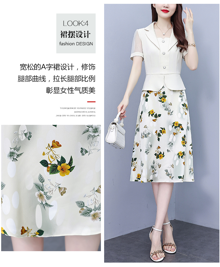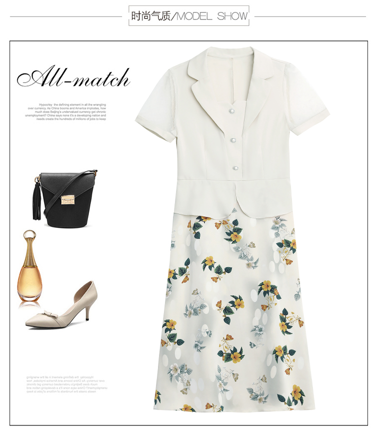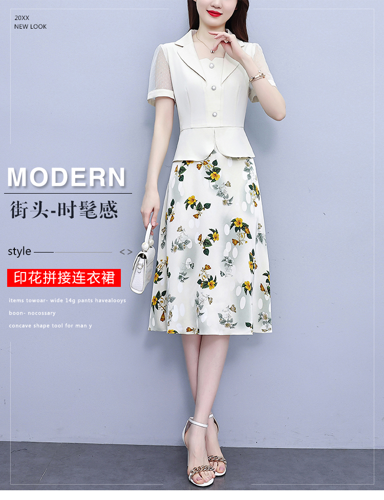 RM19174#假两件拼接时尚印花连衣裙女夏季新款潮流显瘦甜美方领名媛A字裙