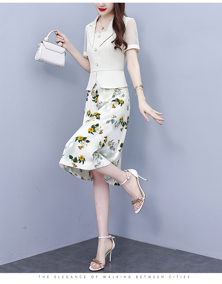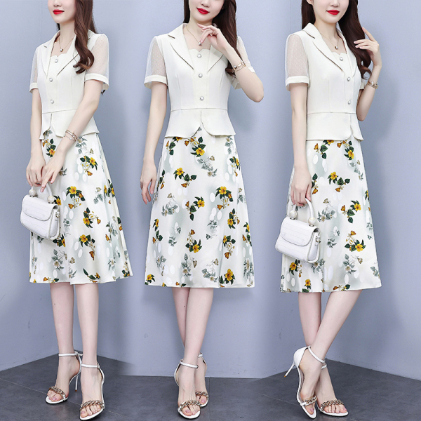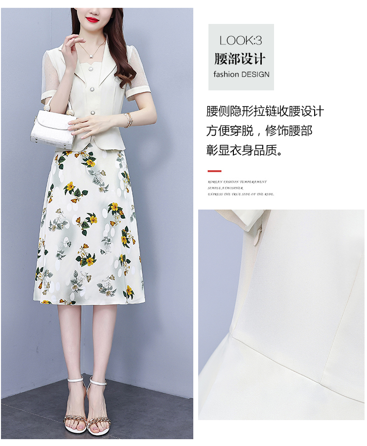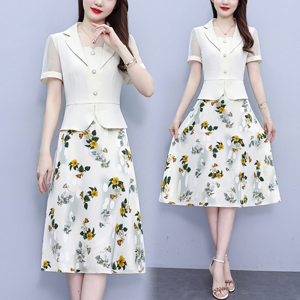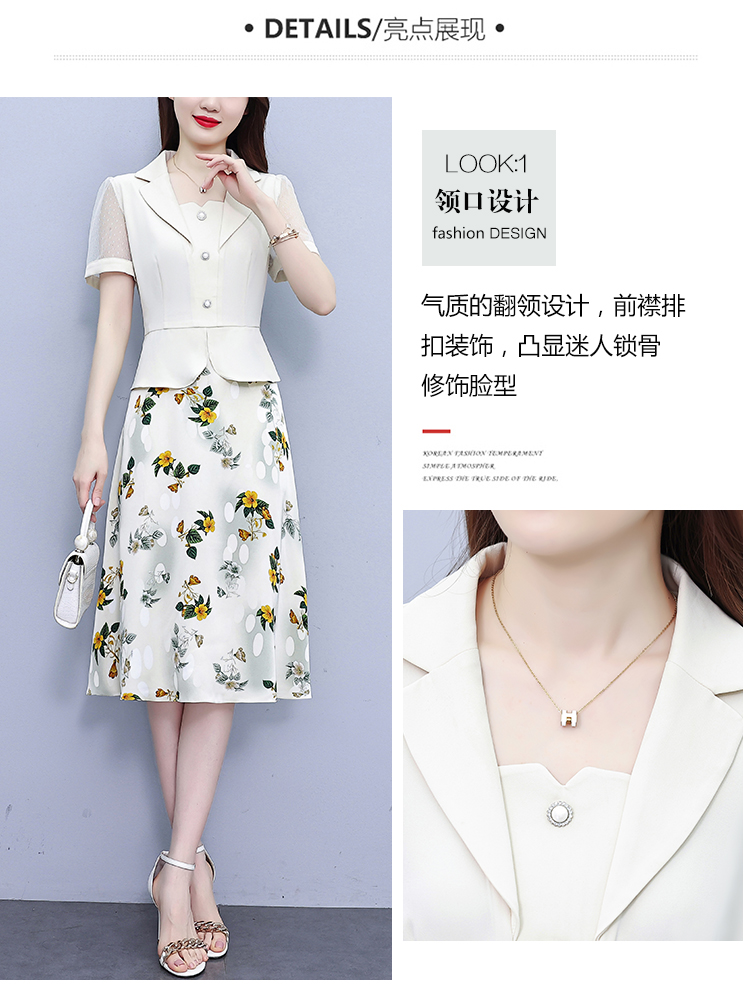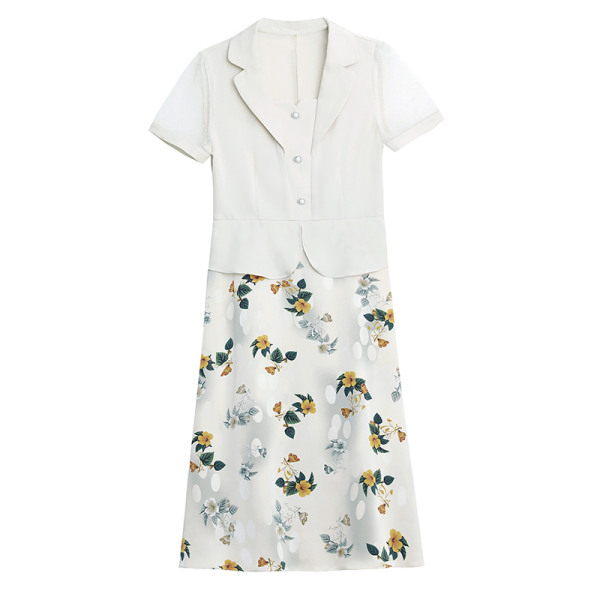 RM19174#假两件拼接时尚印花连衣裙女夏季新款潮流显瘦甜美方领名媛A字裙