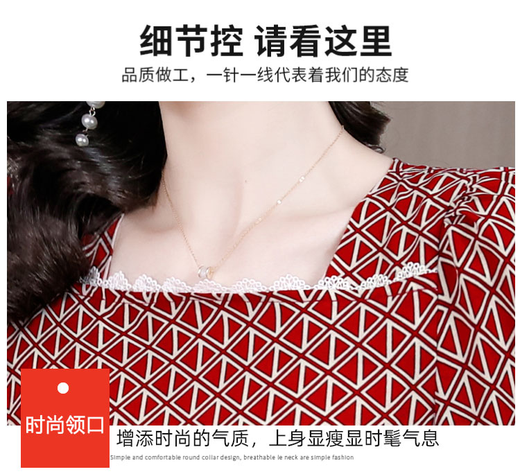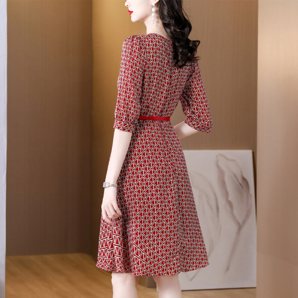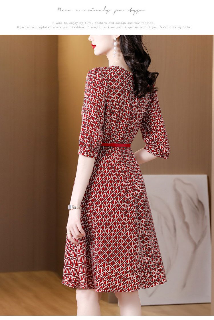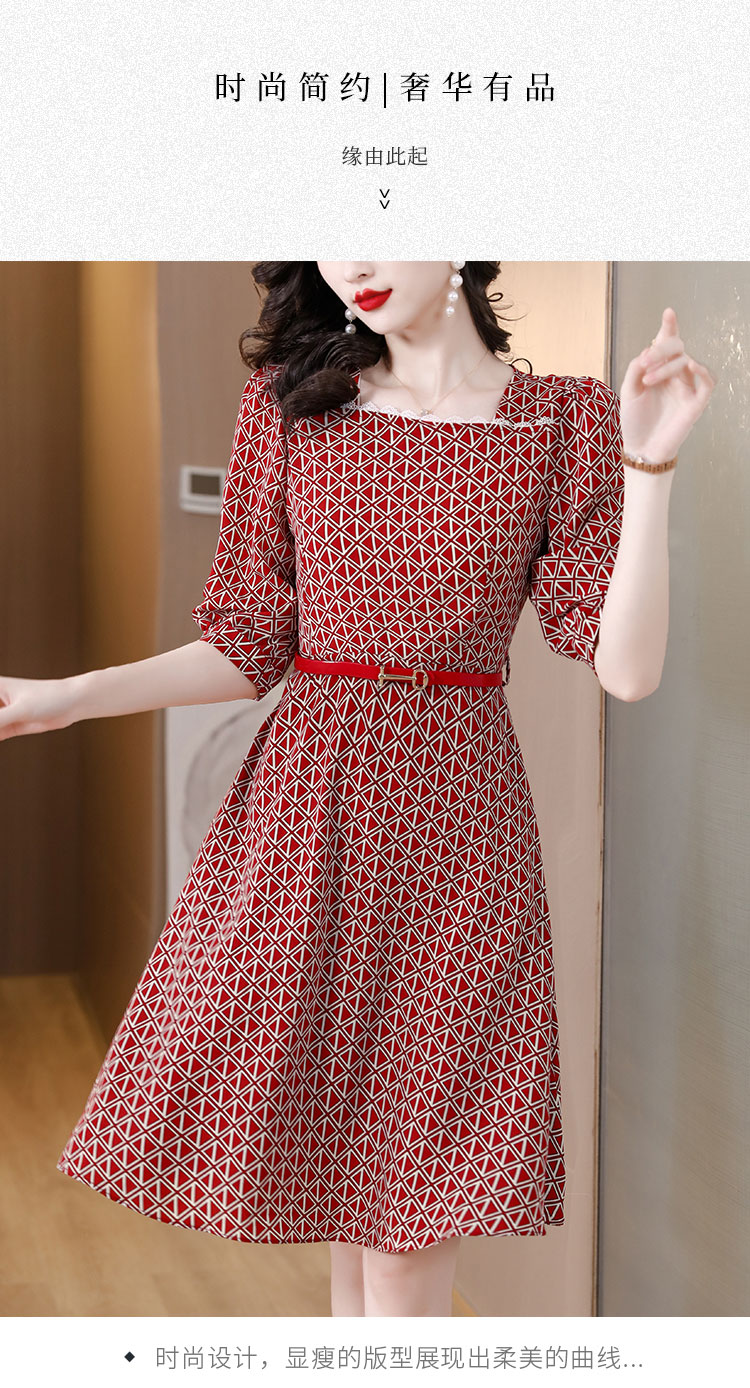 RM19176#时尚气质格子印花连衣裙女2023夏季新款方领短袖雪纺中长裙子