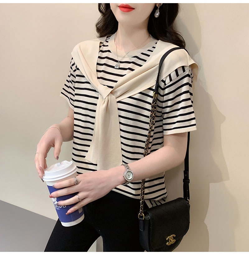 RM19226#设计感冰丝短袖T恤女2023新款韩版显瘦宽松针织上衣夏ins潮