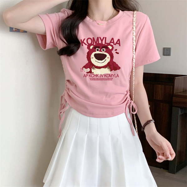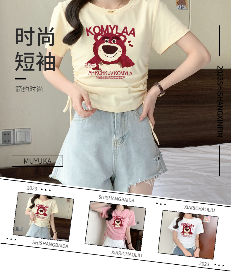 RM19235#正肩短款短袖t恤女夏季新款抽绳收腰半袖上衣设计感小众内搭体恤