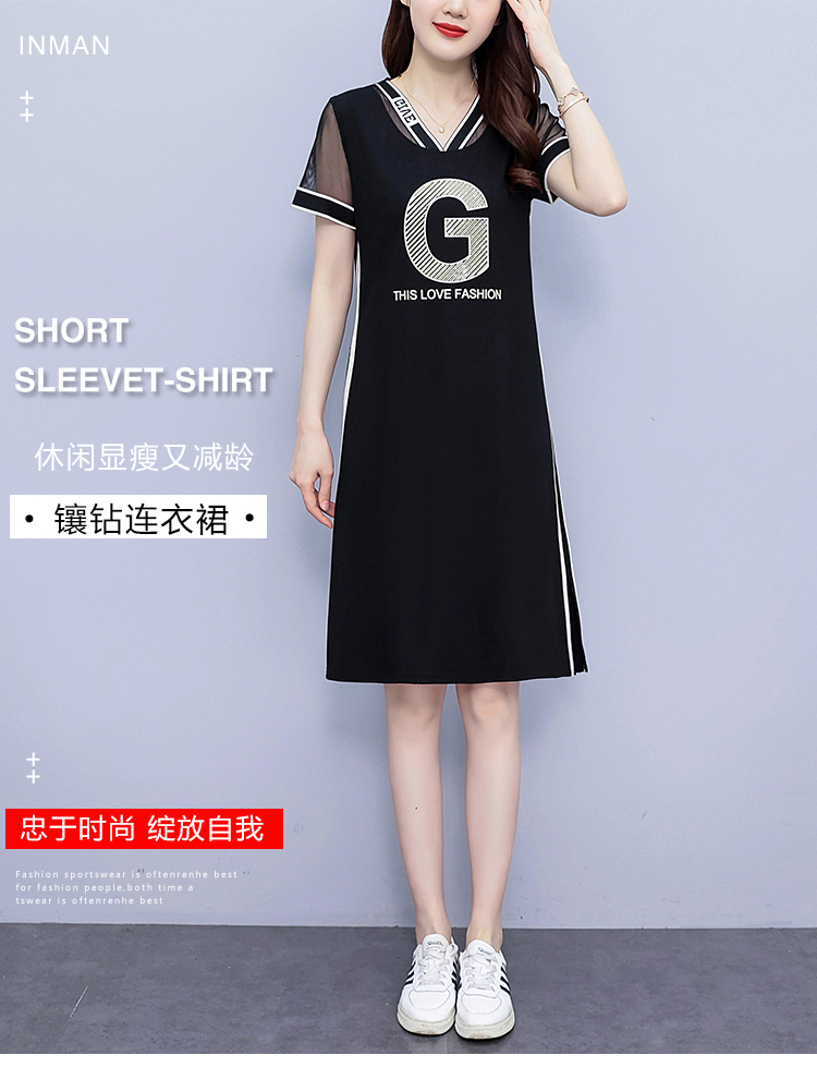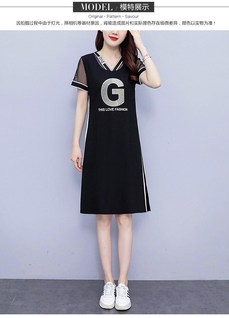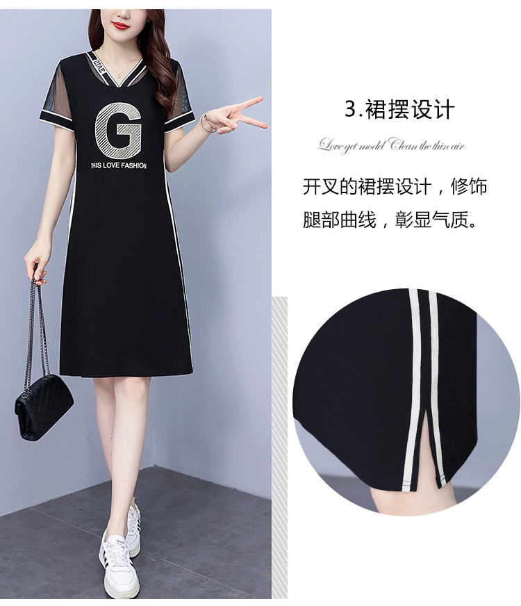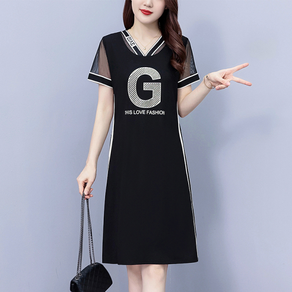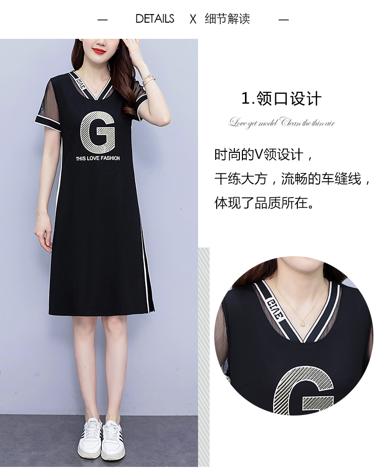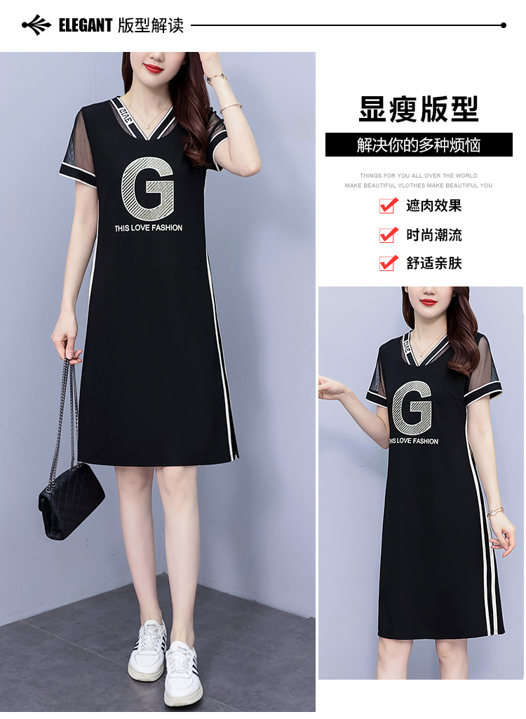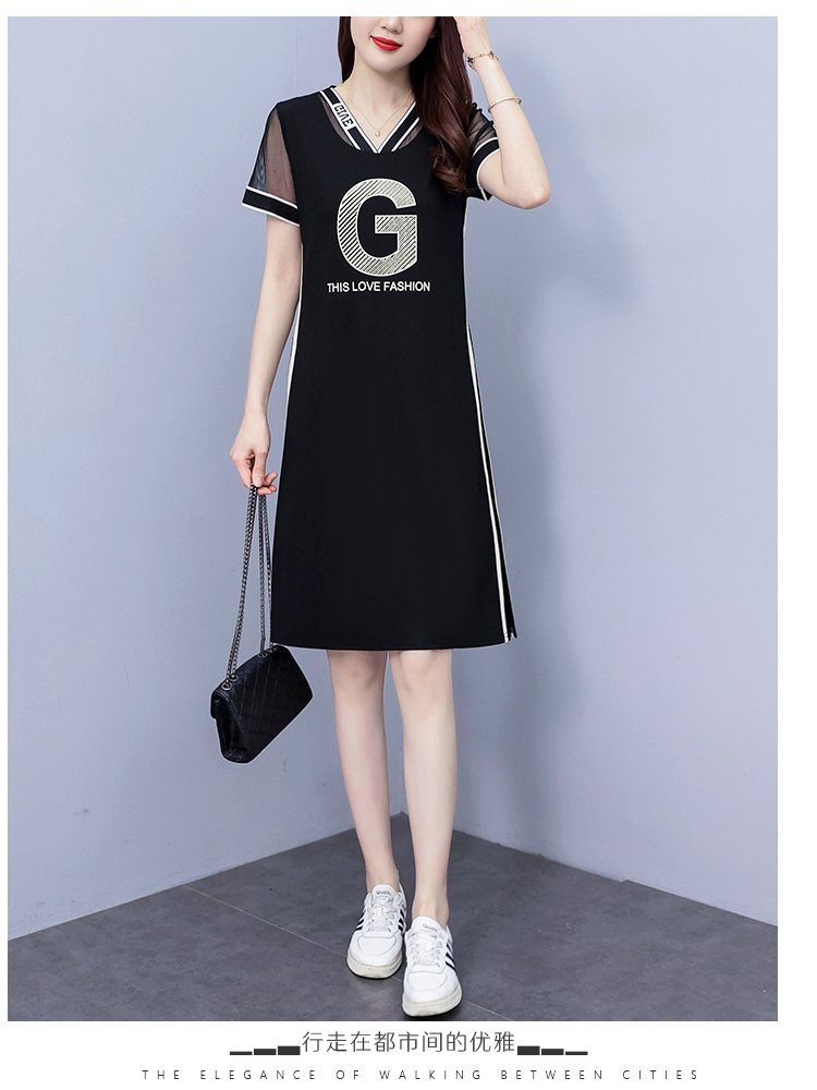 RM19339#大码女装2023新款夏季时尚v领韩版字母G百搭休闲显瘦连衣裙女