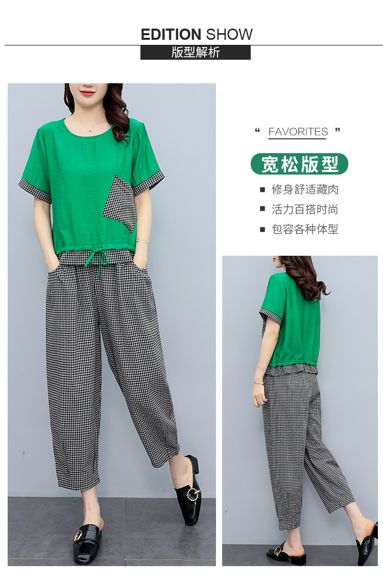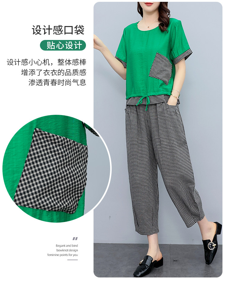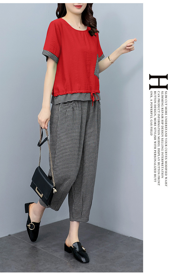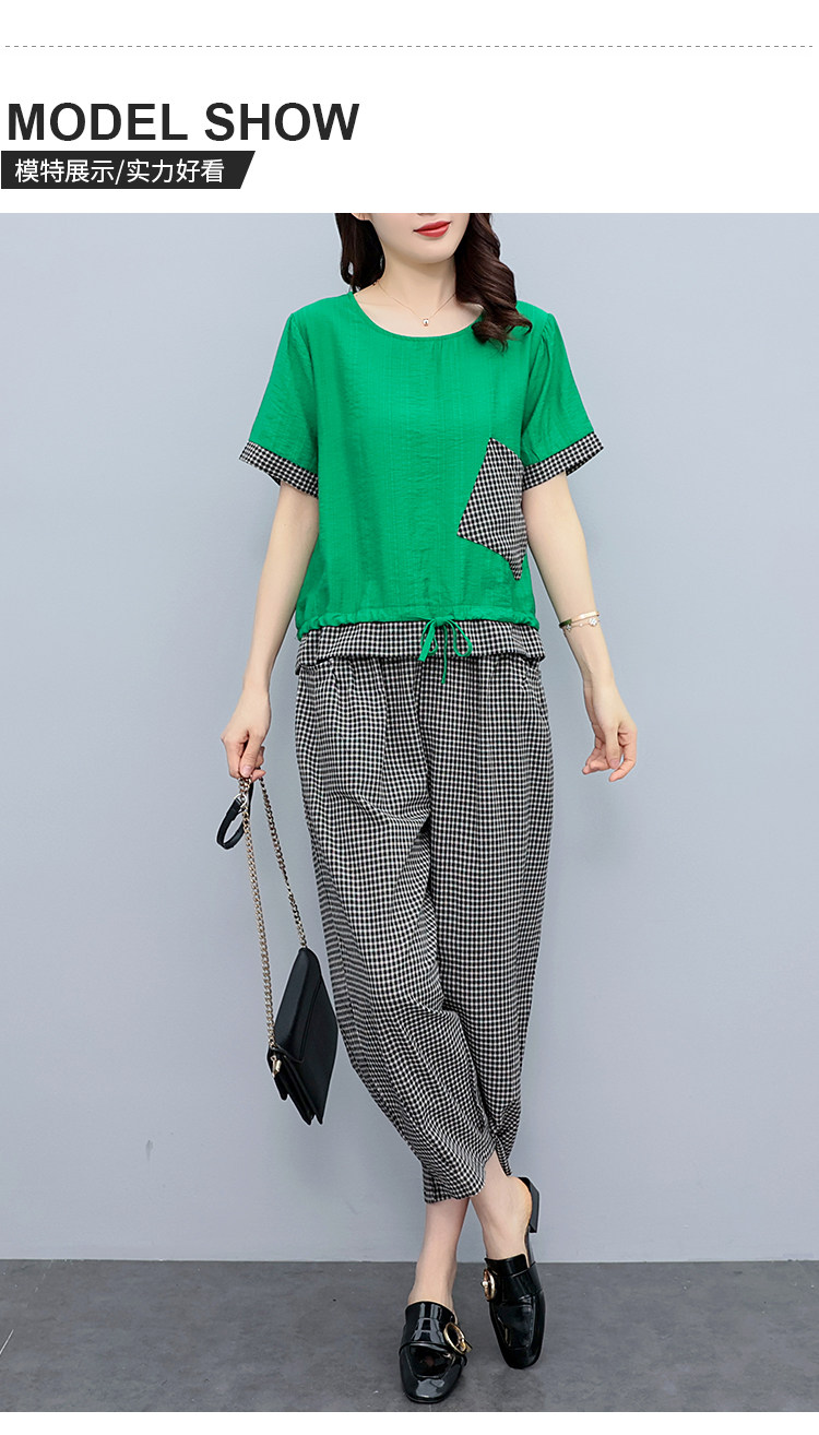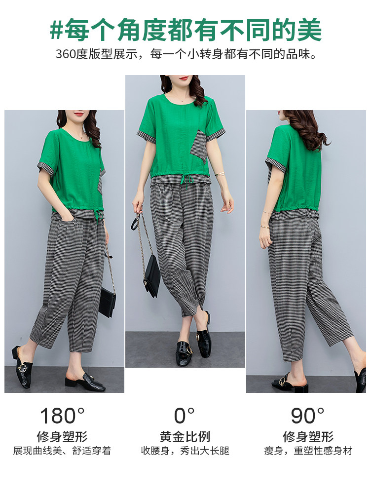 RM19344#大码女装2023年新款胖mm减龄遮肚休闲短袖九分裤套装